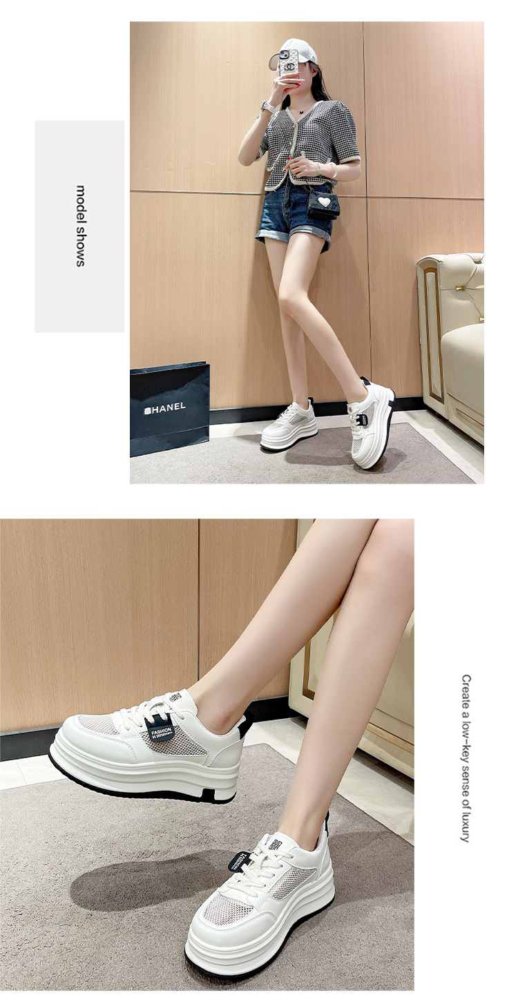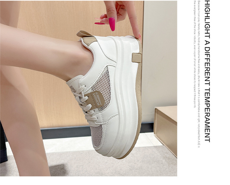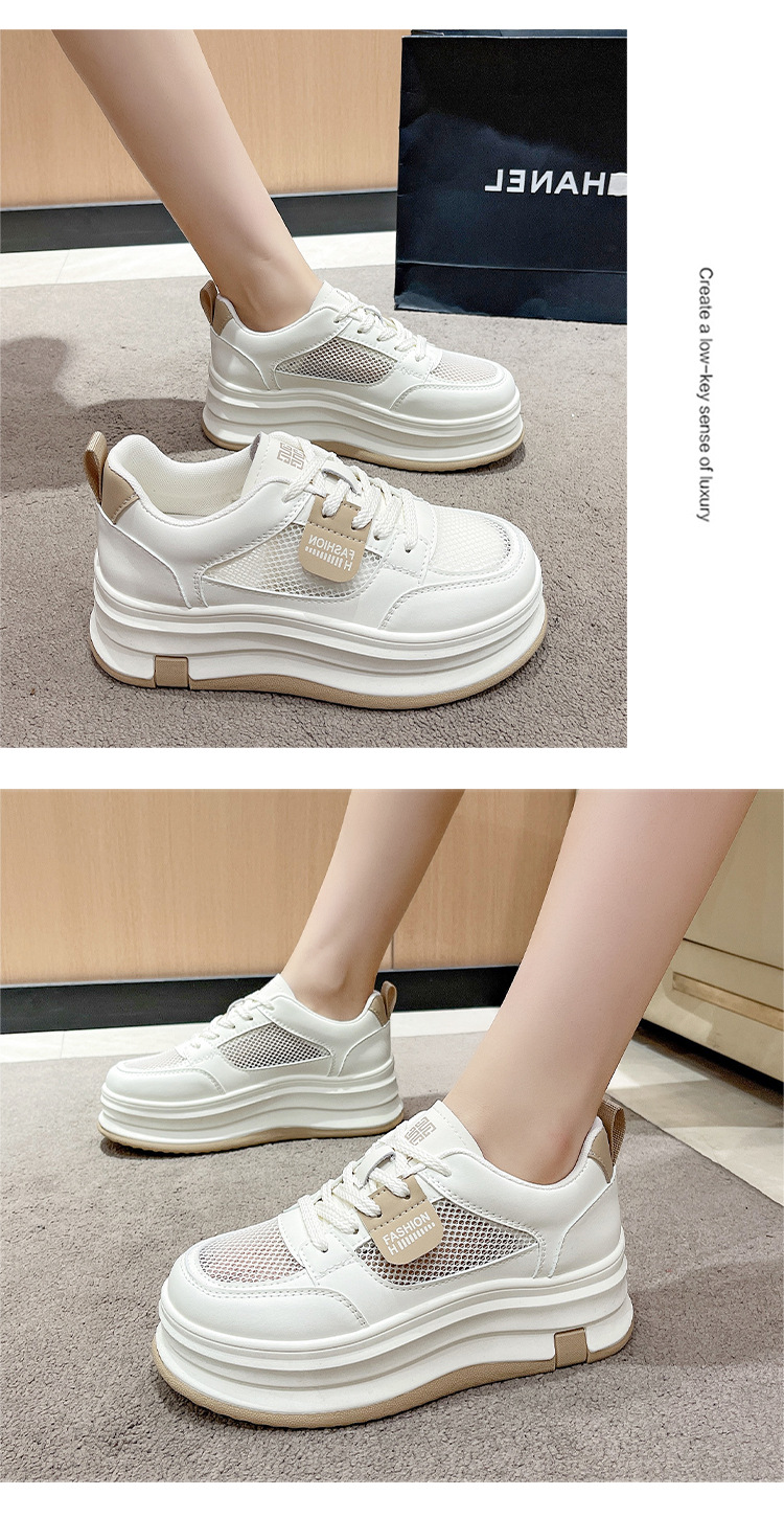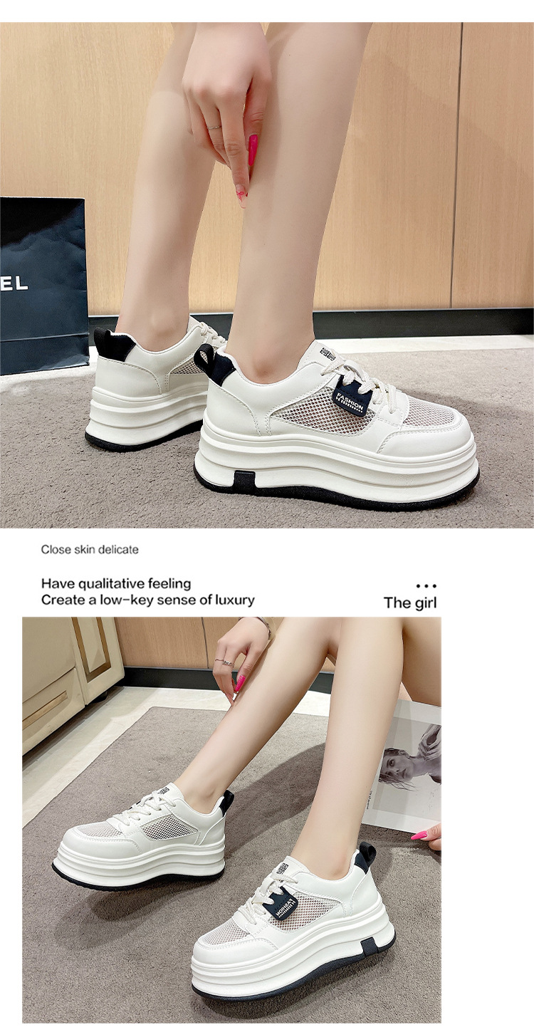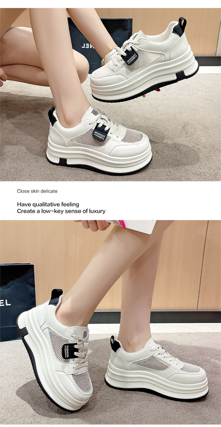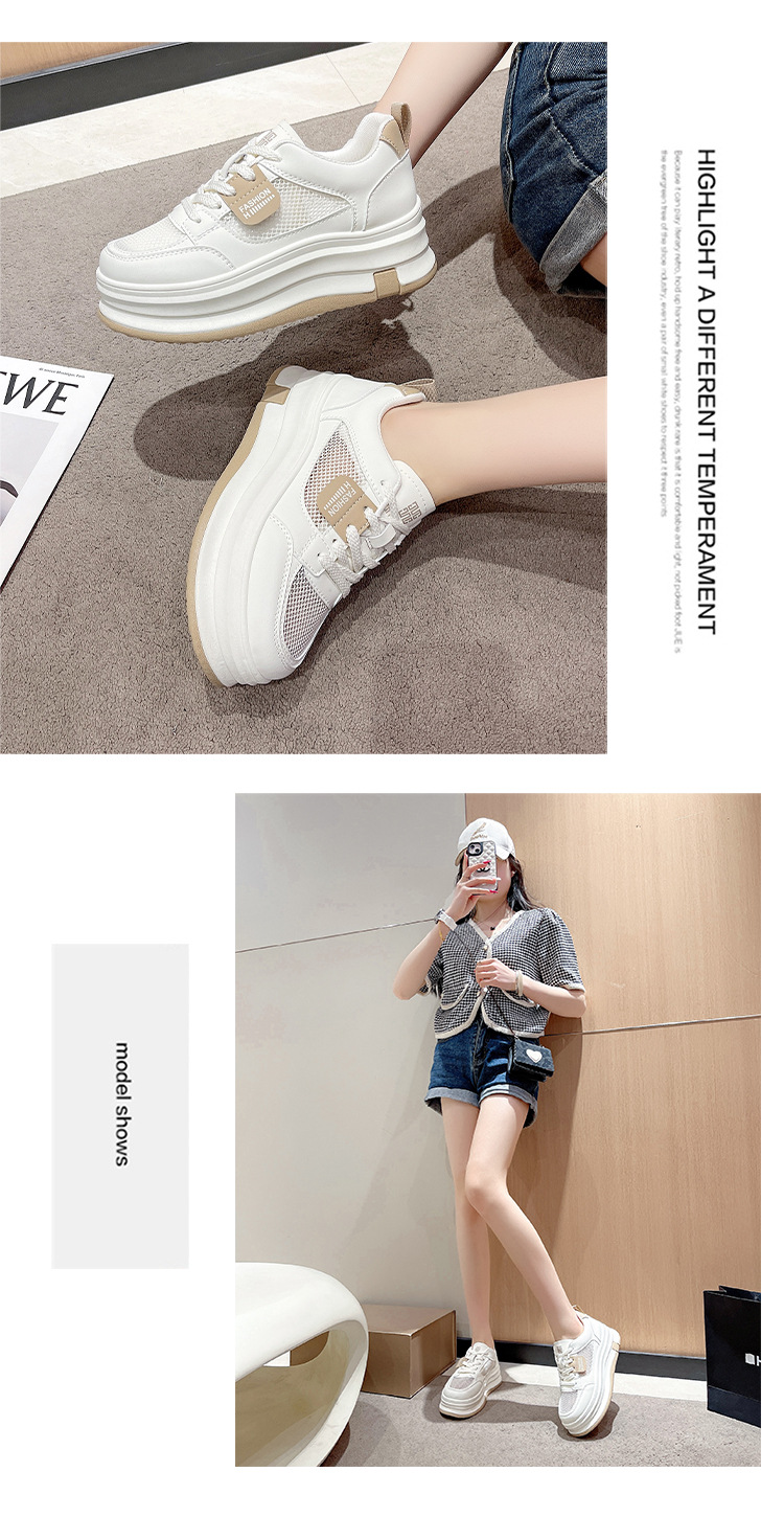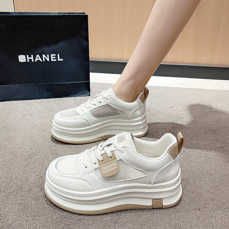 여성을위한 메쉬 흰색 신발 2025 여름 새로운 다목적 얇은 스포츠 및 레저 두꺼운 밑창 운동화 여성을위한 통기성 메쉬 신발스토어 가기