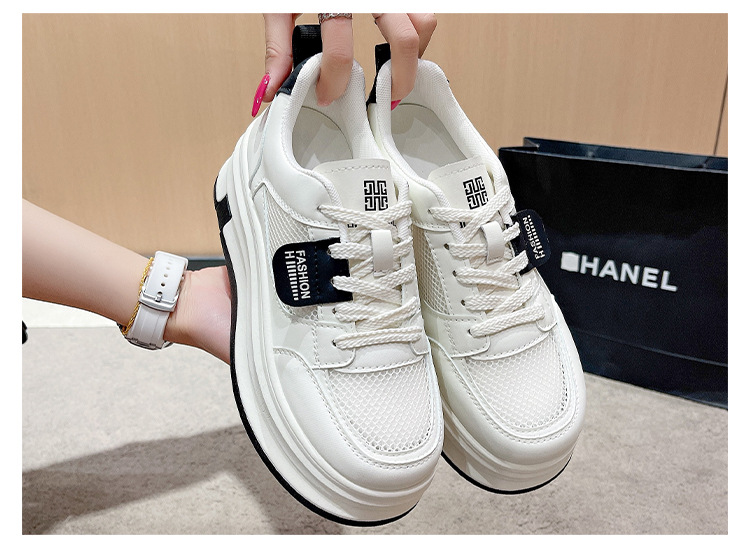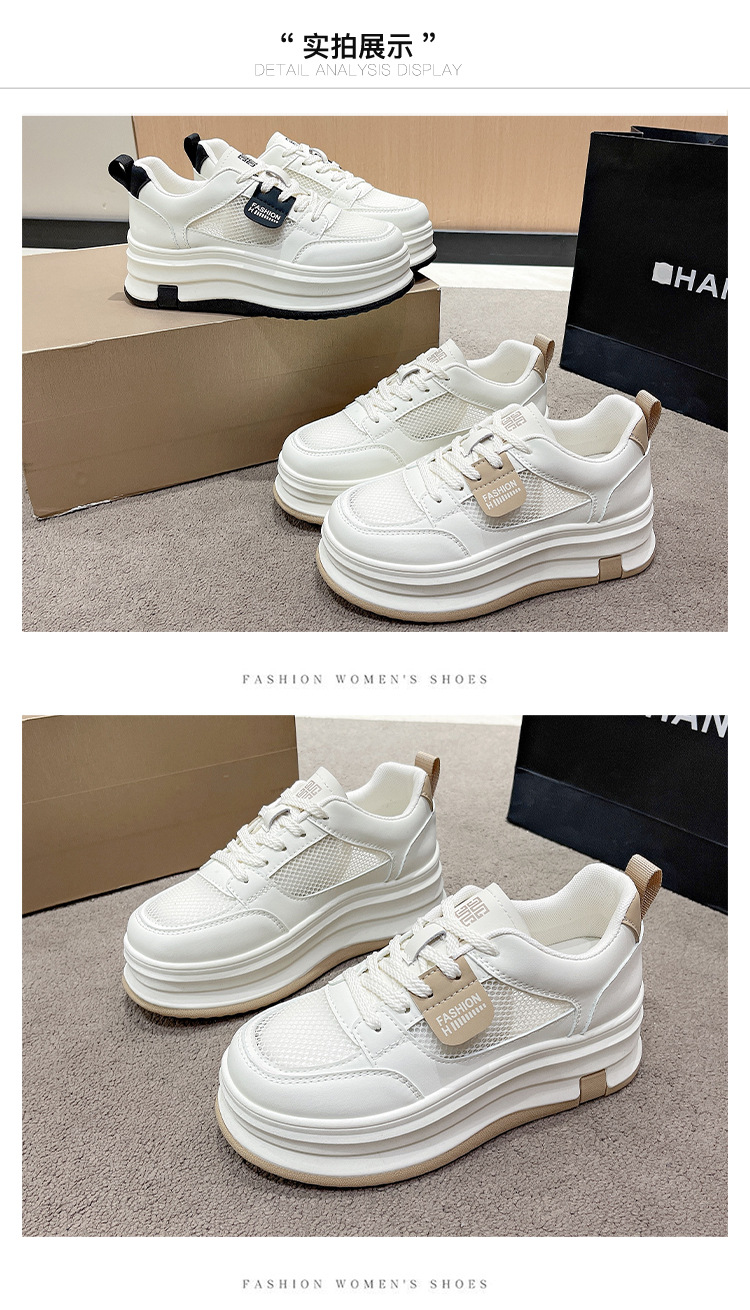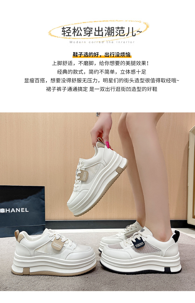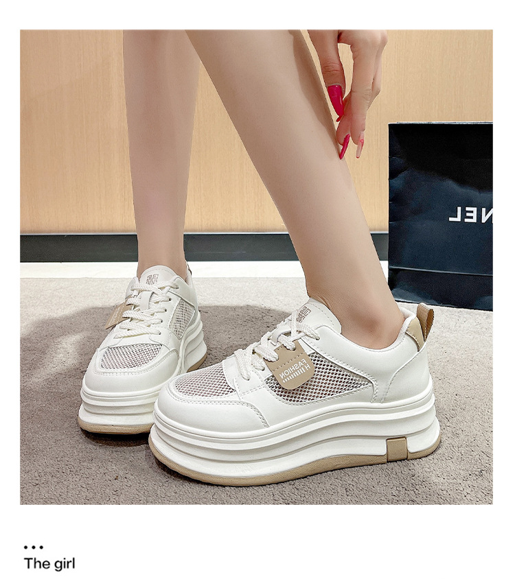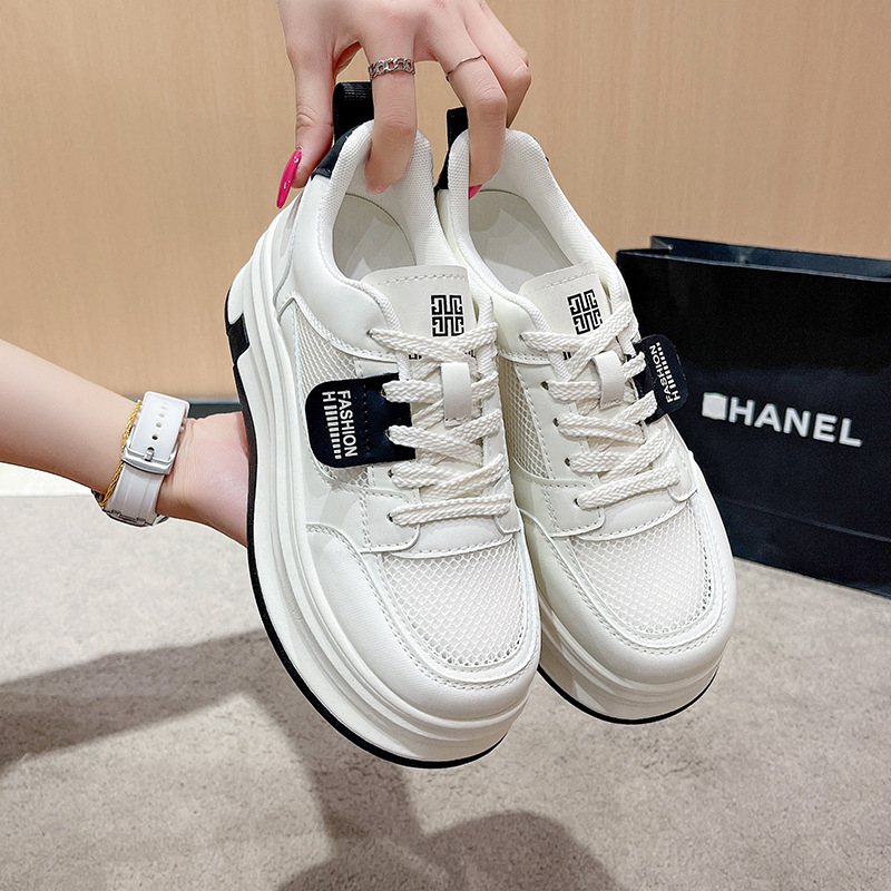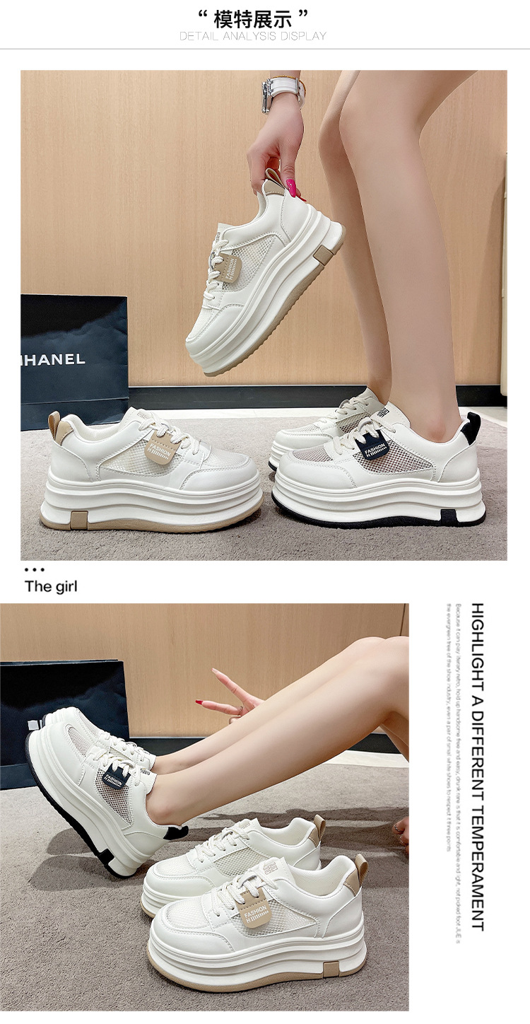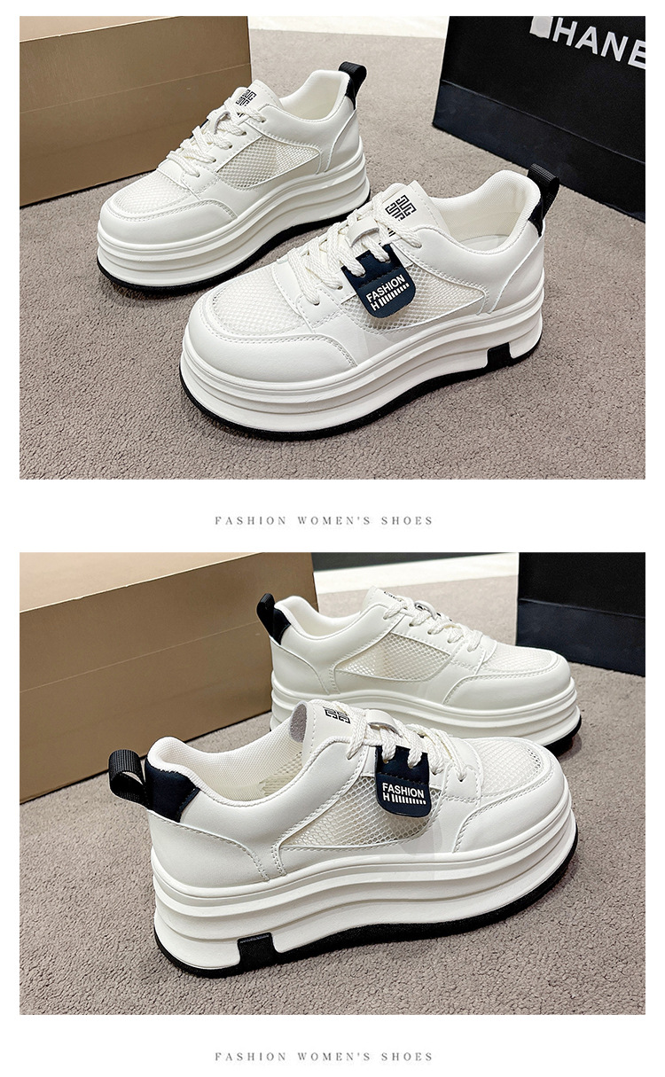 여성을위한 메쉬 흰색 신발 2025 여름 새로운 다목적 얇은 스포츠 및 레저 두꺼운 밑창 운동화 여성을위한 통기성 메쉬 신발스토어 가기