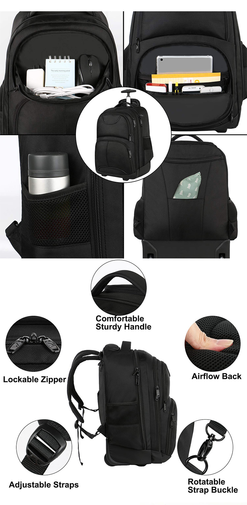 아마존의 인기 트롤리 백팩 대용량 여행용 백팩 경량 및 부담을 줄여주는 야외 레저 트롤리 백팩