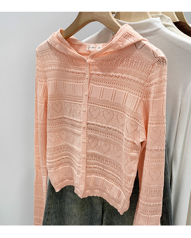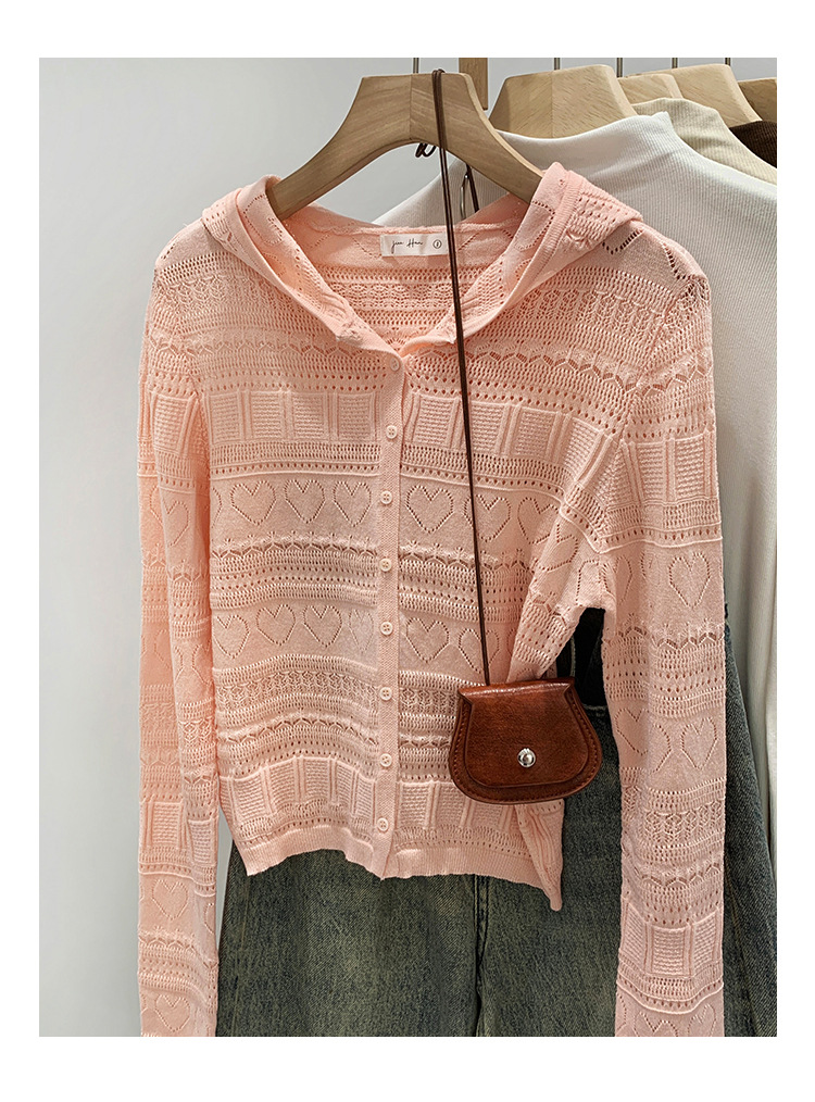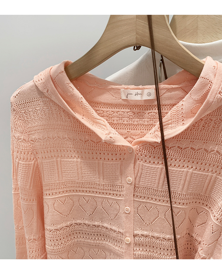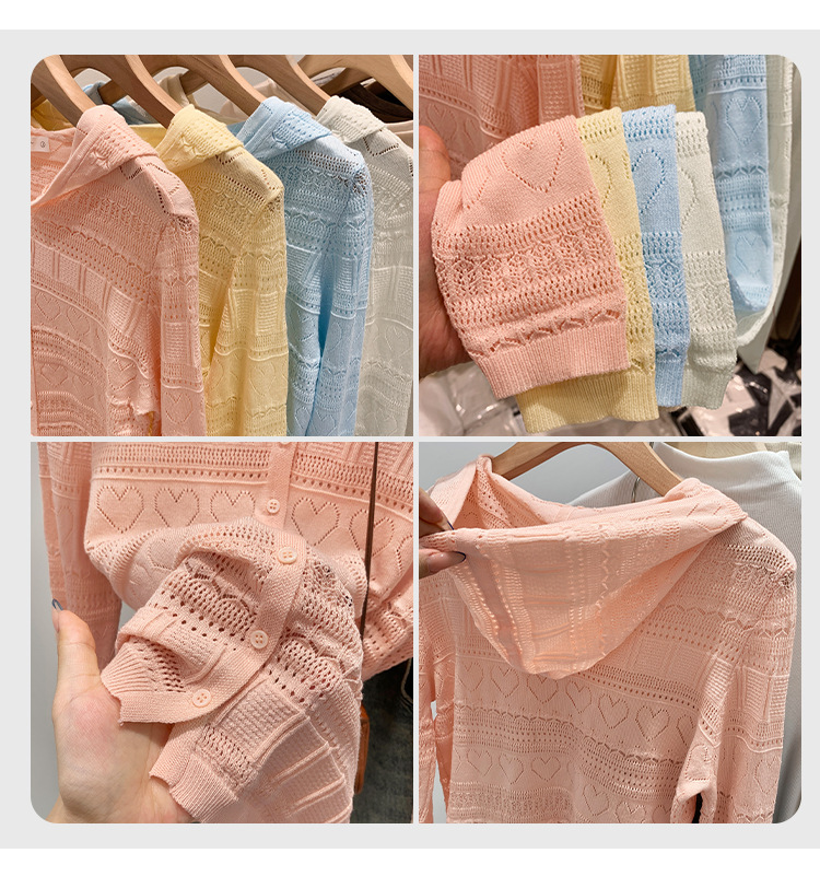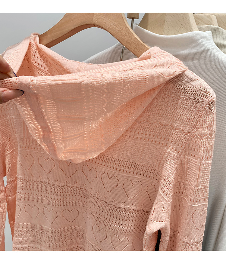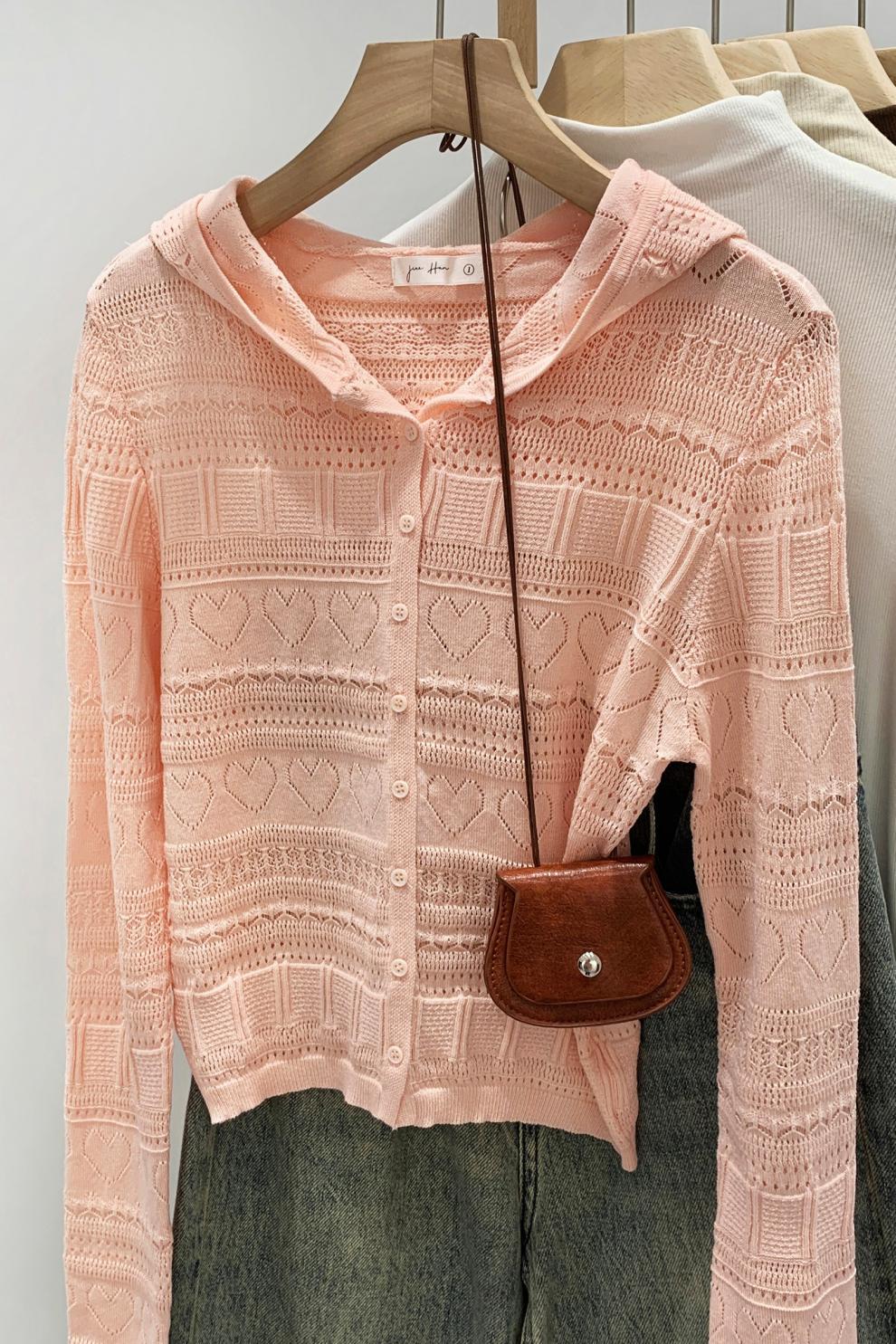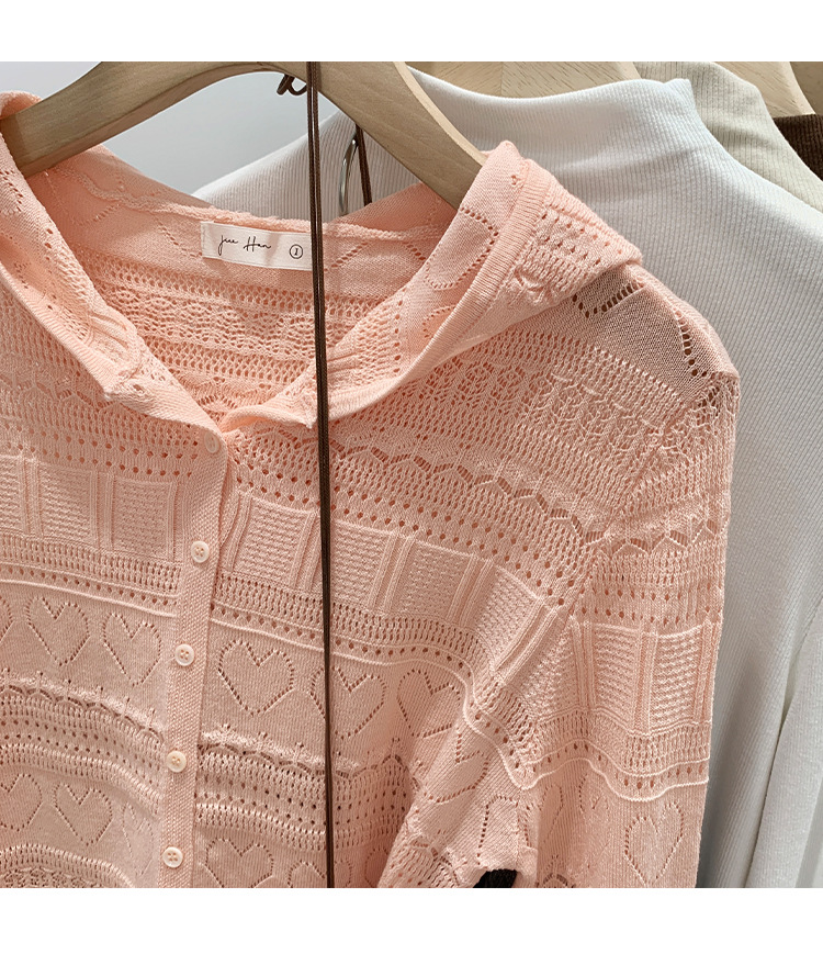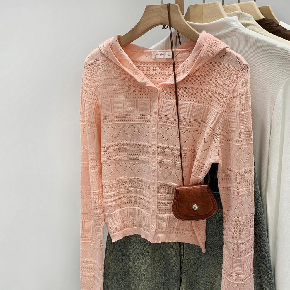 브랜드 할인 핑크 중공 크로 셰 뜨개질 긴팔 후드 니트 카디건 여성 2025 여름 새로운 얇은 자외선 차단제스토어 가기