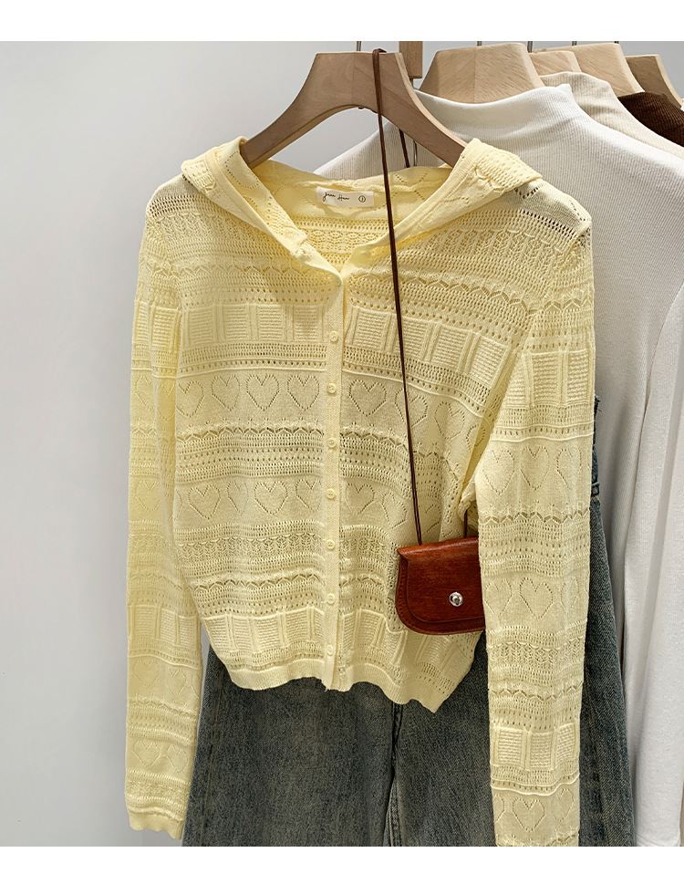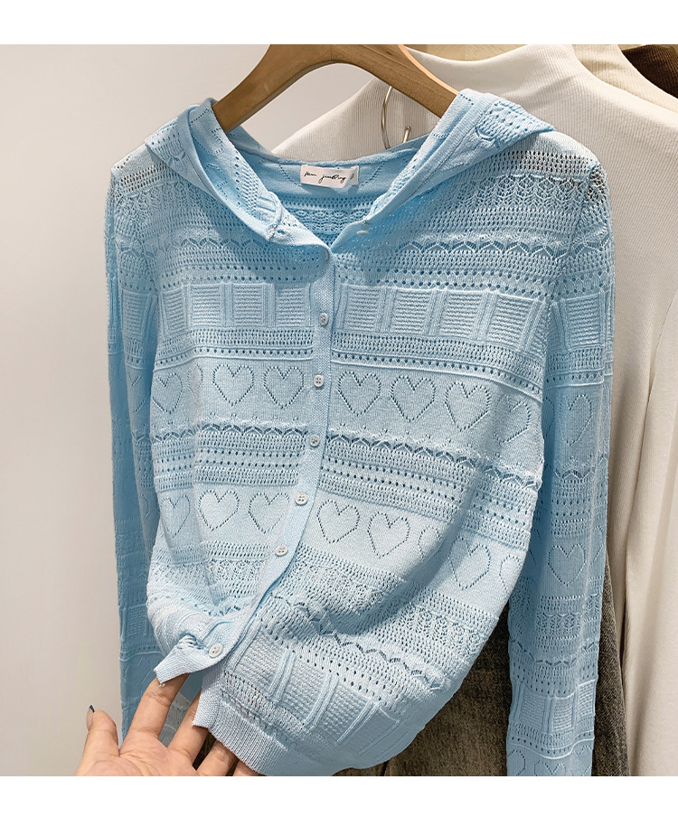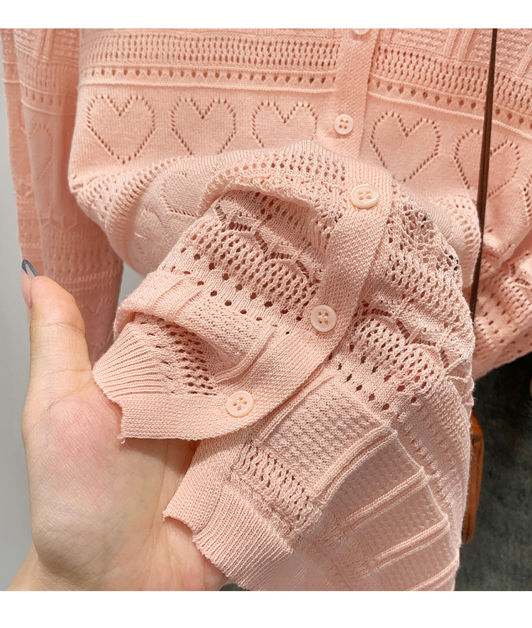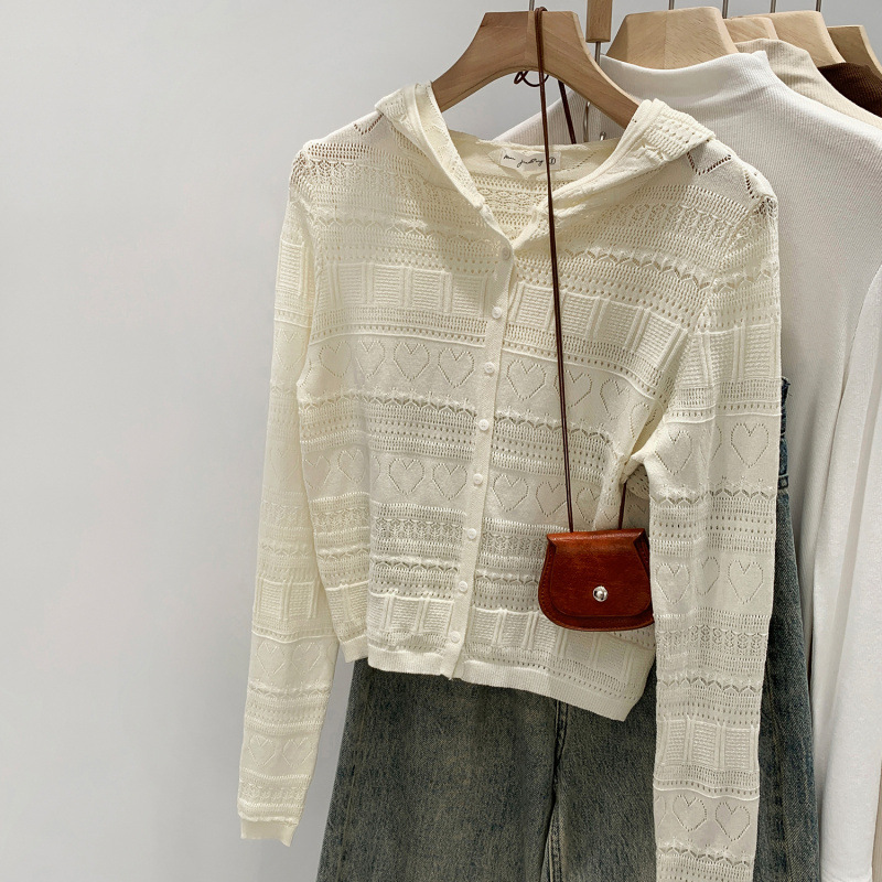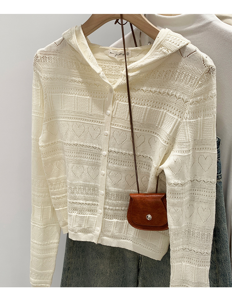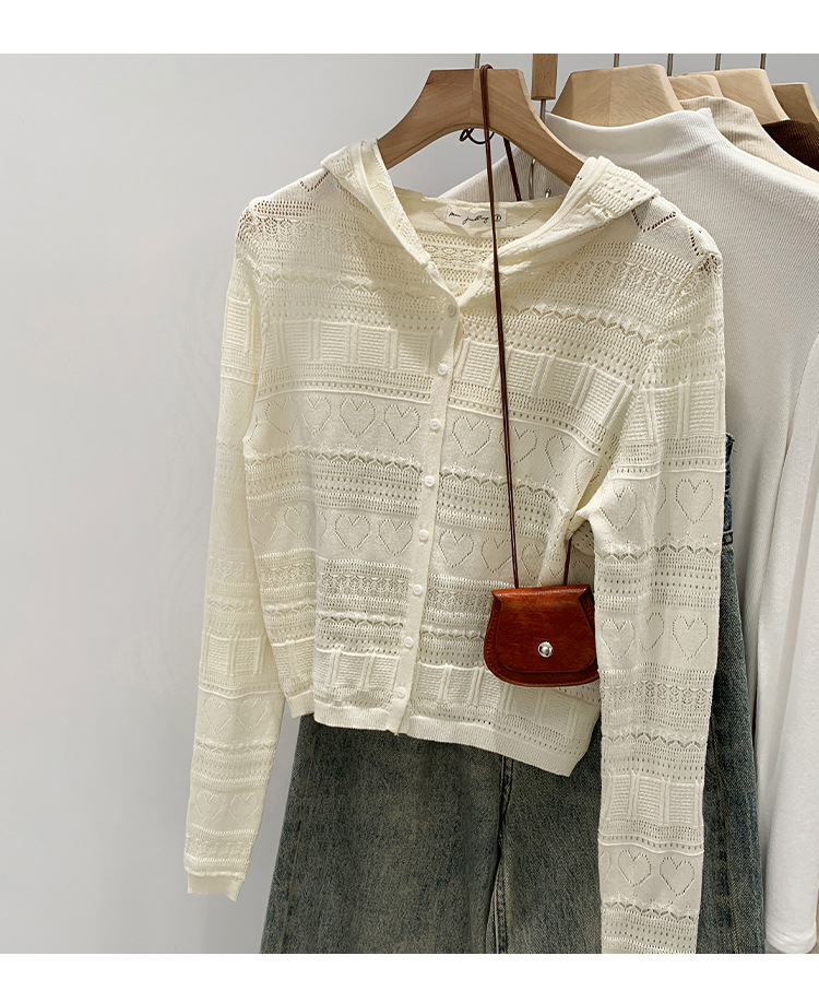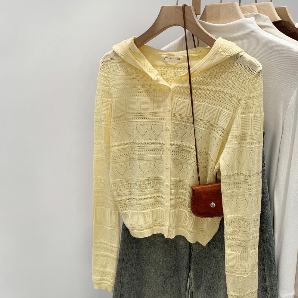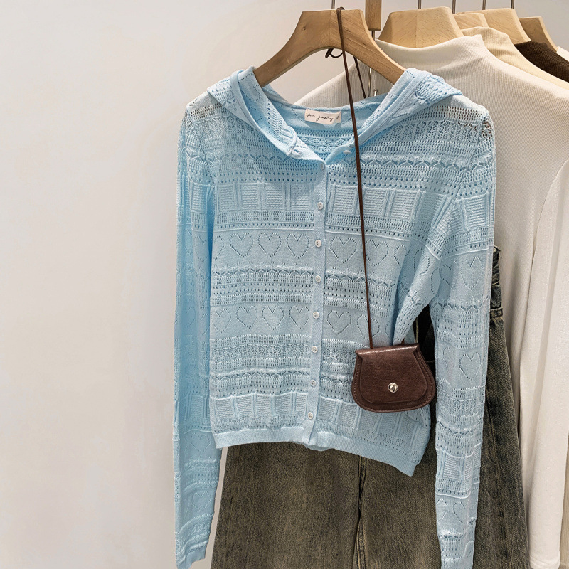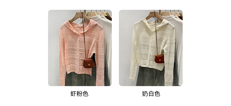 브랜드 할인 핑크 중공 크로 셰 뜨개질 긴팔 후드 니트 카디건 여성 2025 여름 새로운 얇은 자외선 차단제스토어 가기