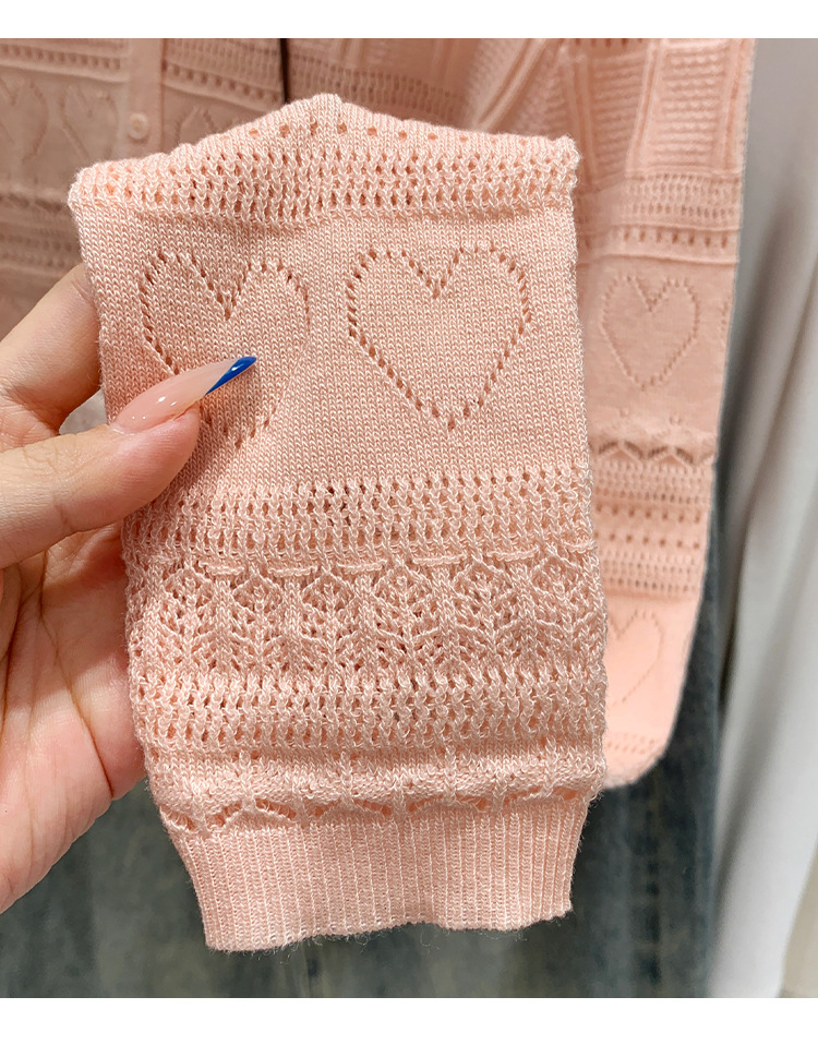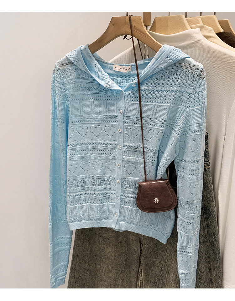 브랜드 할인 핑크 중공 크로 셰 뜨개질 긴팔 후드 니트 카디건 여성 2025 여름 새로운 얇은 자외선 차단제