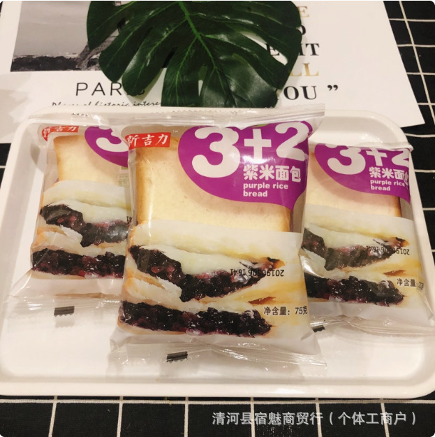 Xinjili 3+2 보라색 쌀 빵 치즈 샌드위치 페이스트리 아침 식사 찹쌀 샌드위치 토스트 빵 전체 상자 무료 배송