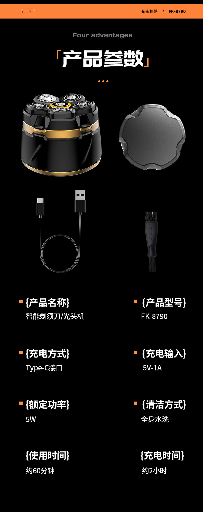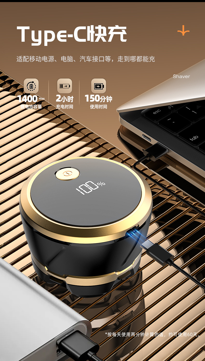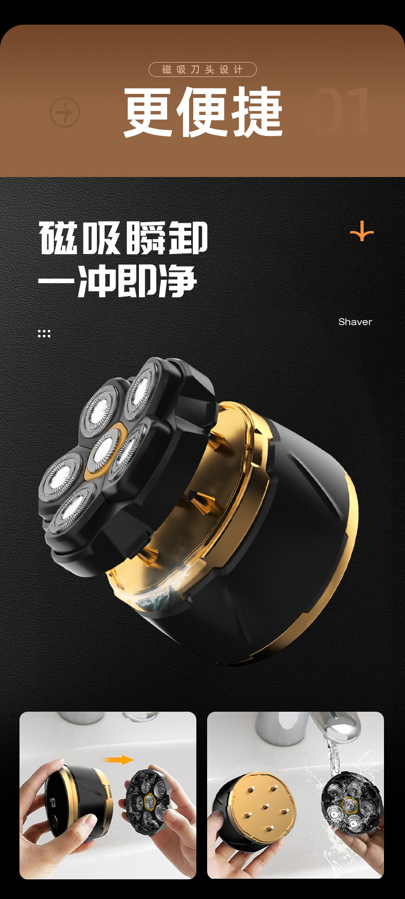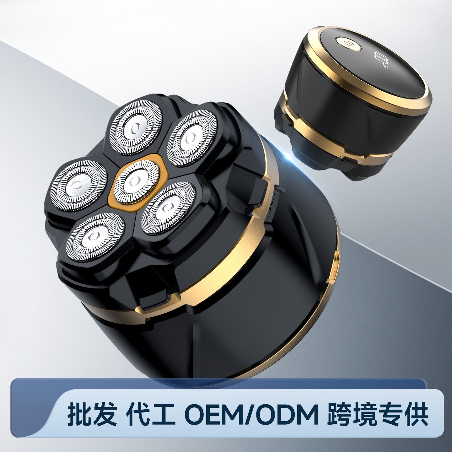 Douyin의 가장 잘 팔리는 머리 면도 도구, 세척 가능한 자기 흡입 6 칼날 전기 면도기, 고속 충전 디지털 디스플레이 플로팅 베니어