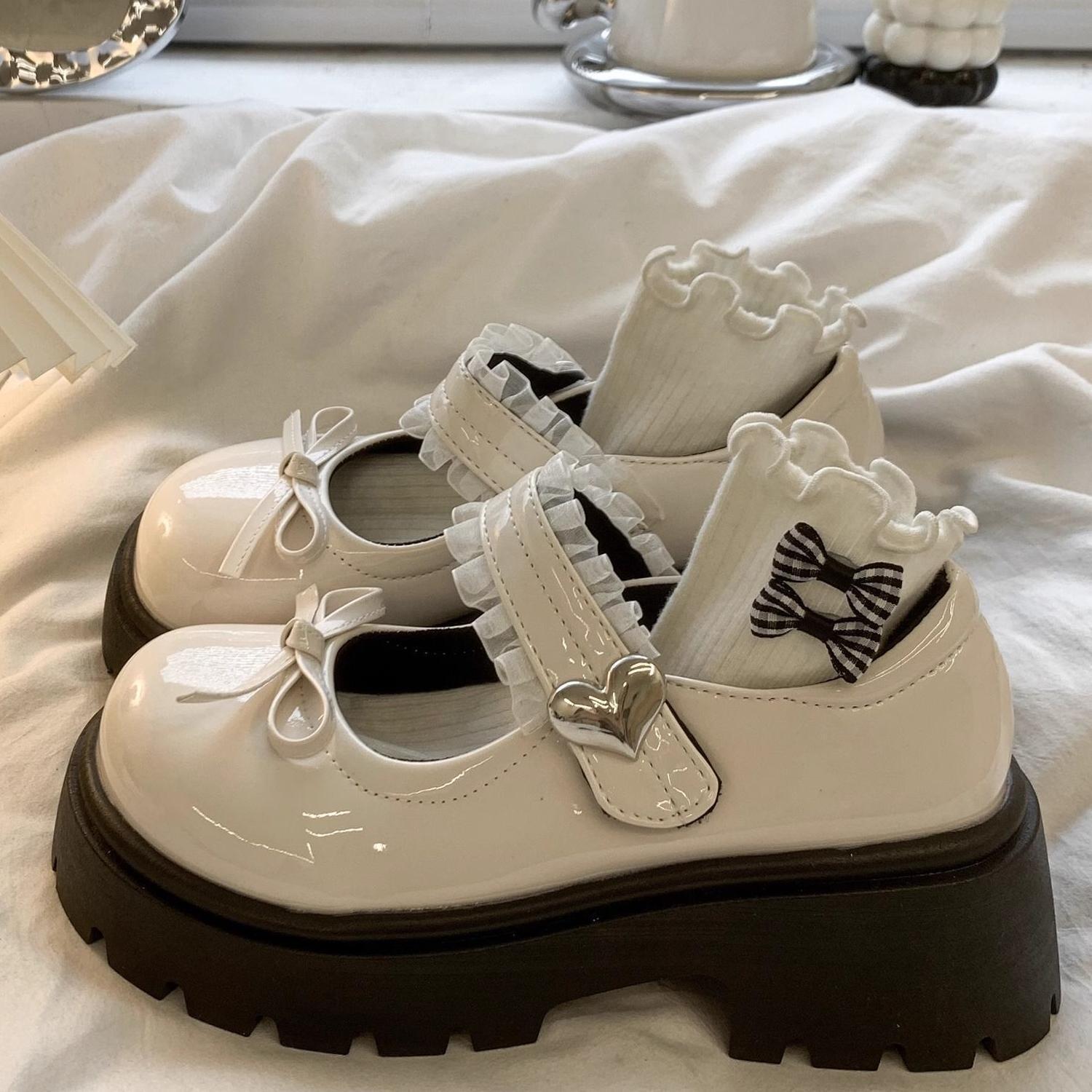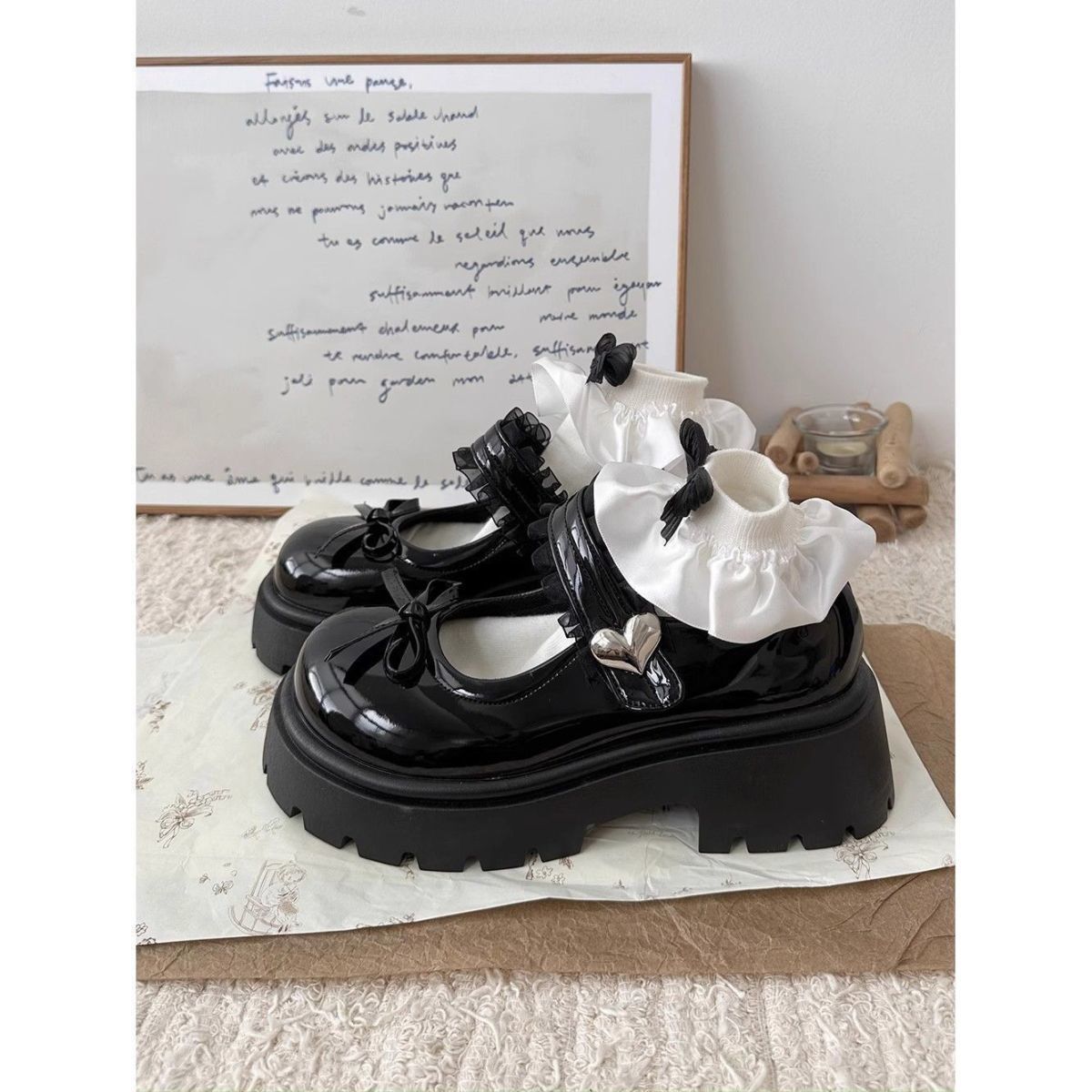 프렌치 스타일 스커트 메리 제인 여성용 신발 2025 여름 새 스타일 라운드 발가락 보우 두꺼운 굽 두꺼운 밑창 여성용 작은 가죽 신발
