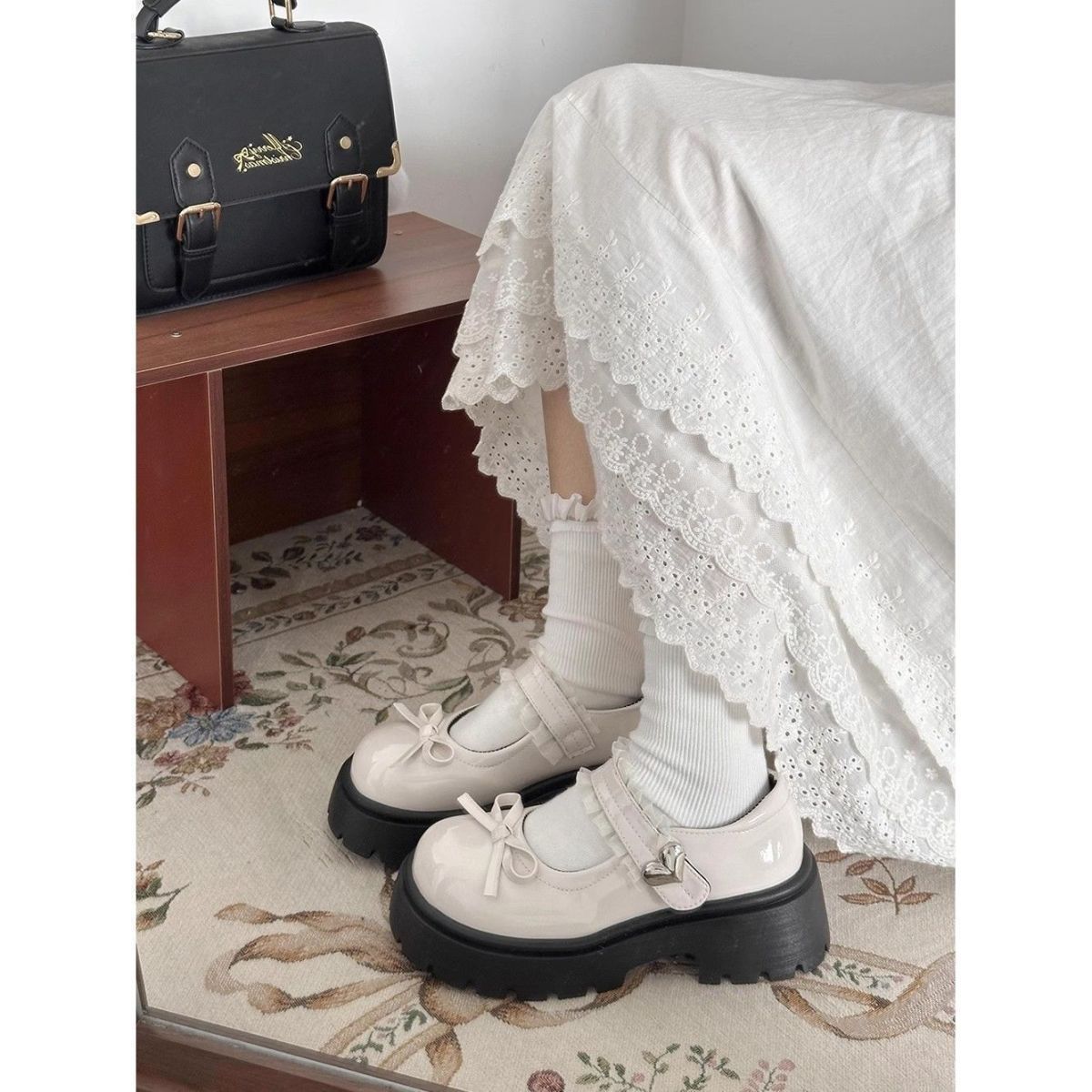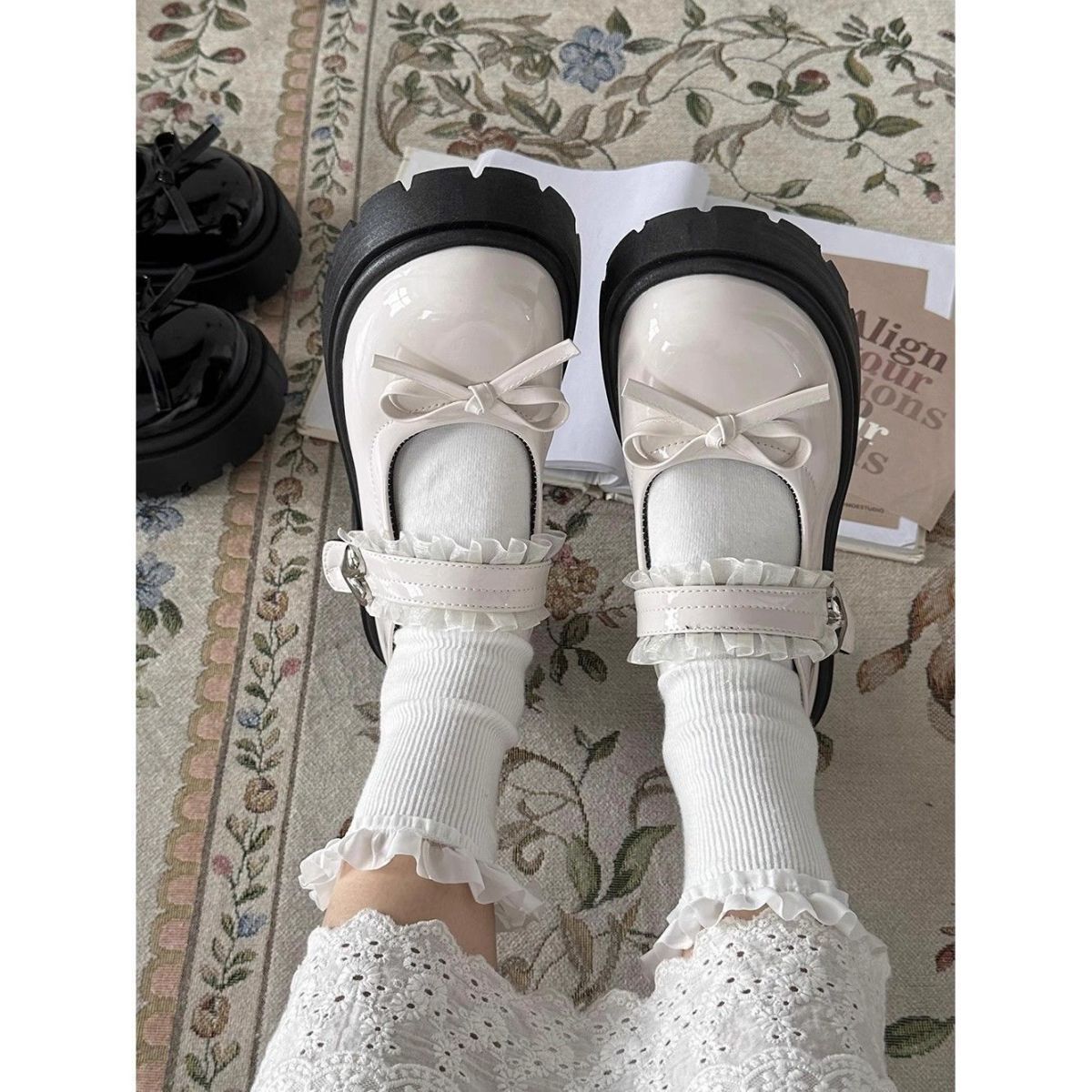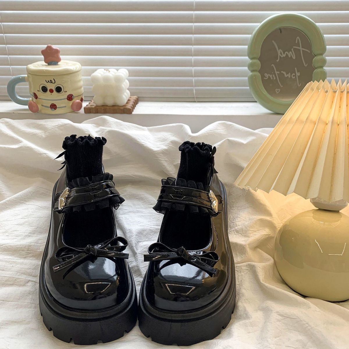 프렌치 스타일 스커트 메리 제인 여성용 신발 2025 여름 새 스타일 라운드 발가락 보우 두꺼운 굽 두꺼운 밑창 여성용 작은 가죽 신발스토어 가기