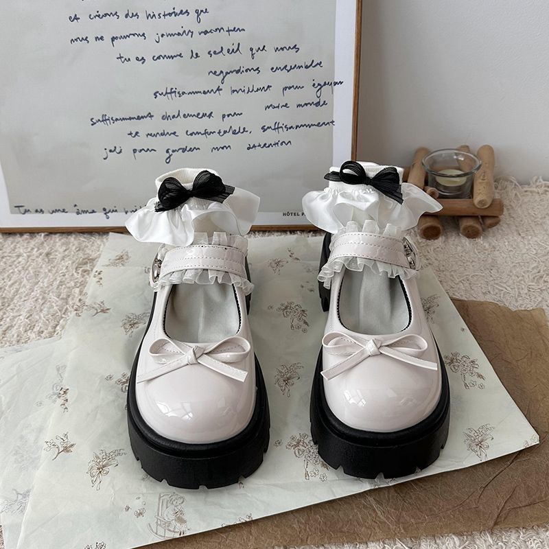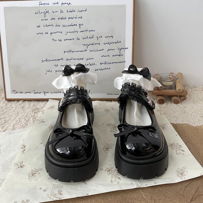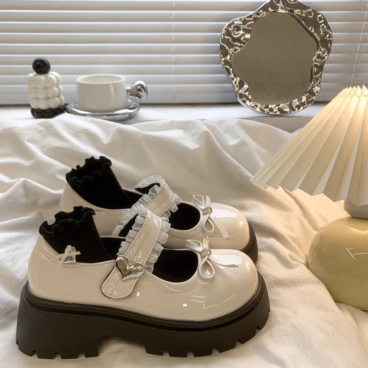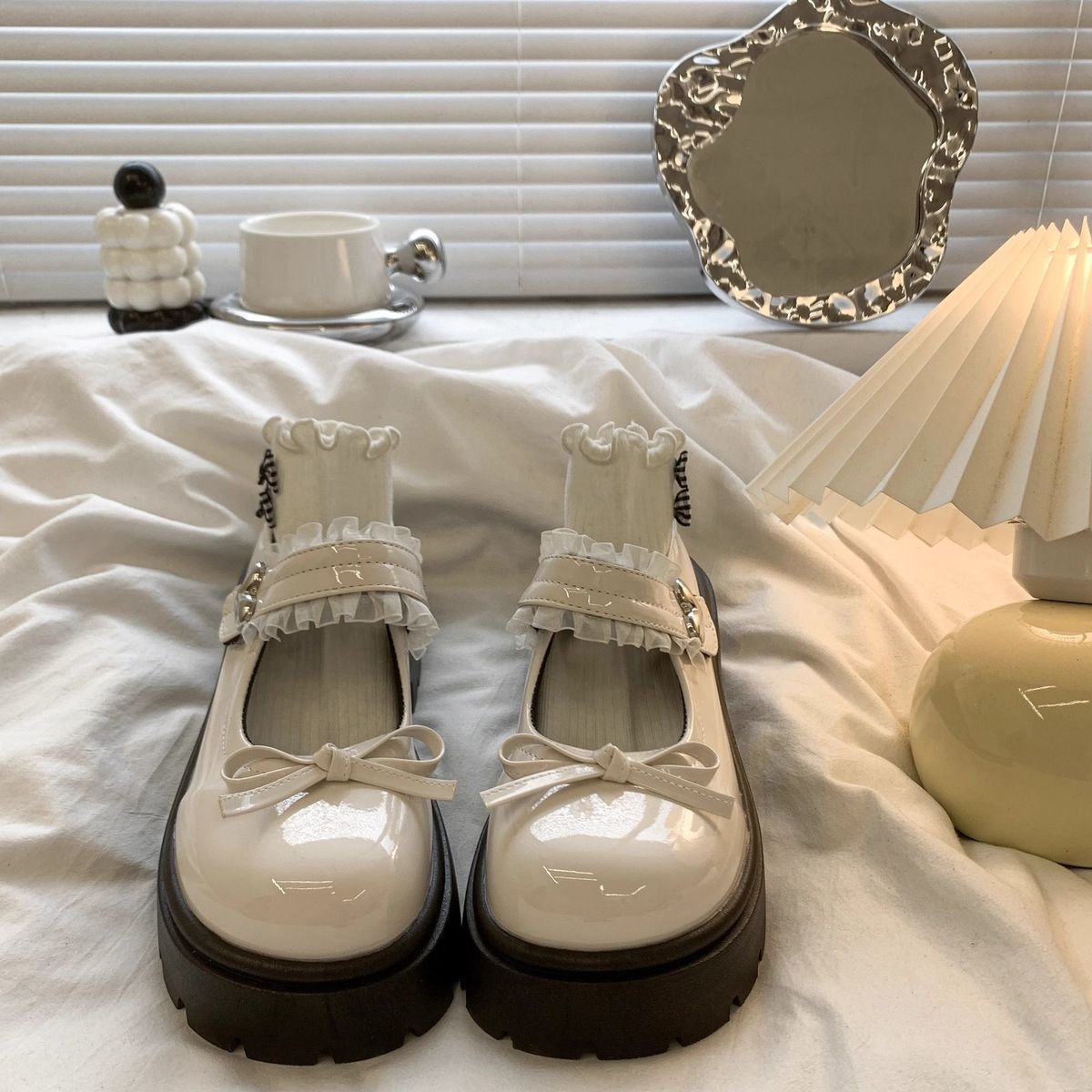 프렌치 스타일 스커트 메리 제인 여성용 신발 2025 여름 새 스타일 라운드 발가락 보우 두꺼운 굽 두꺼운 밑창 여성용 작은 가죽 신발스토어 가기