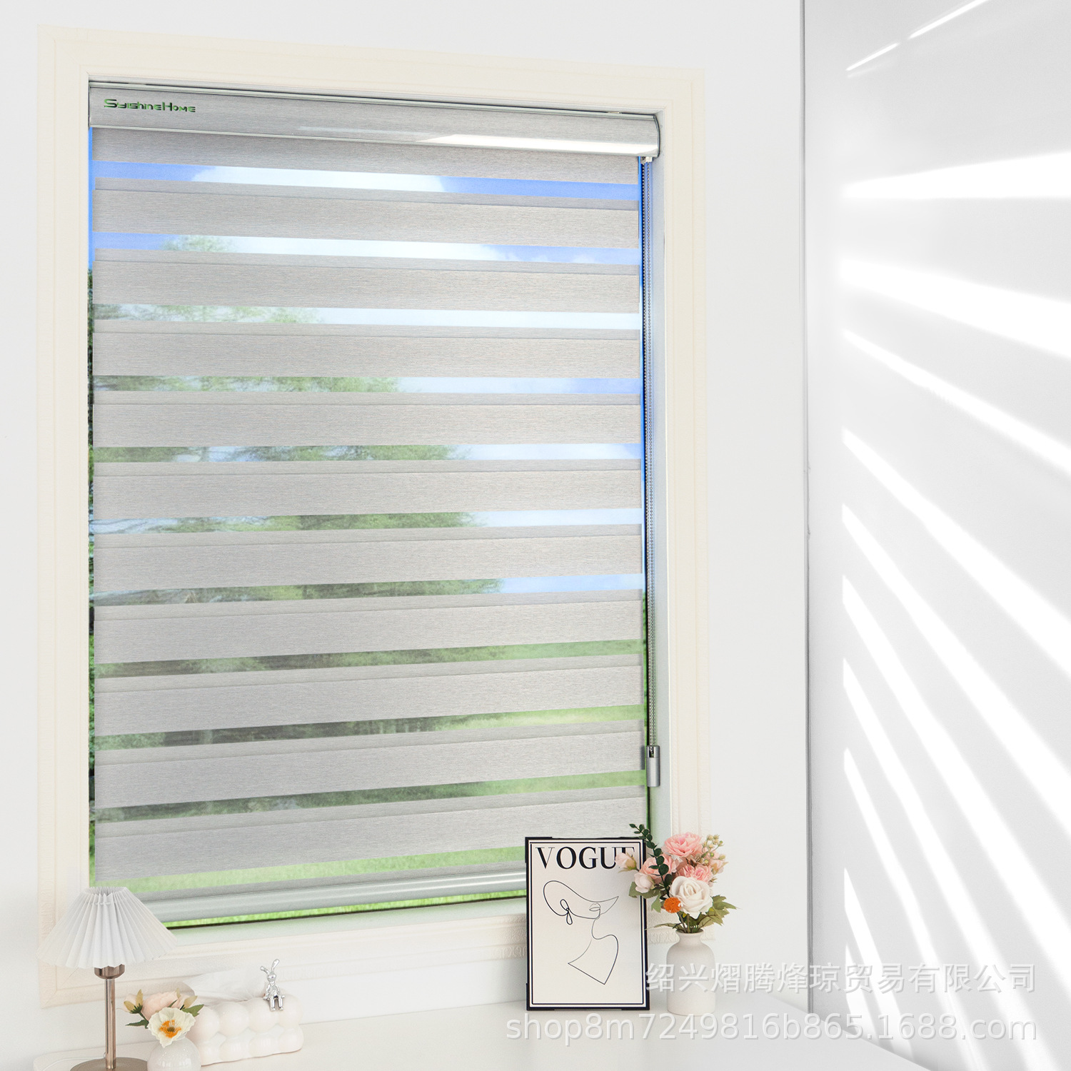 SylshineHome 롤러 블라인드 방수 반 차광 블라인드 얼룩말 블라인드 차양 전기 커튼 무선 부드러운 거즈 커튼스토어 가기