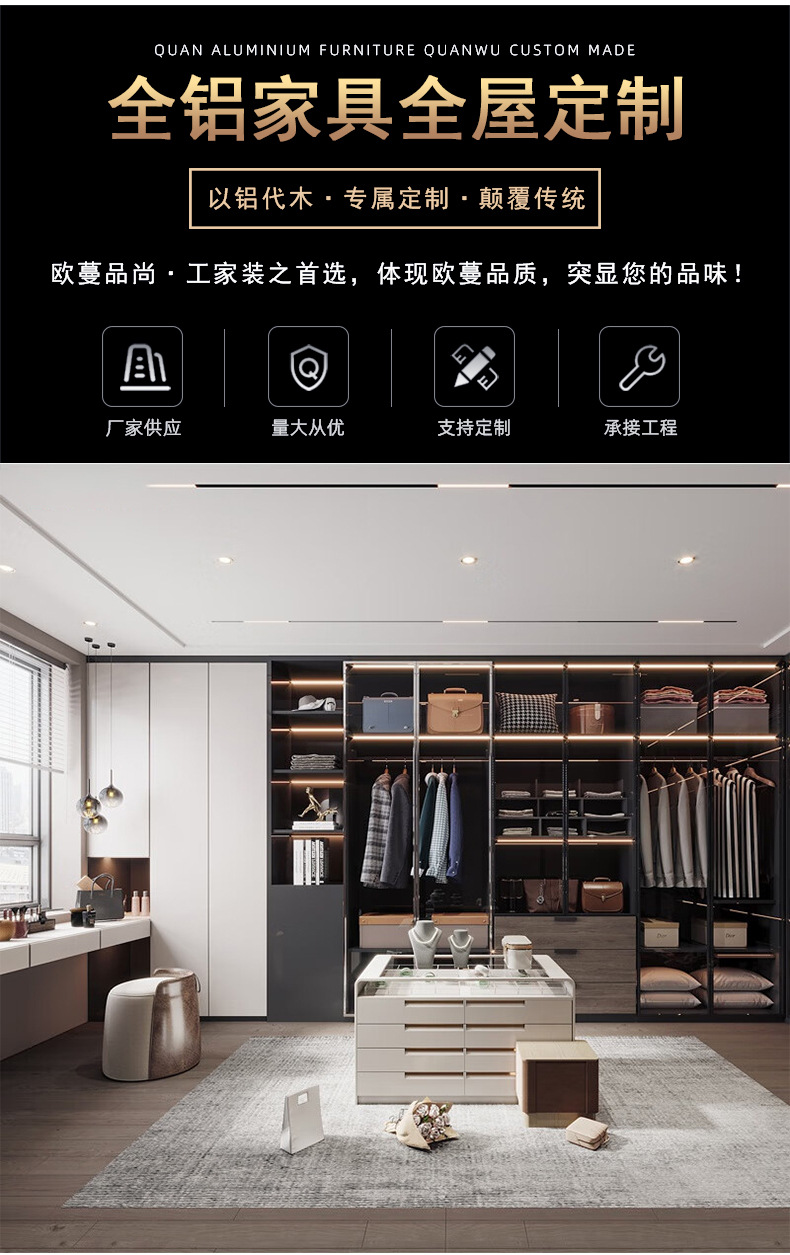 집 전체 맞춤형 알루미늄 옷장, 금속 드레스룸, 원도어 올인원 침실 옷장, 주택 개조 가구스토어 가기
