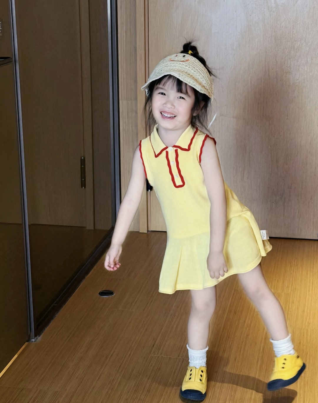 한국 아동복 2025 새로운 여름 여아 드레스 어린 소녀의 세련된 대비 색상 반팔 폴로 스커트스토어 가기