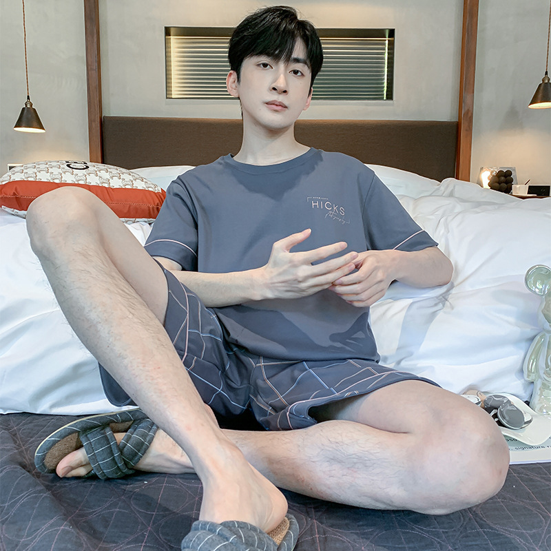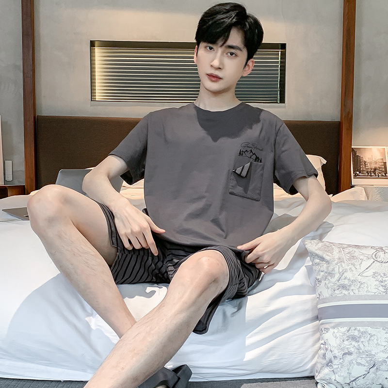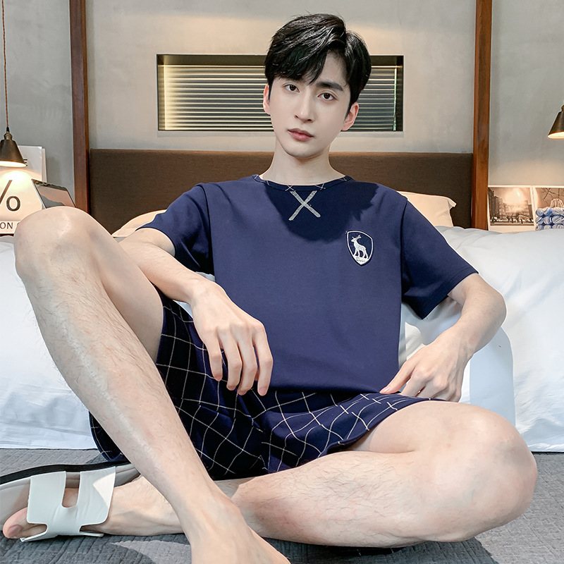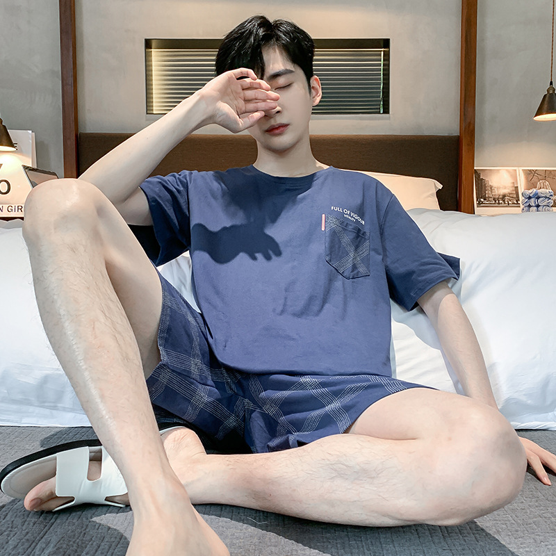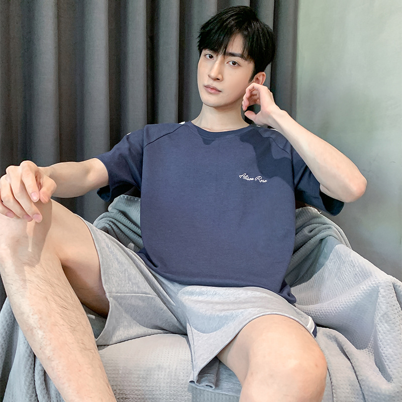 남성 잠옷 남성 여름 면 반팔 풀오버 라운드 넥 플러스 사이즈 플러스 사이즈 홈웨어 여름 얇은 양복스토어 가기