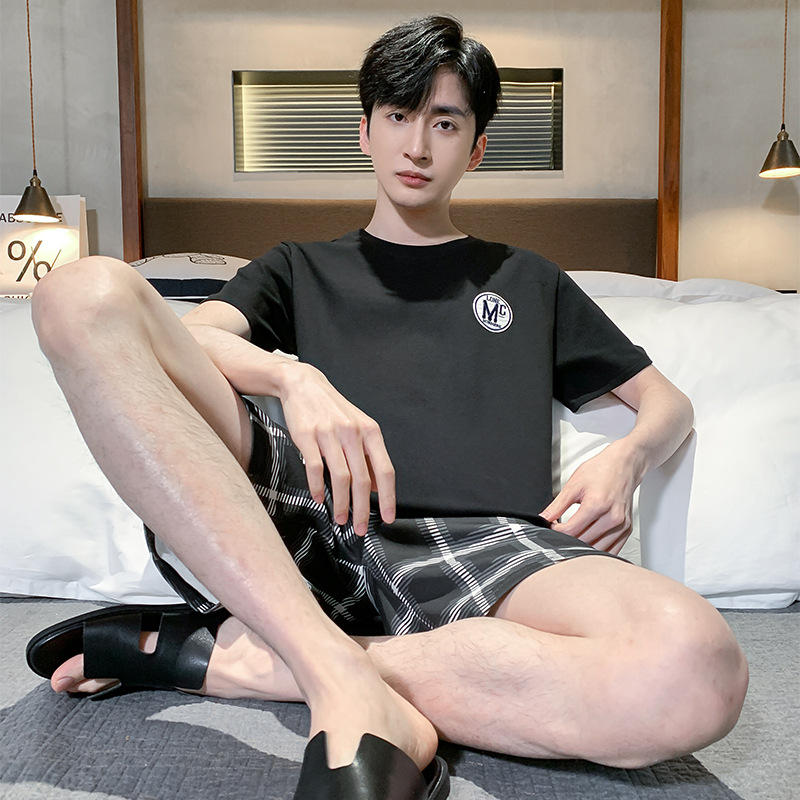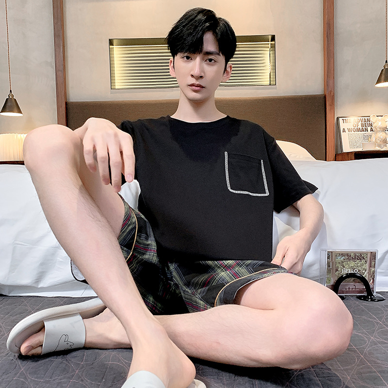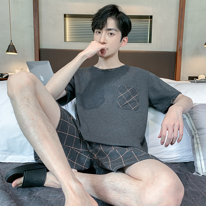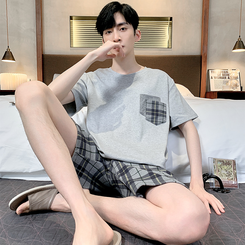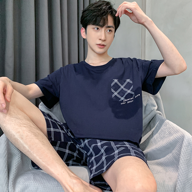 남성 잠옷 남성 여름 면 반팔 풀오버 라운드 넥 플러스 사이즈 플러스 사이즈 홈웨어 여름 얇은 양복스토어 가기