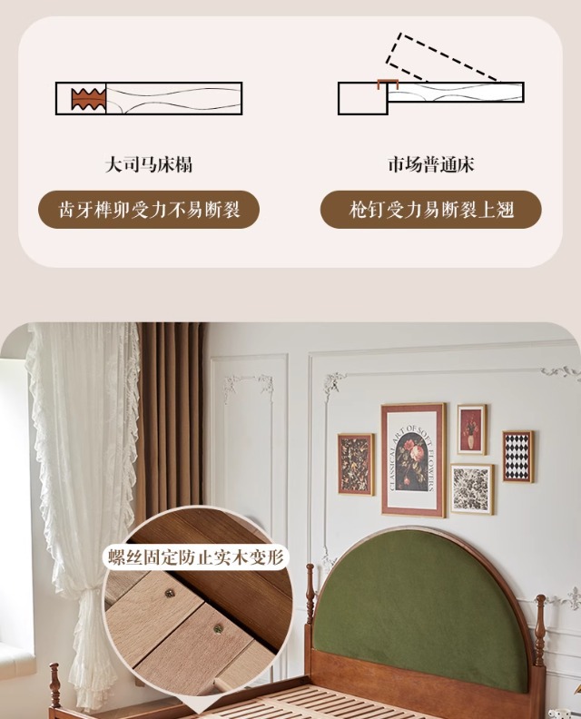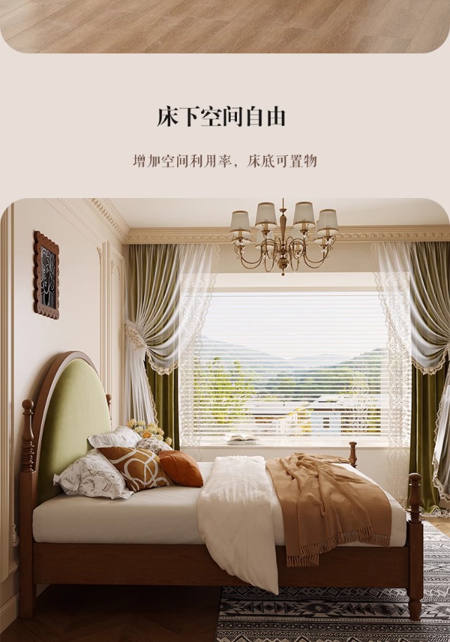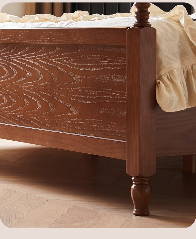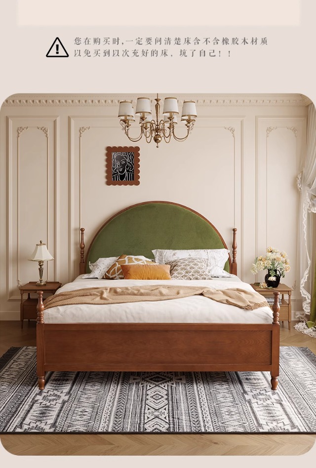 프랑스 중세 스타일 애쉬 나무 작은 아파트 모든 단단한 나무 마스터 침실 디자이너 더블 침대 홈 웨딩 침대 패브릭 침대스토어 가기