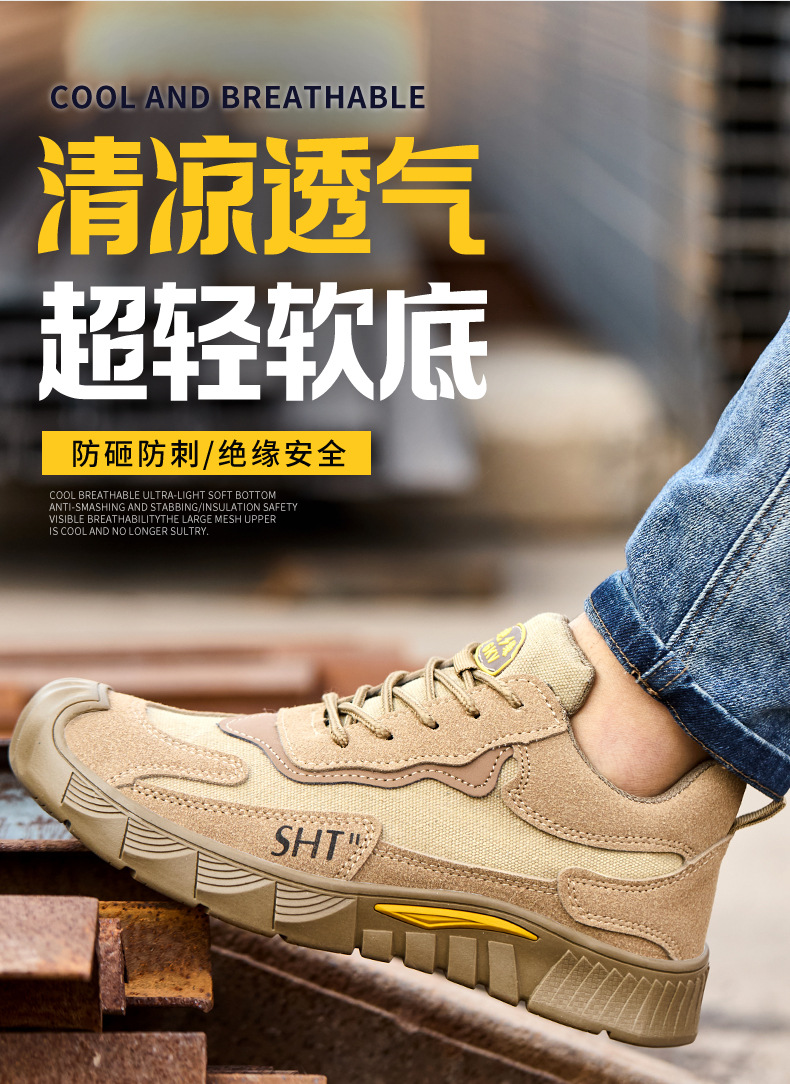 노동 보호 신발, 충격 방지 및 찌르기 방지, 소가죽 메쉬 절연 전기 기사 여름 탈취제, 편안하고 부드러운 밑창, 내마모성 및 미끄럼 방지 건설 현장 신발스토어 가기