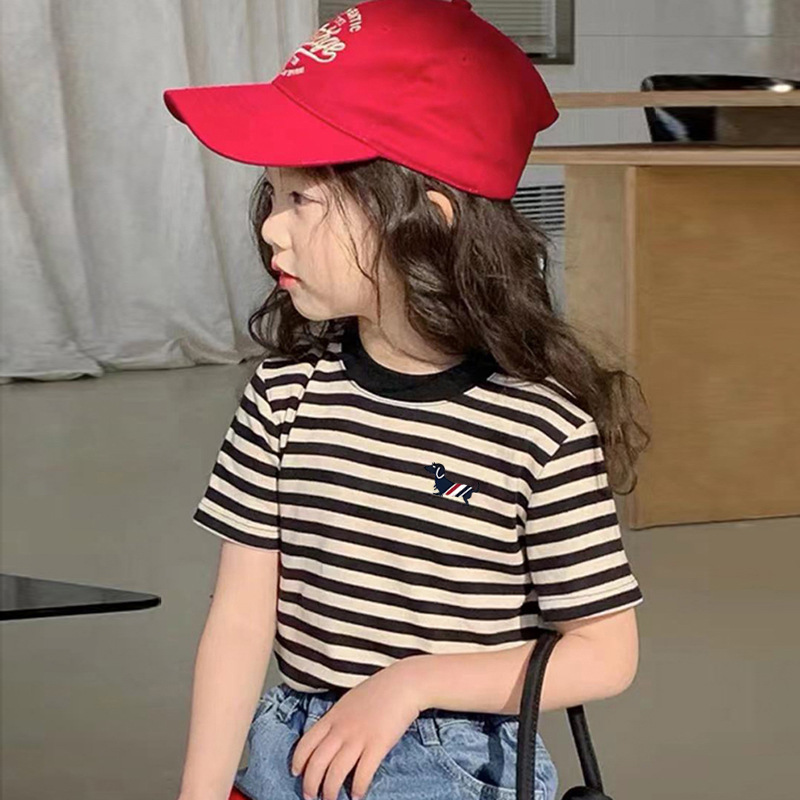 여아 스트라이프 반팔 티셔츠 여름 탑 2025 여름 신작 아동복 중소형 아동 스타일 아동 반팔 티셔츠스토어 가기