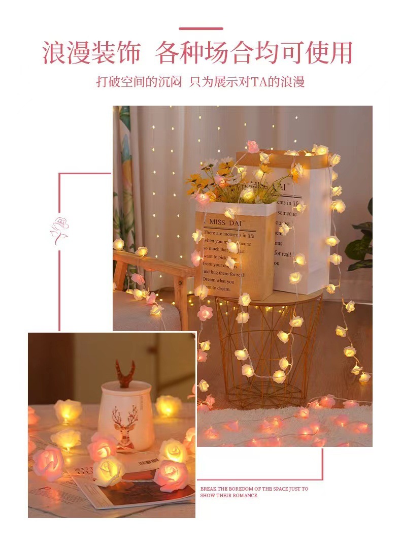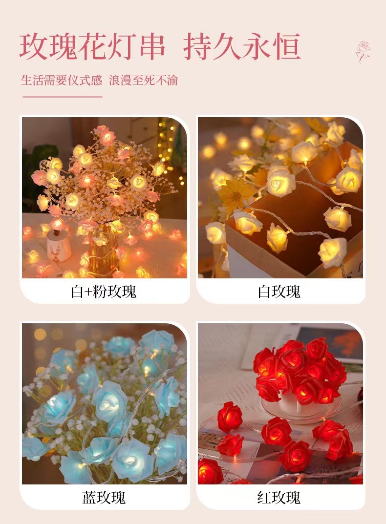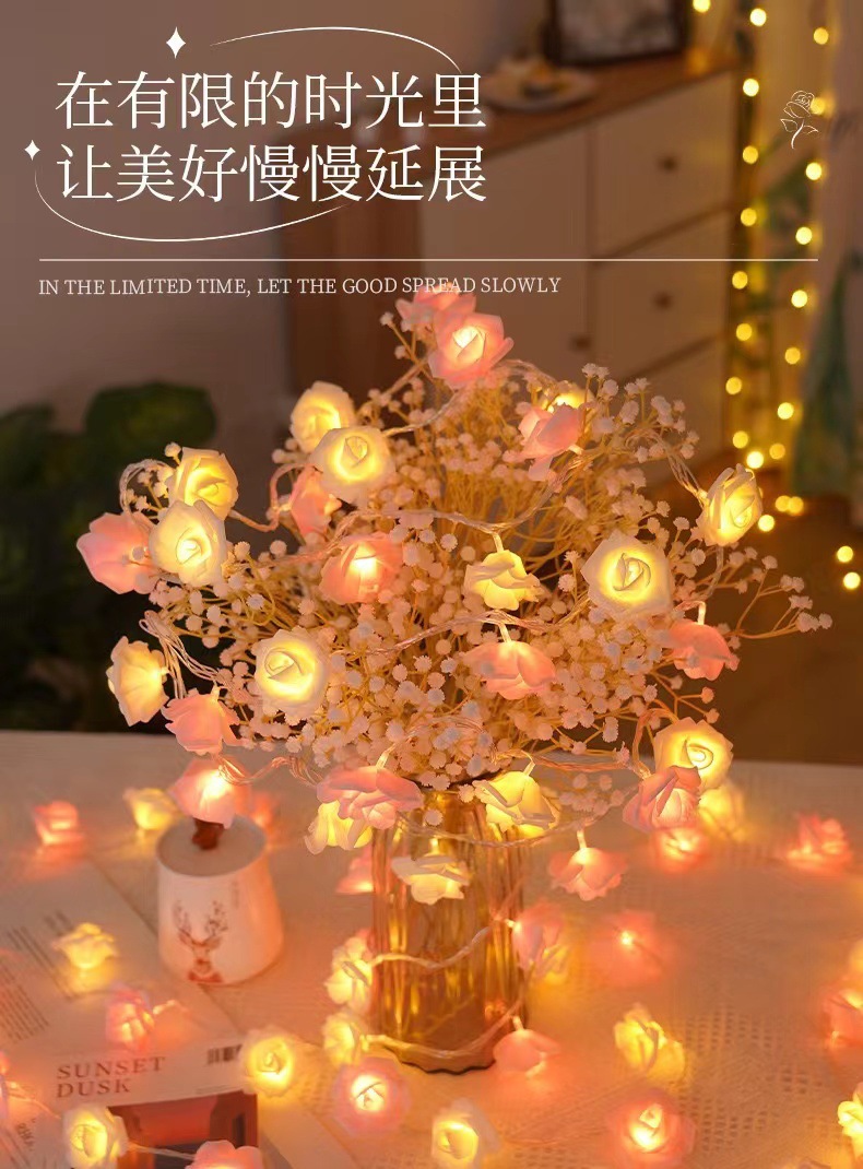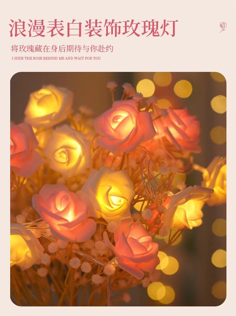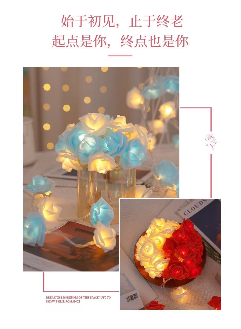 국경 간 LED 시뮬레이션 장미 꽃 끈 조명 발렌타인 데이 결혼식 낭만적 인 제안 고백 방 분위기 깜박이는 조명스토어 가기