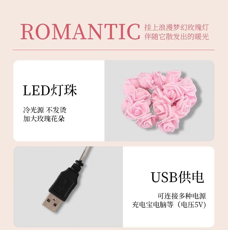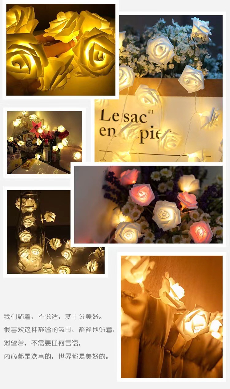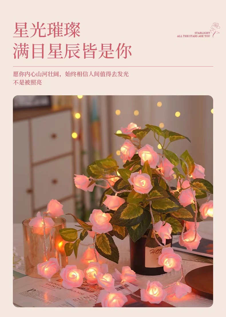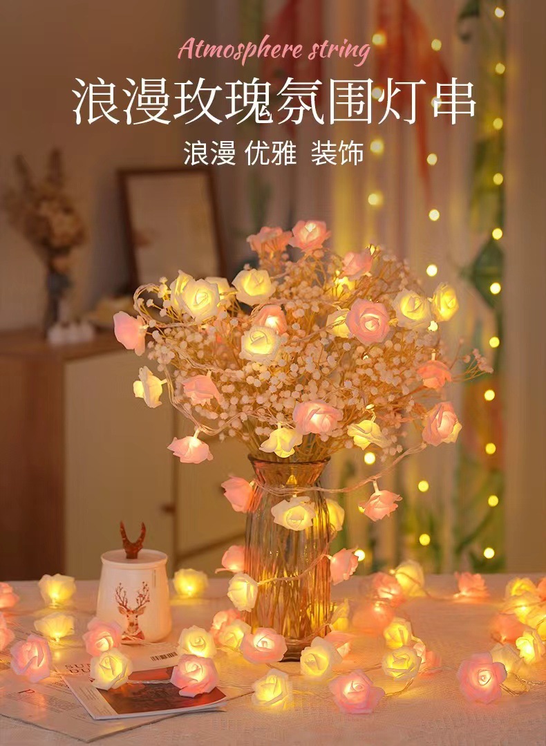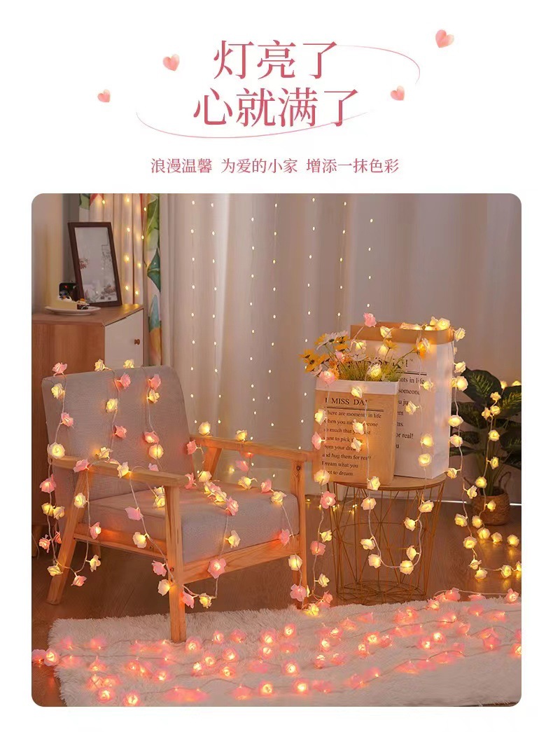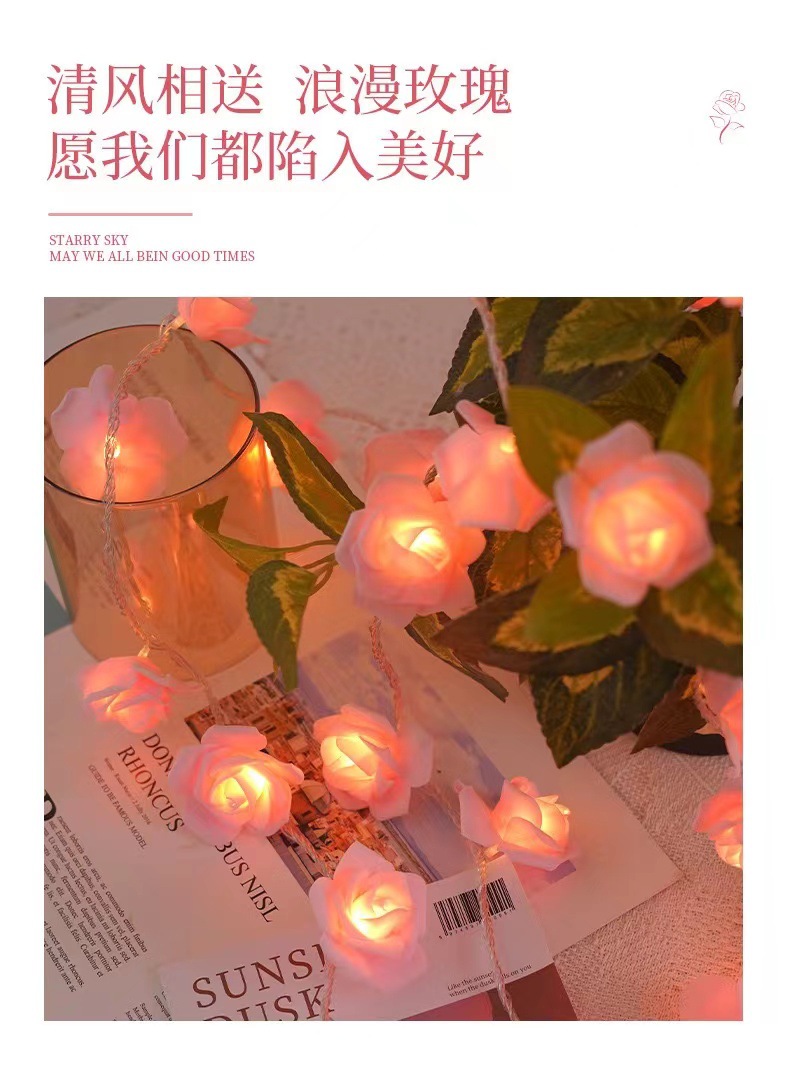 국경 간 LED 시뮬레이션 장미 꽃 끈 조명 발렌타인 데이 결혼식 낭만적 인 제안 고백 방 분위기 깜박이는 조명스토어 가기