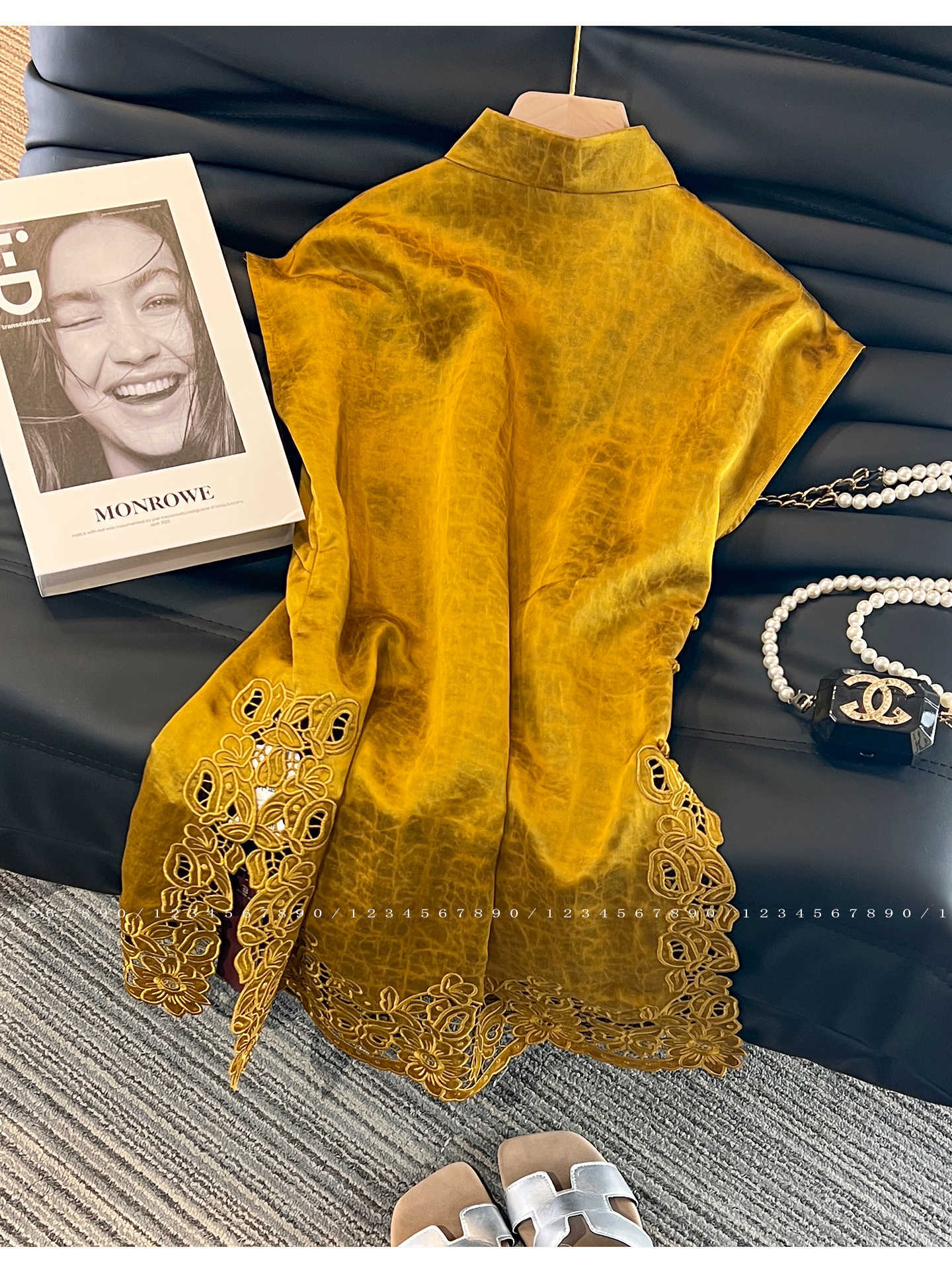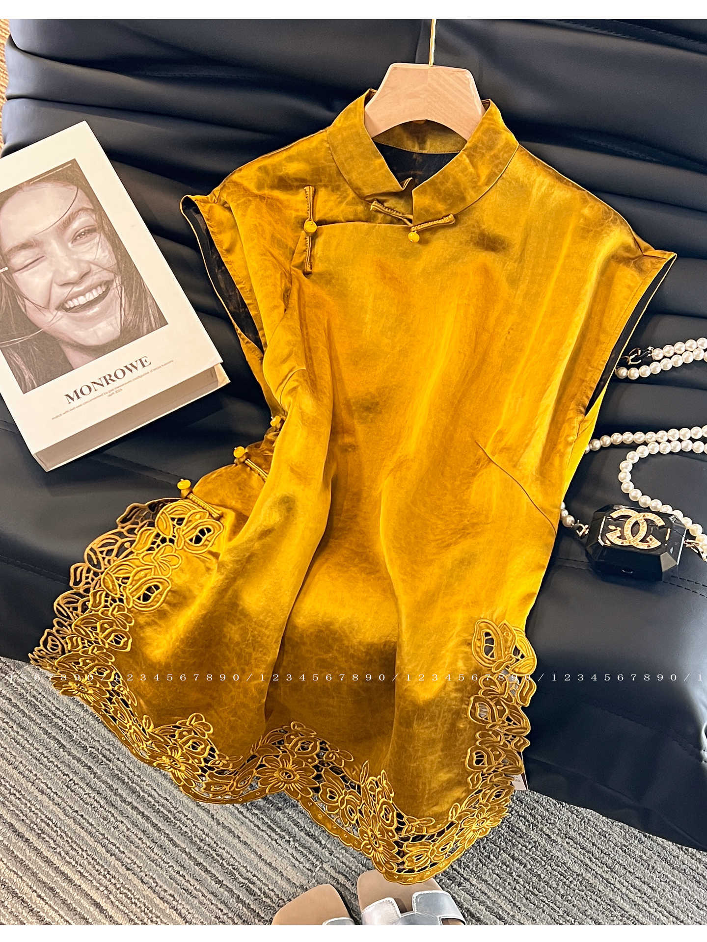 • ATB50073-커피옐로우 사선라펠 중공 탱슈트탑