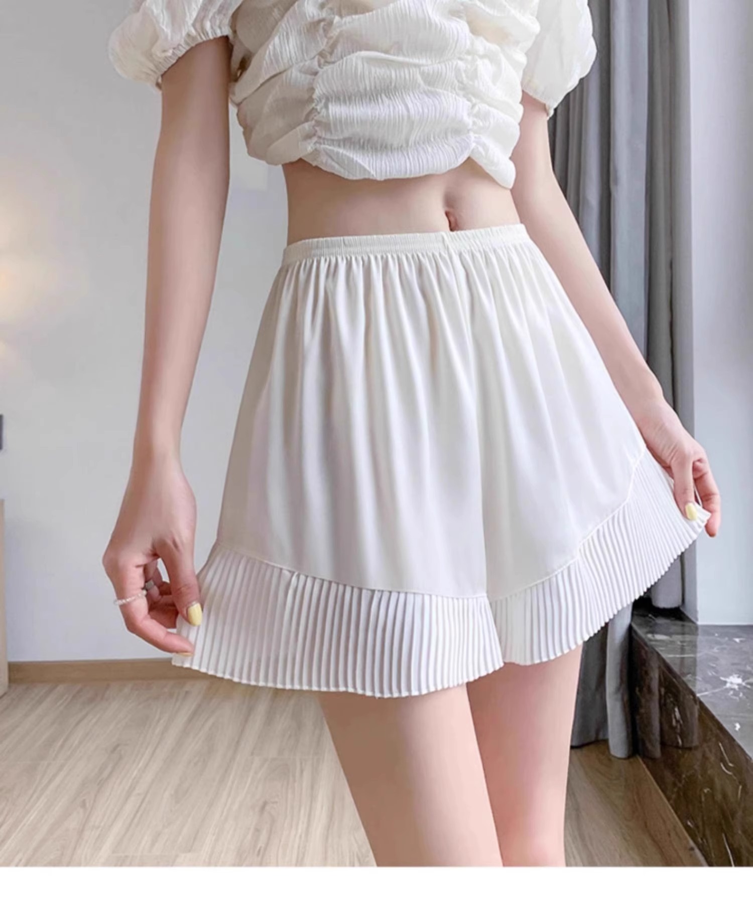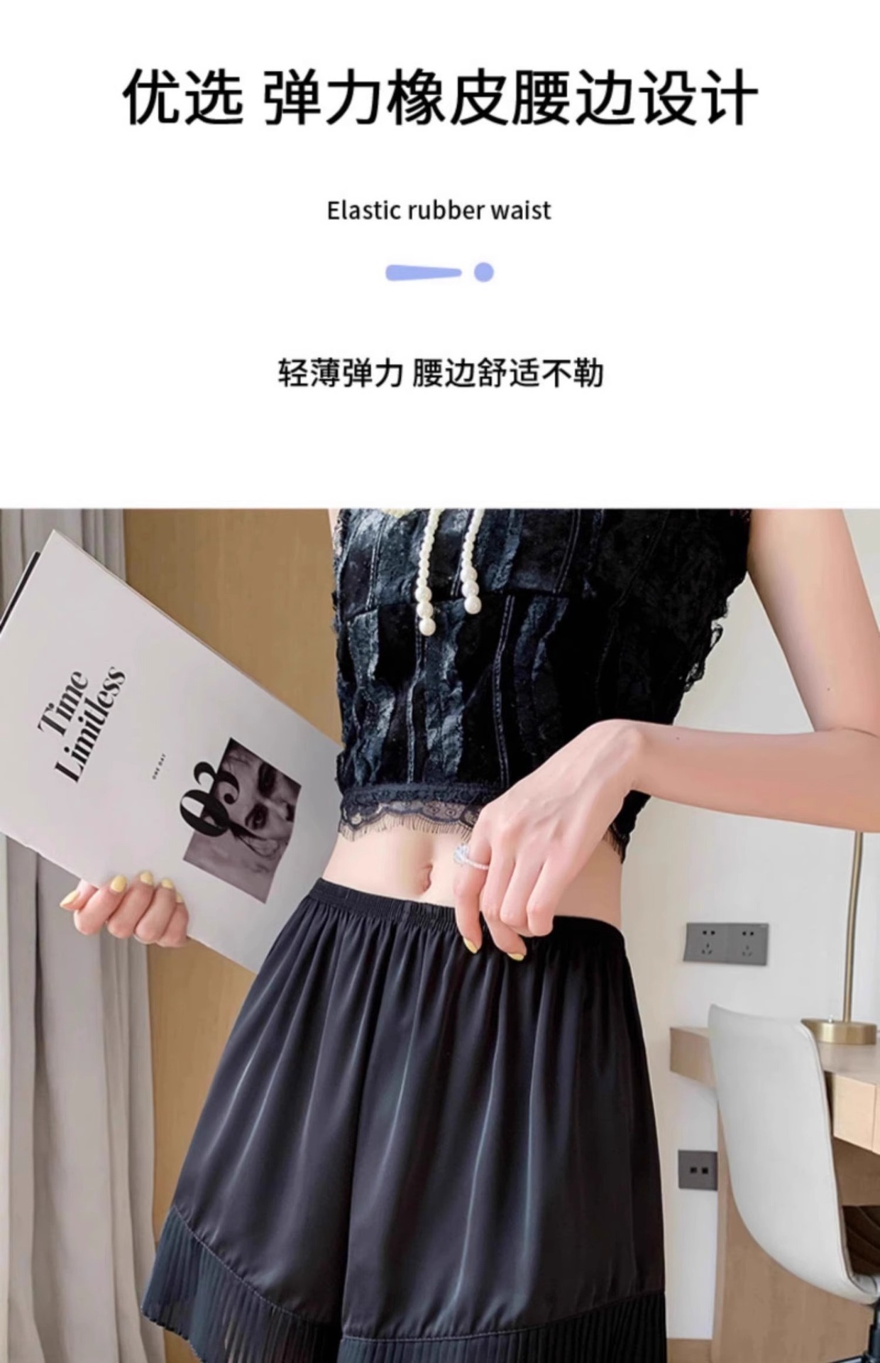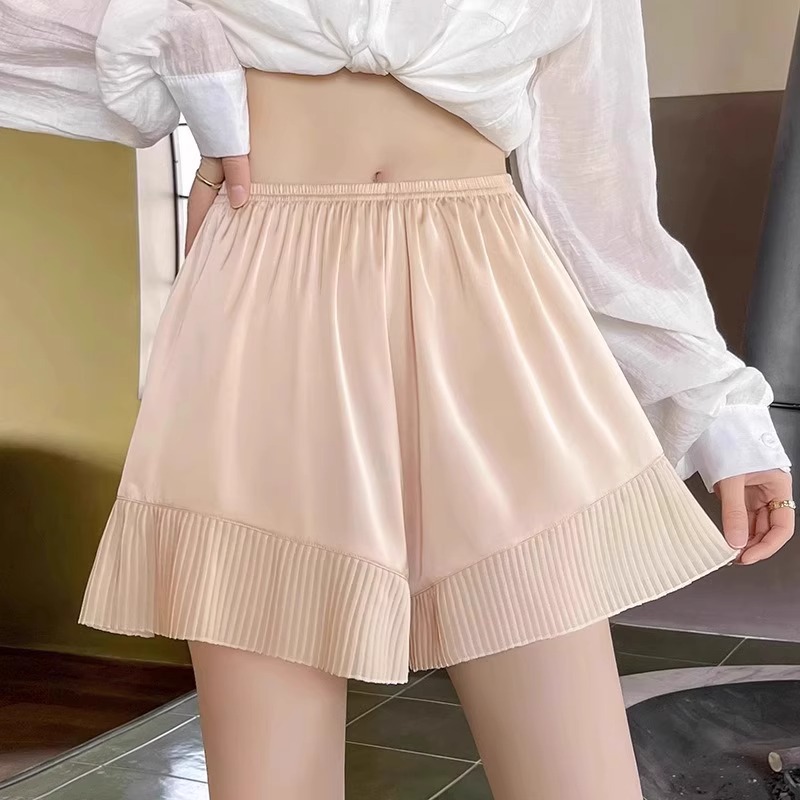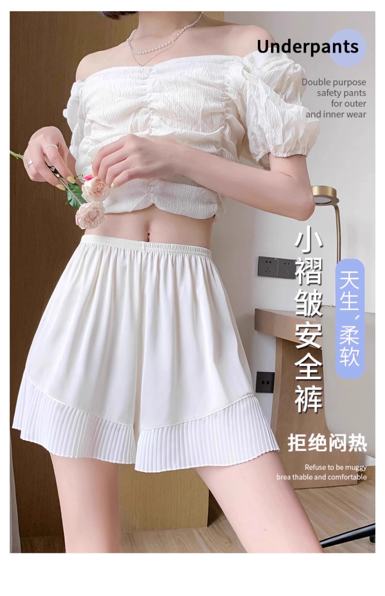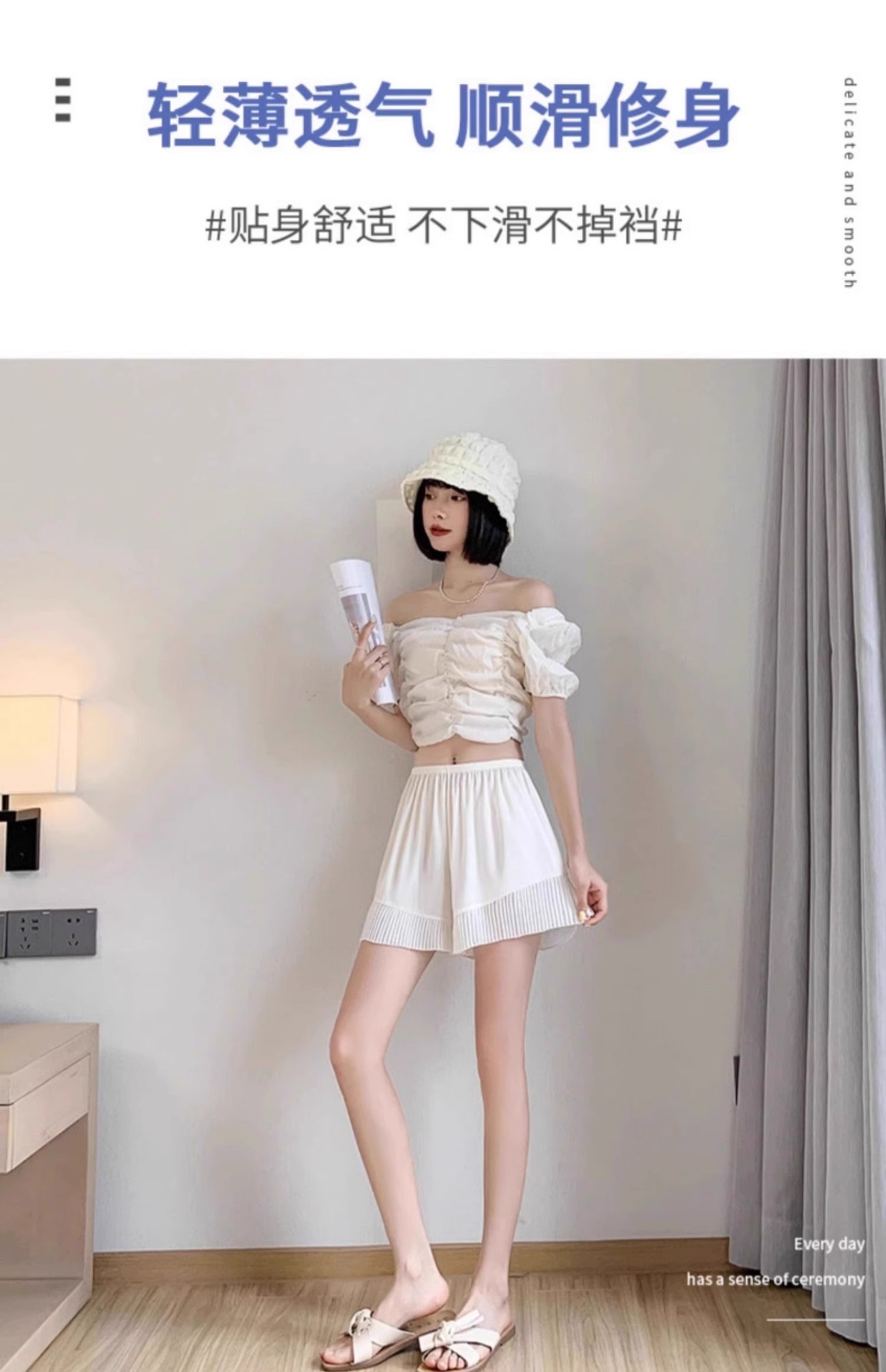 여성용 안전바지, 노출방지, 야외에서 착용 가능, 새로운 여름 얇고 루즈하며 통기성이 좋은 아이스 실크 화이트 바닥 홈 파자마