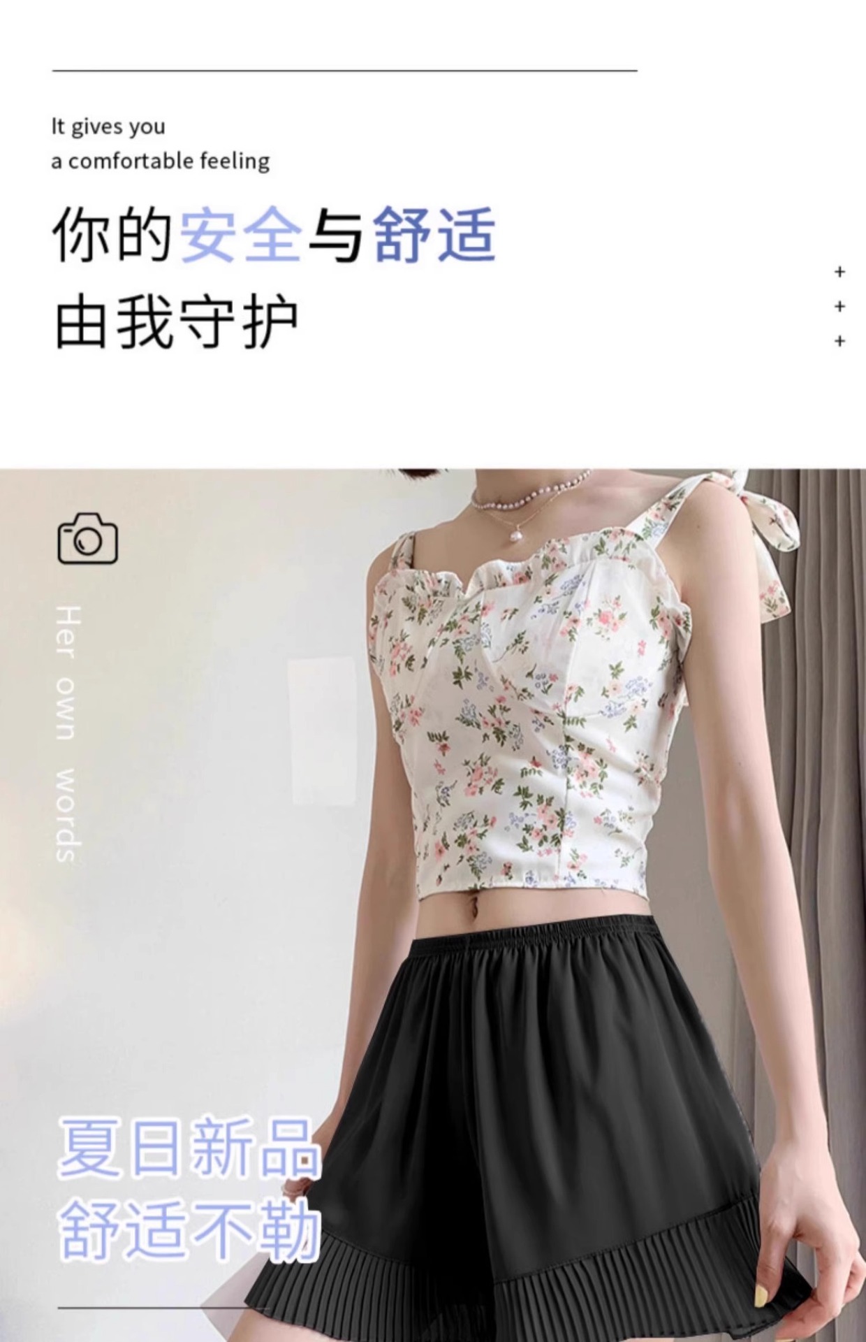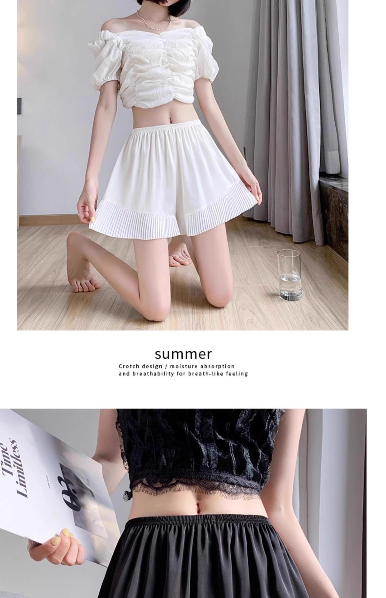 여성용 안전바지, 노출방지, 야외에서 착용 가능, 새로운 여름 얇고 루즈하며 통기성이 좋은 아이스 실크 화이트 바닥 홈 파자마스토어 가기
