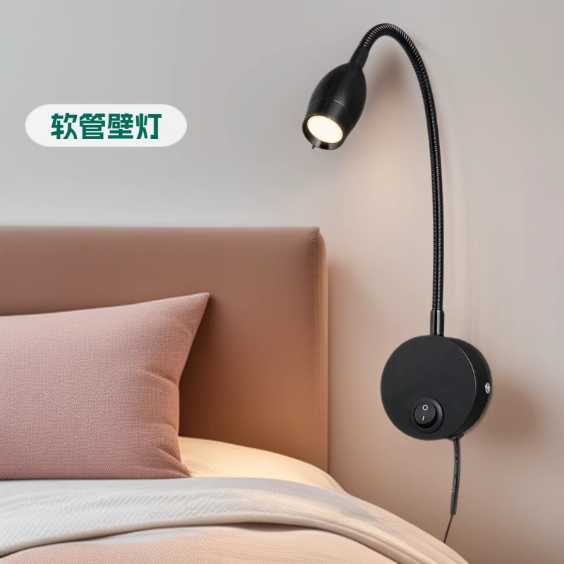 LED 호스 스포트라이트 220V 미국 및 유럽 플러그인 스포트라이트 호스 벽 램프 침대 옆 호스 독서 등 구즈넥 램프