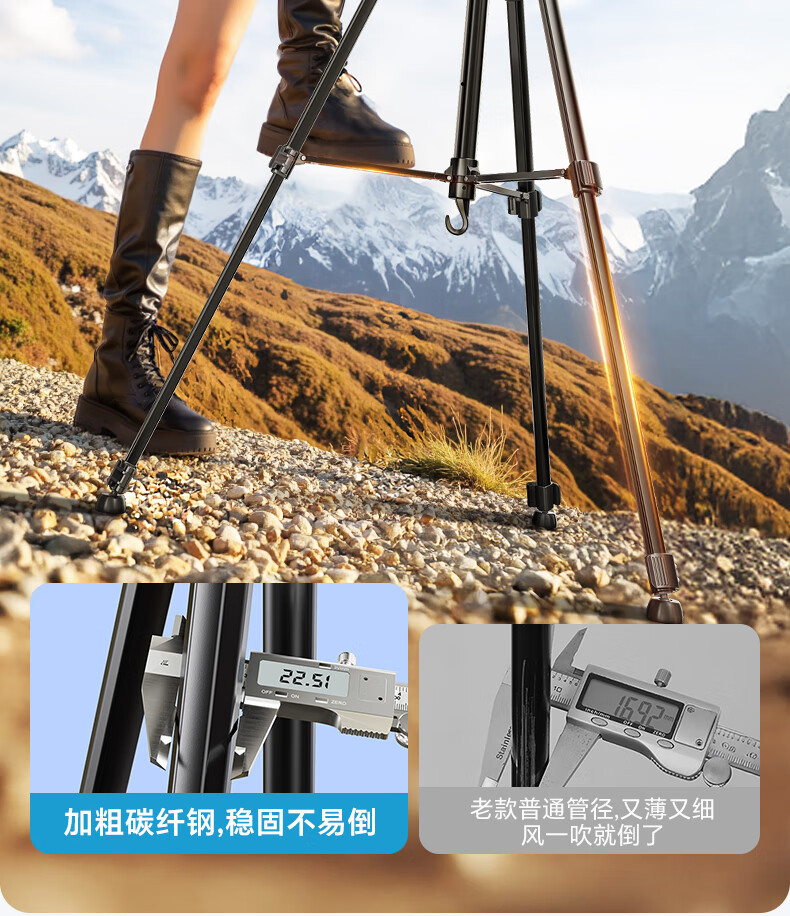 • [2.1m 알루미늄 합금] 매우 안정적인 흔들림 방지 + 짐벌