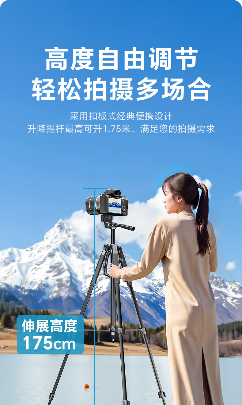 • [1.75m 알루미늄 합금] 매우 안정적인 흔들림 방지 + 짐벌 삼각대