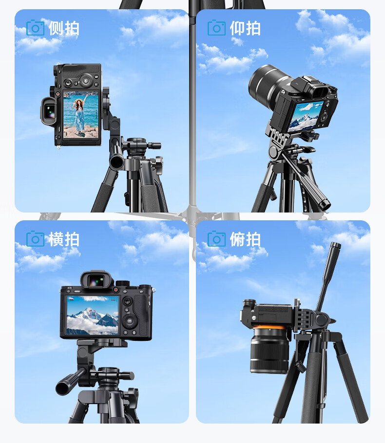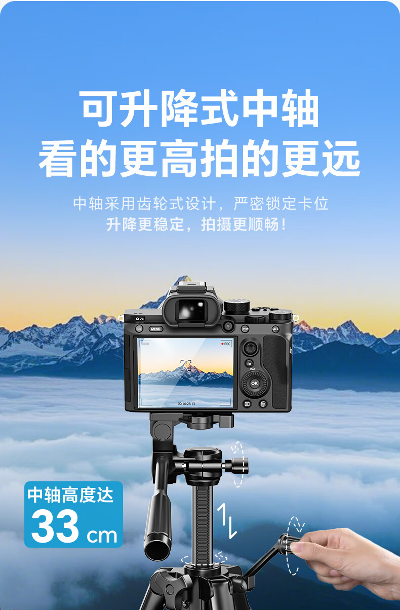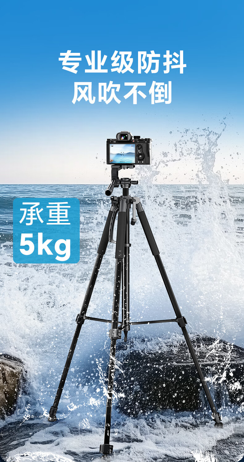 • [1.5m 알루미늄 합금] 매우 안정적인 흔들림 방지 + 짐벌 삼각대