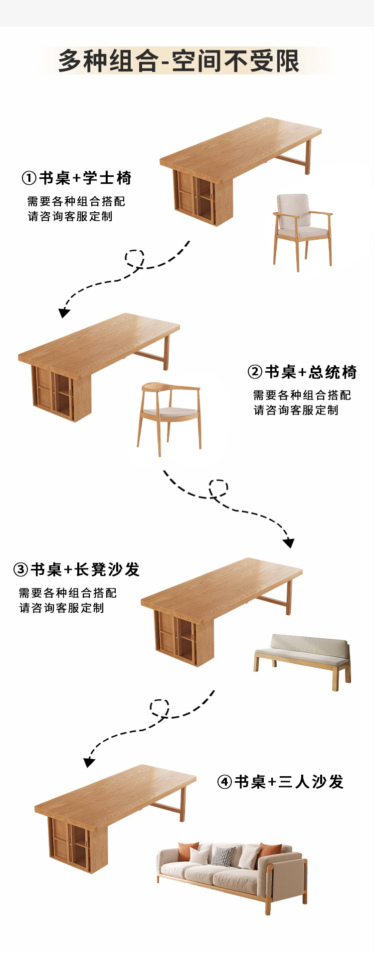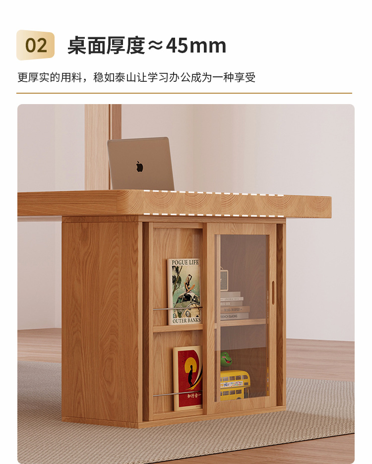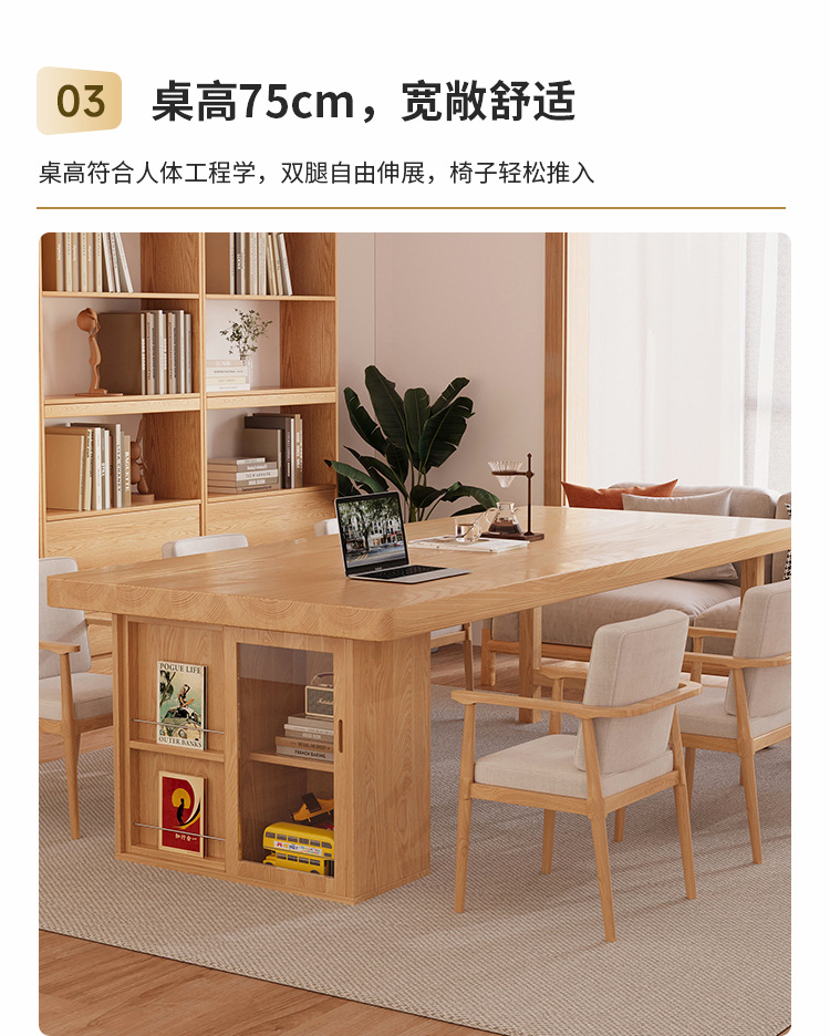 Muyangren 현대 간단한 애쉬 대형 긴 책상 책장 조합 홈 독서 학습 테이블 단단한 나무 책상스토어 가기
