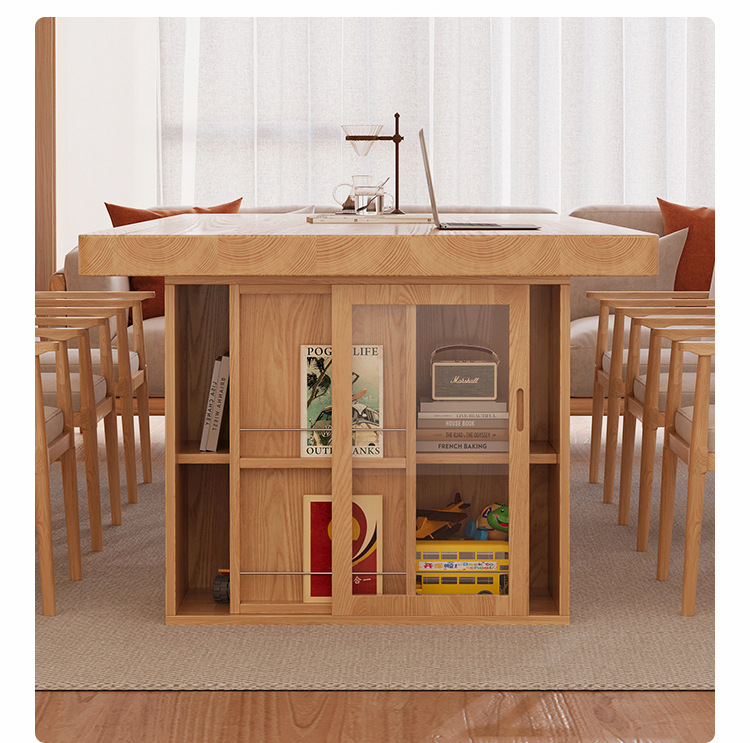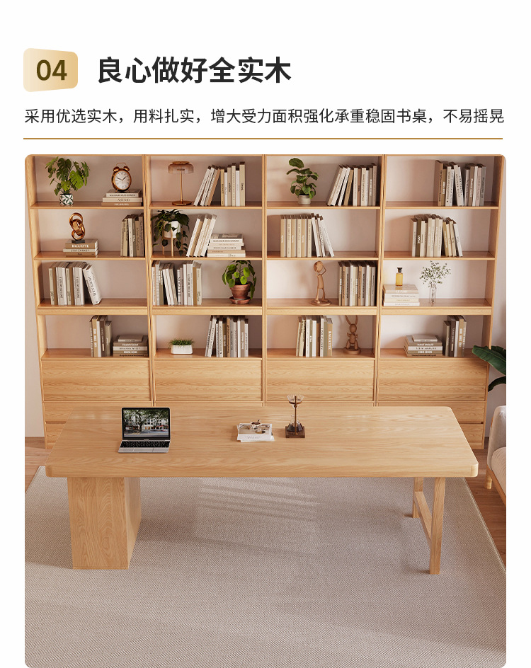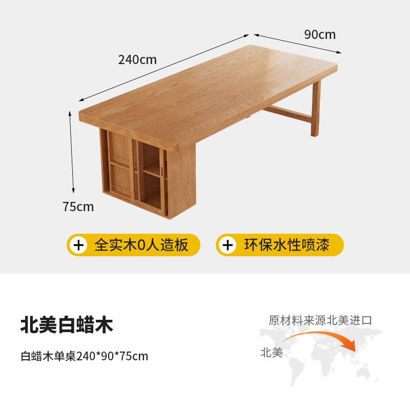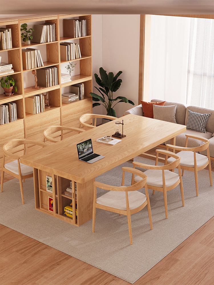 Muyangren 현대 간단한 애쉬 대형 긴 책상 책장 조합 홈 독서 학습 테이블 단단한 나무 책상