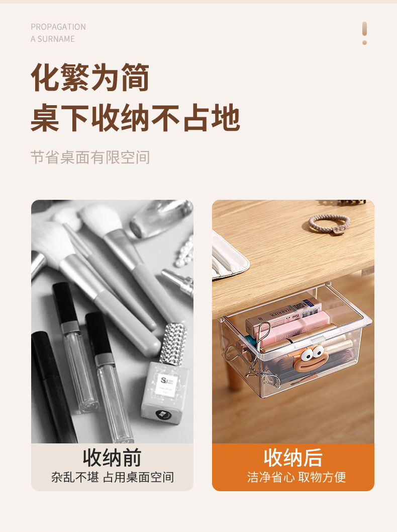 탁상서랍형 수납박스 학생기숙사 문구정리박스 탁자밑 숨김수납박스