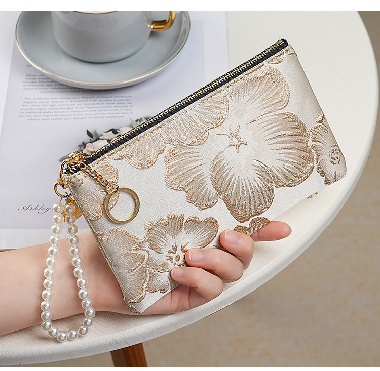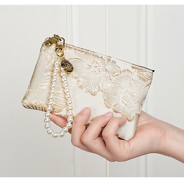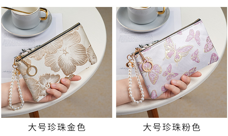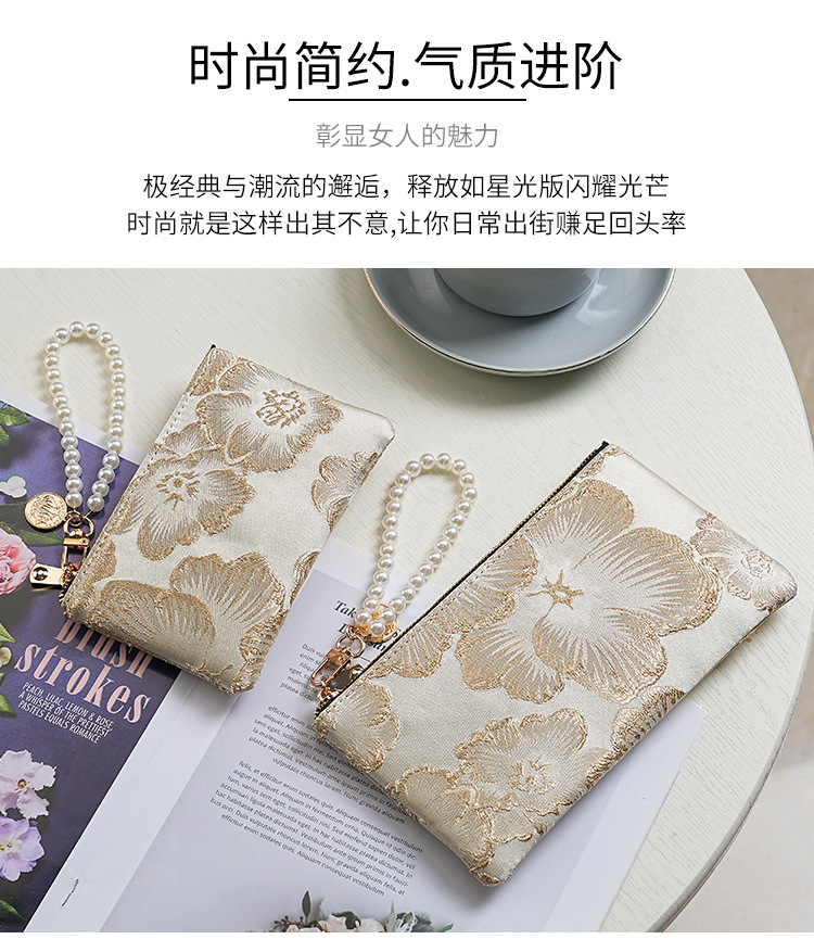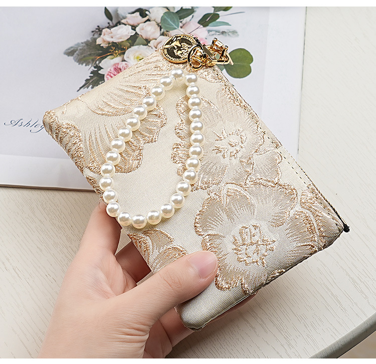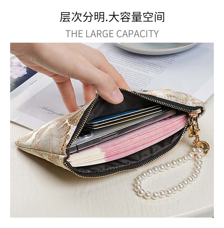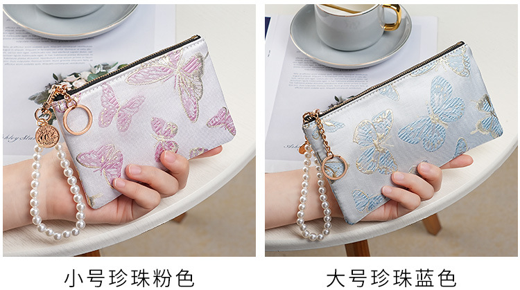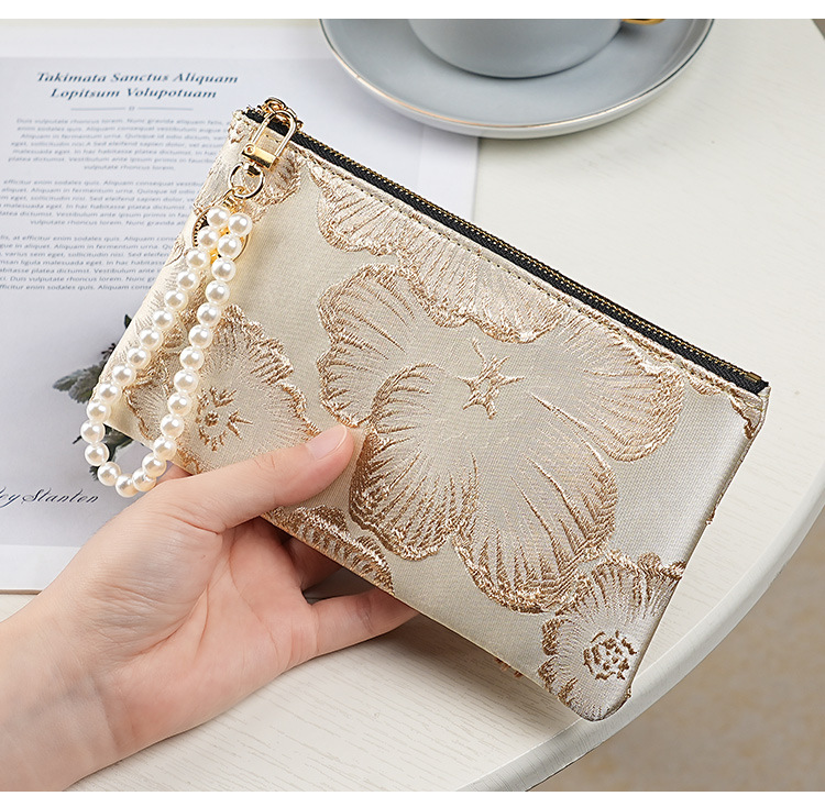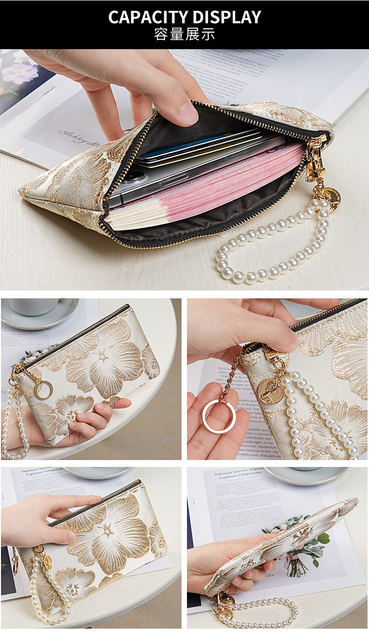 지갑 여성 롱 스타일 2025 새로운 중국 스타일 수 놓은 진주 휴대용 지퍼 카드 홀더 동전 지갑 휴대 전화 보관 가방스토어 가기