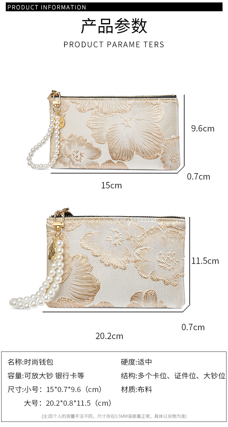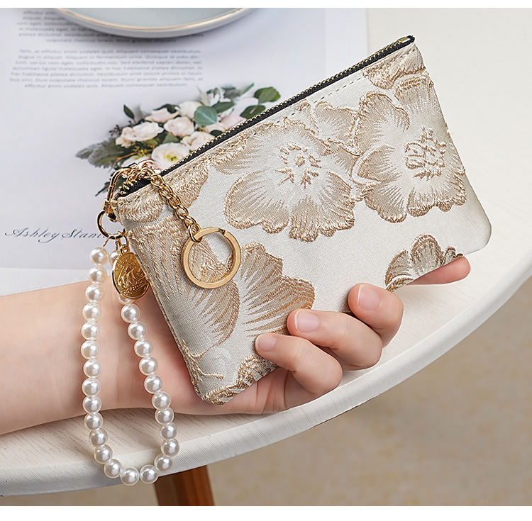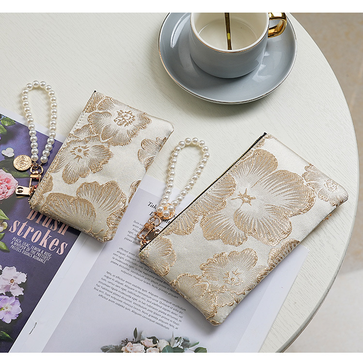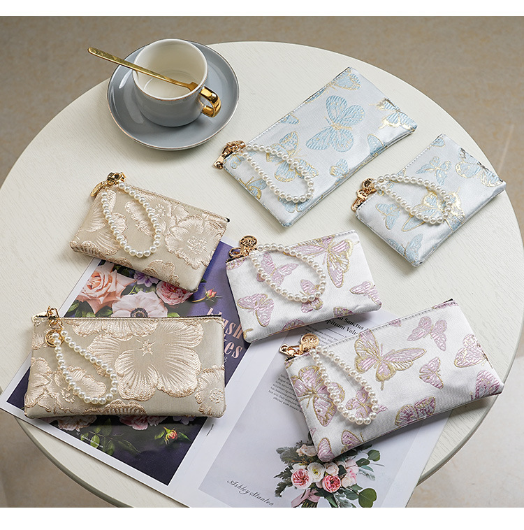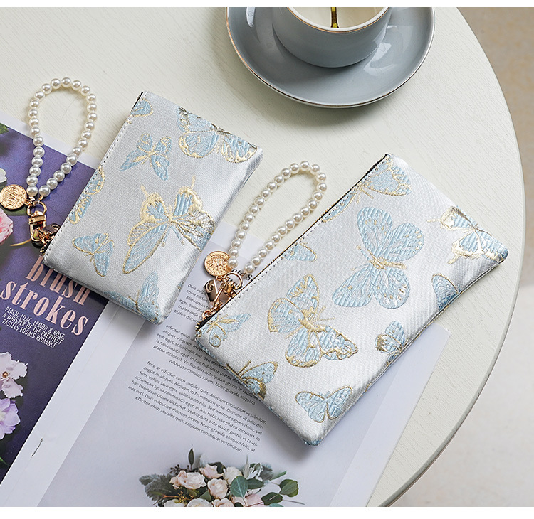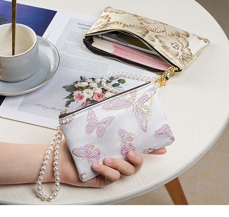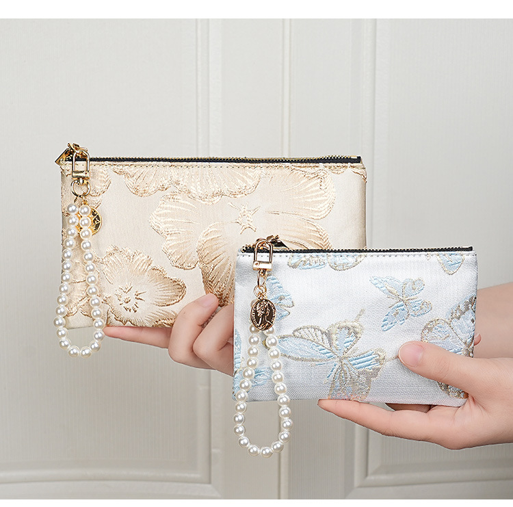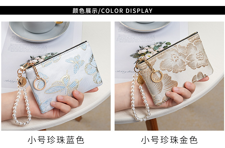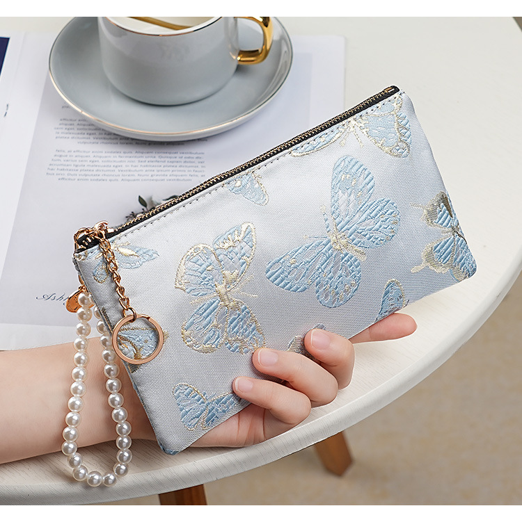 지갑 여성 롱 스타일 2025 새로운 중국 스타일 수 놓은 진주 휴대용 지퍼 카드 홀더 동전 지갑 휴대 전화 보관 가방스토어 가기