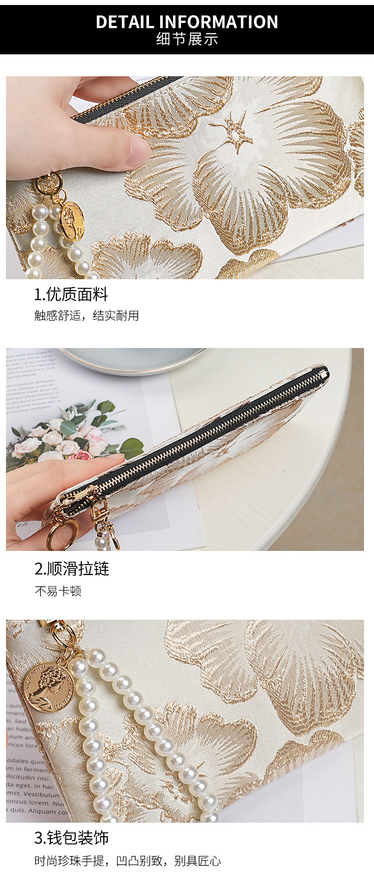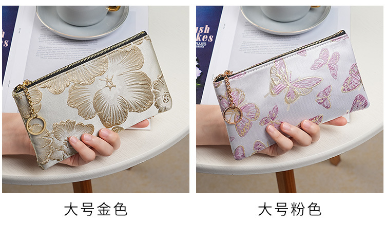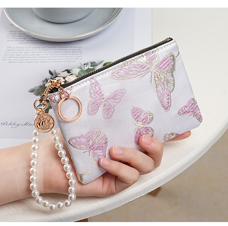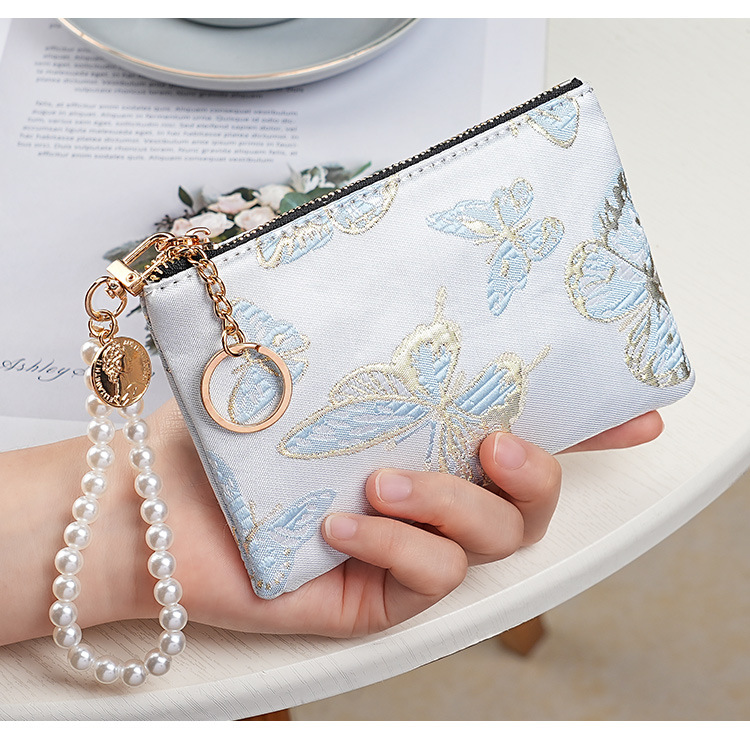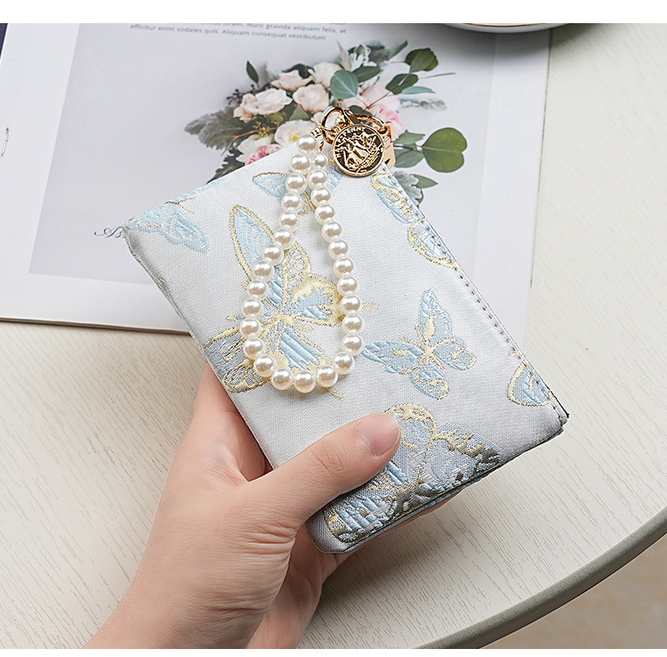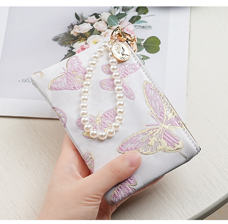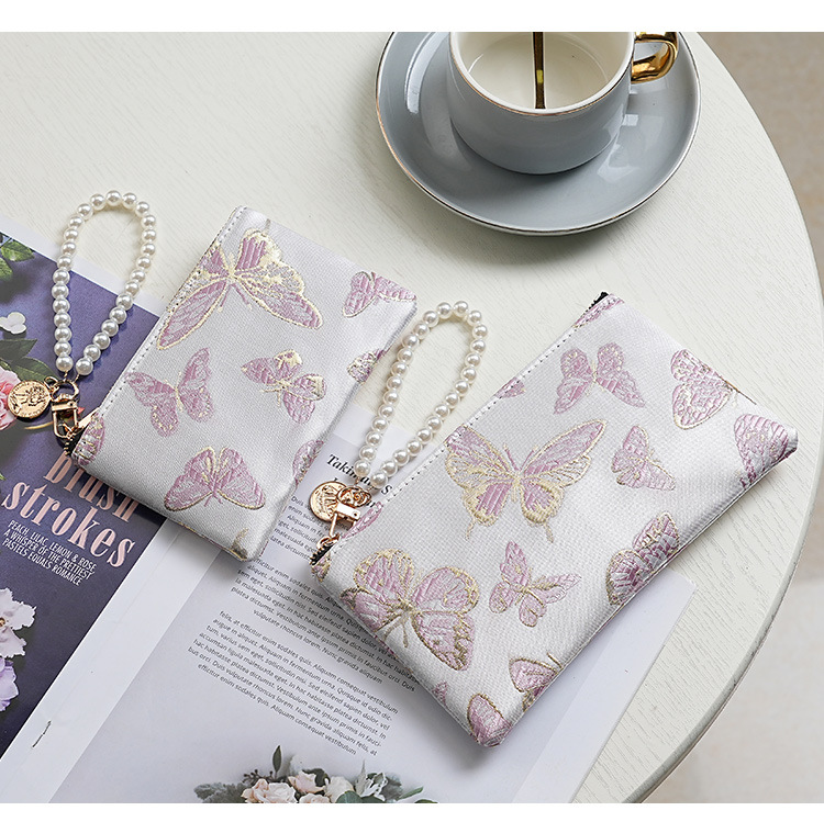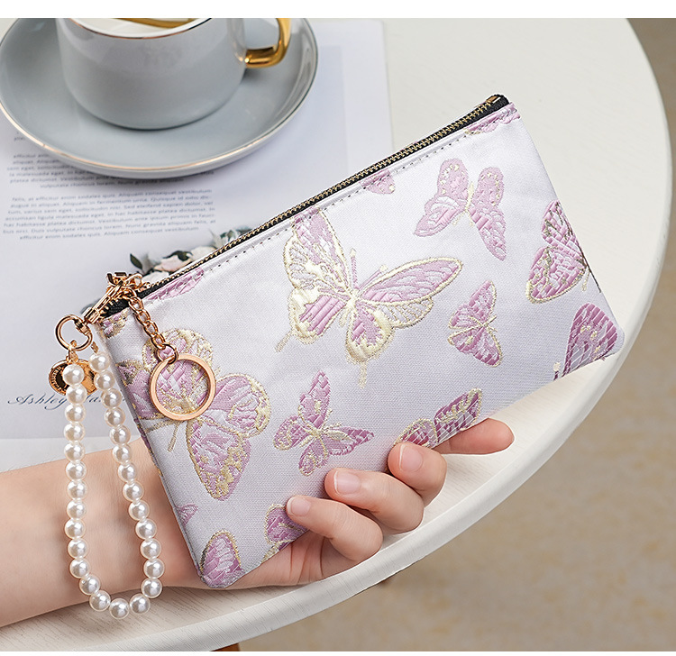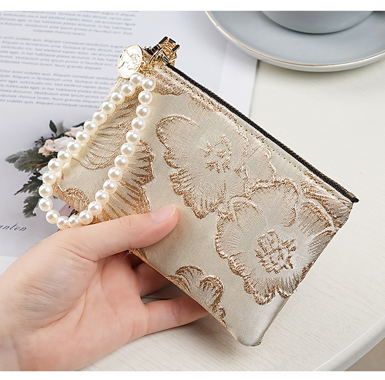 지갑 여성 롱 스타일 2025 새로운 중국 스타일 수 놓은 진주 휴대용 지퍼 카드 홀더 동전 지갑 휴대 전화 보관 가방스토어 가기