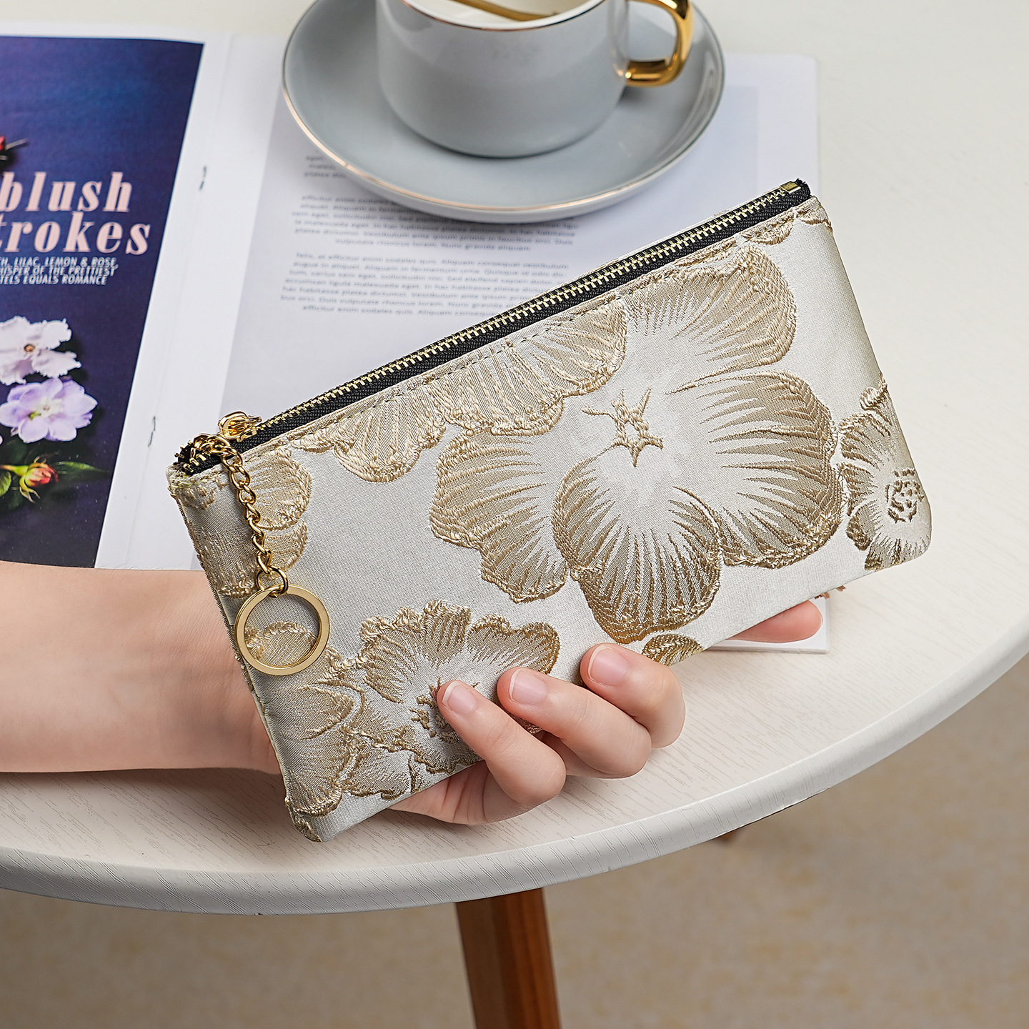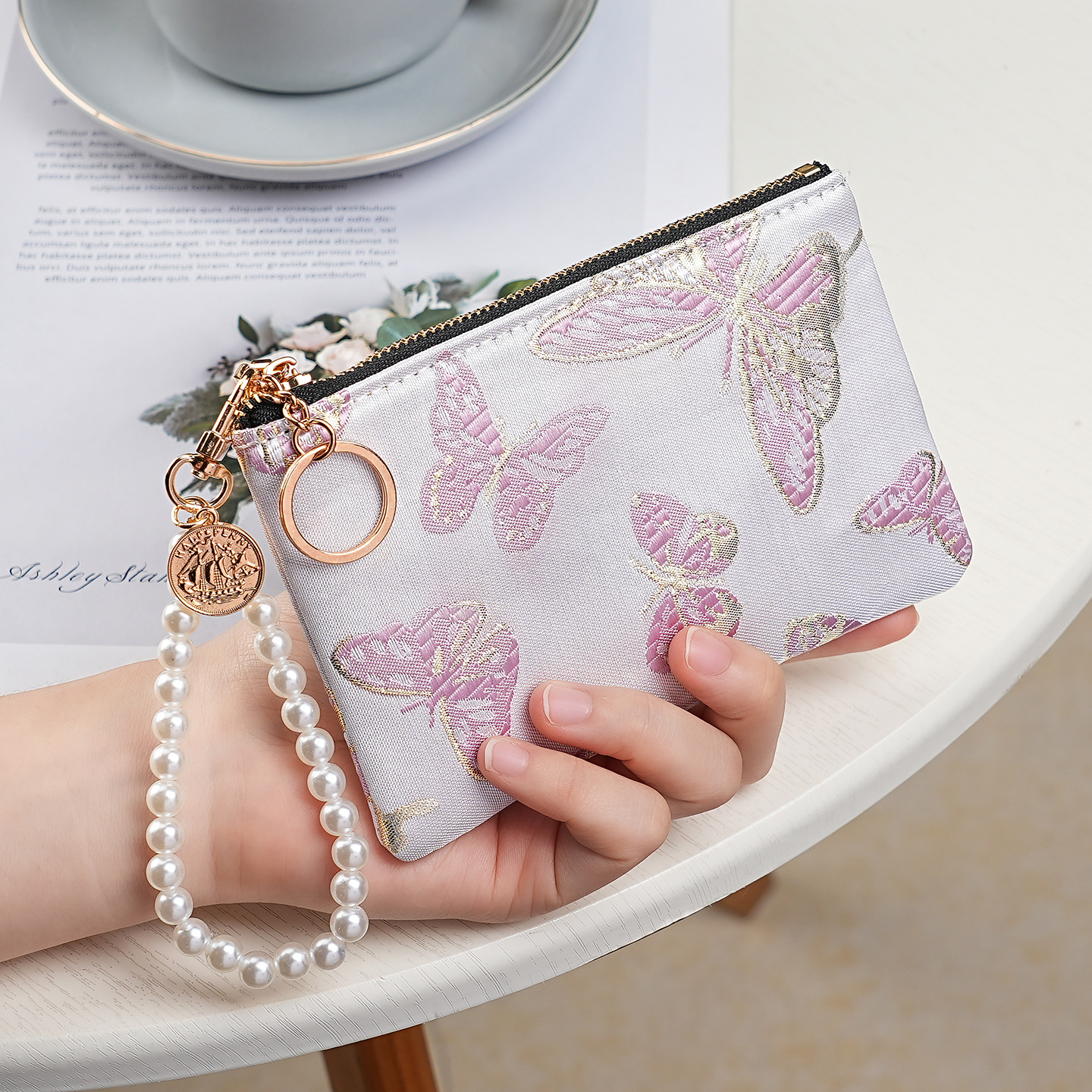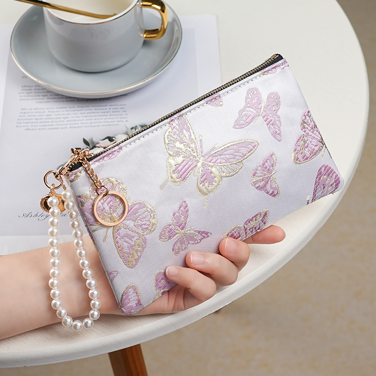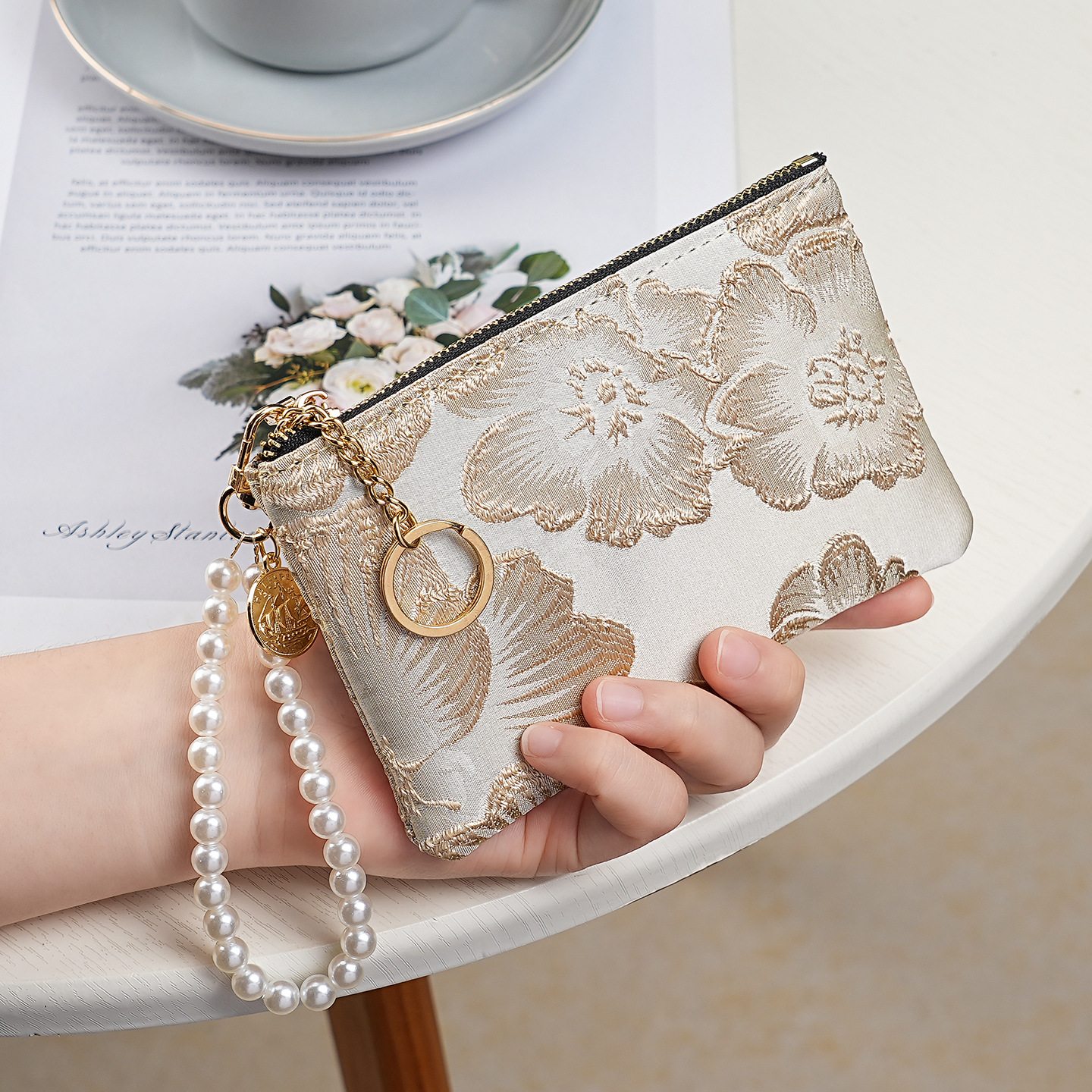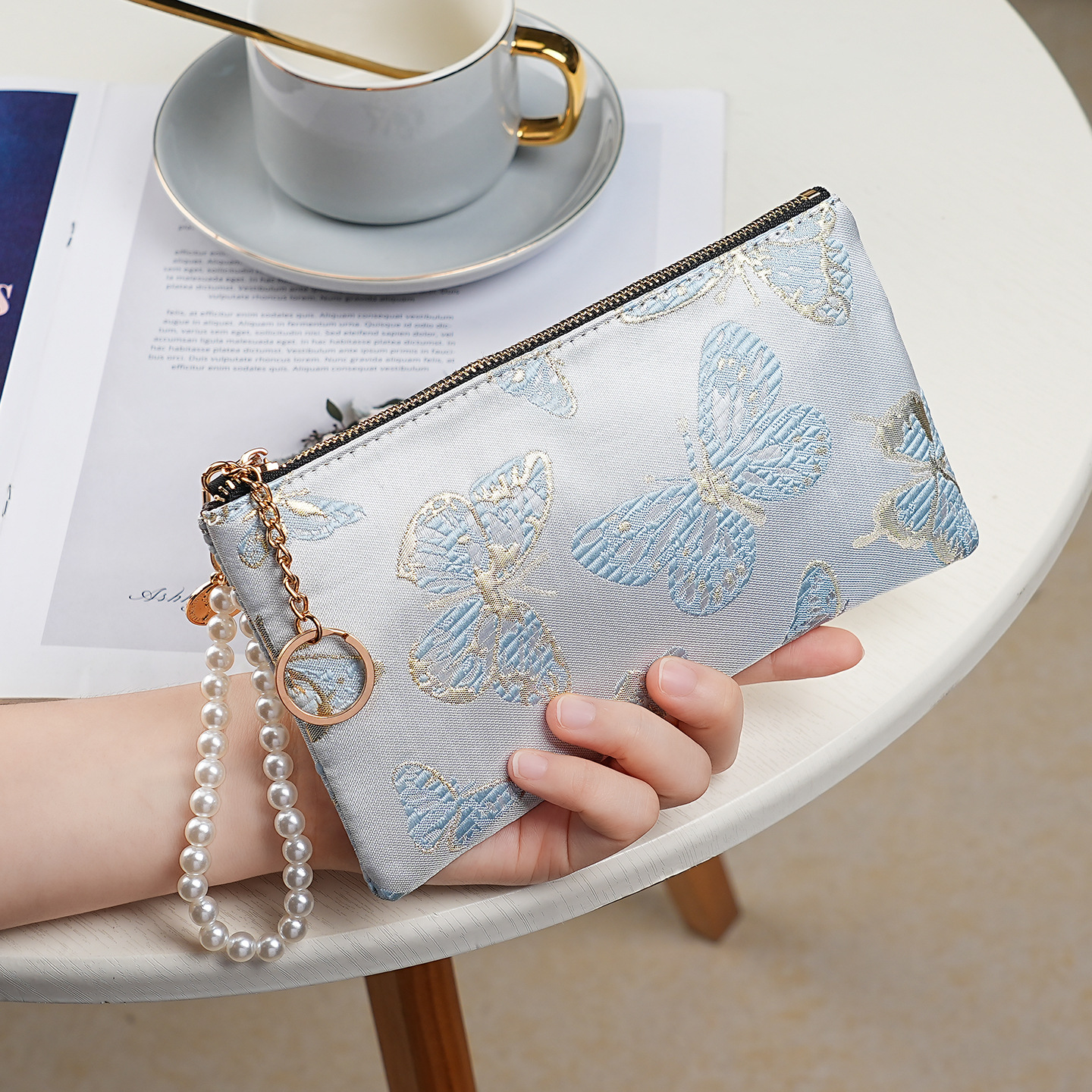 지갑 여성 롱 스타일 2025 새로운 중국 스타일 수 놓은 진주 휴대용 지퍼 카드 홀더 동전 지갑 휴대 전화 보관 가방스토어 가기