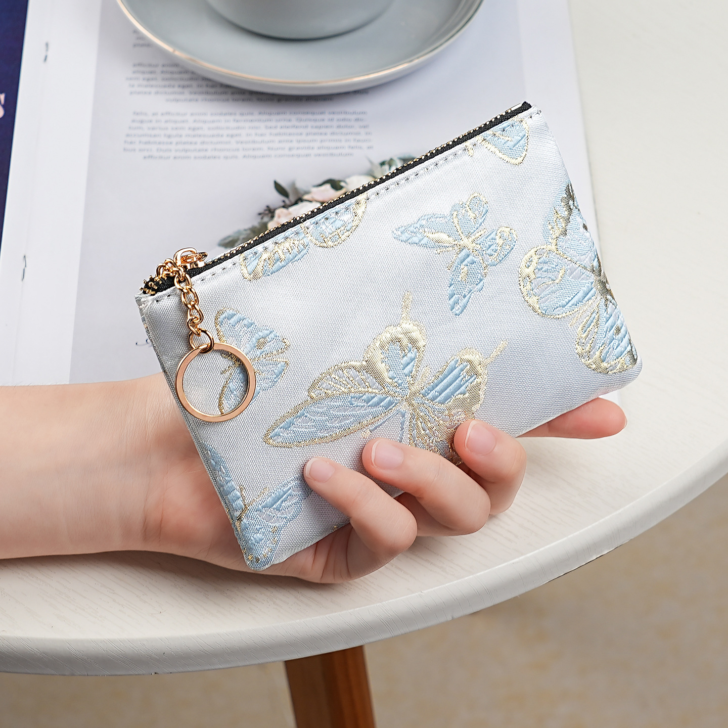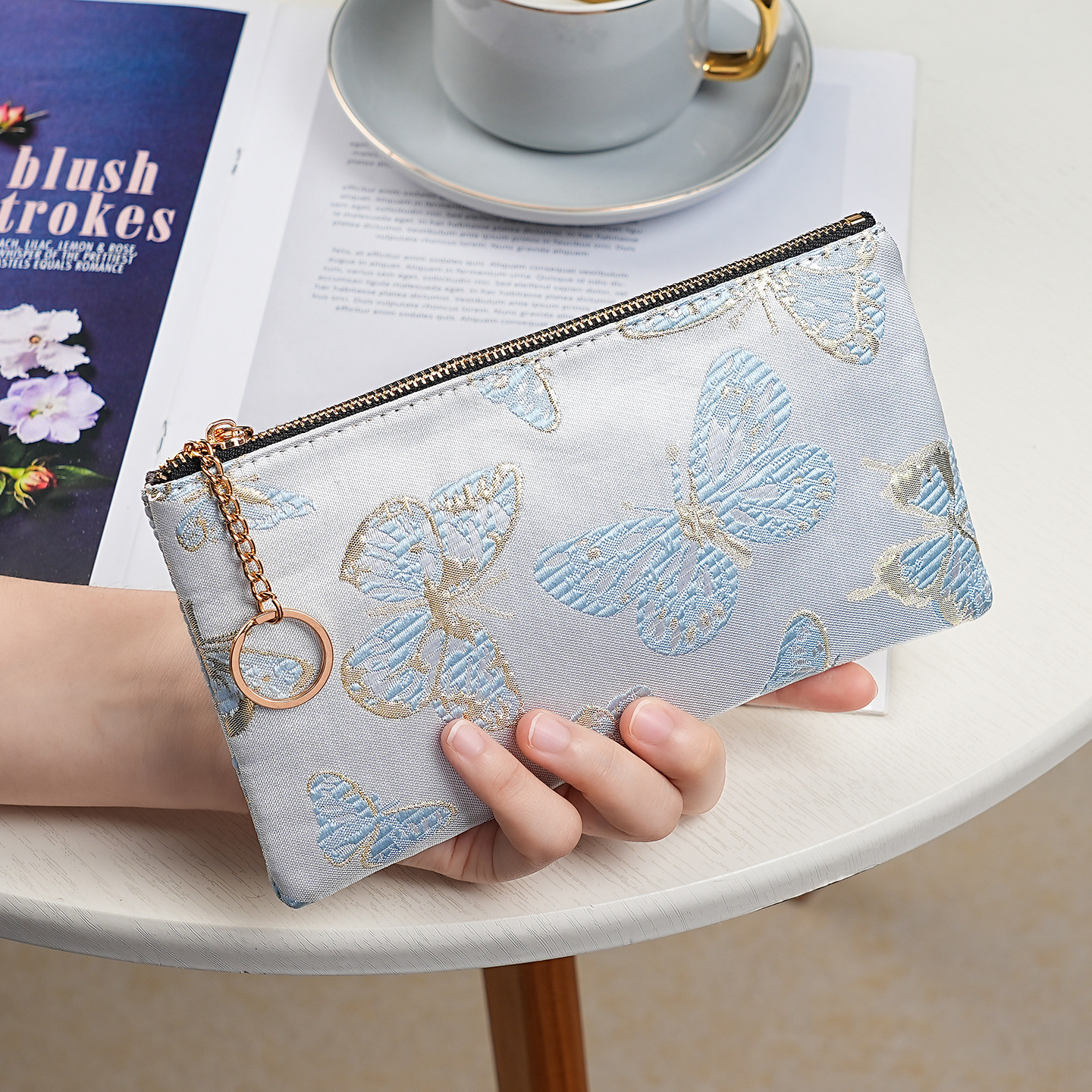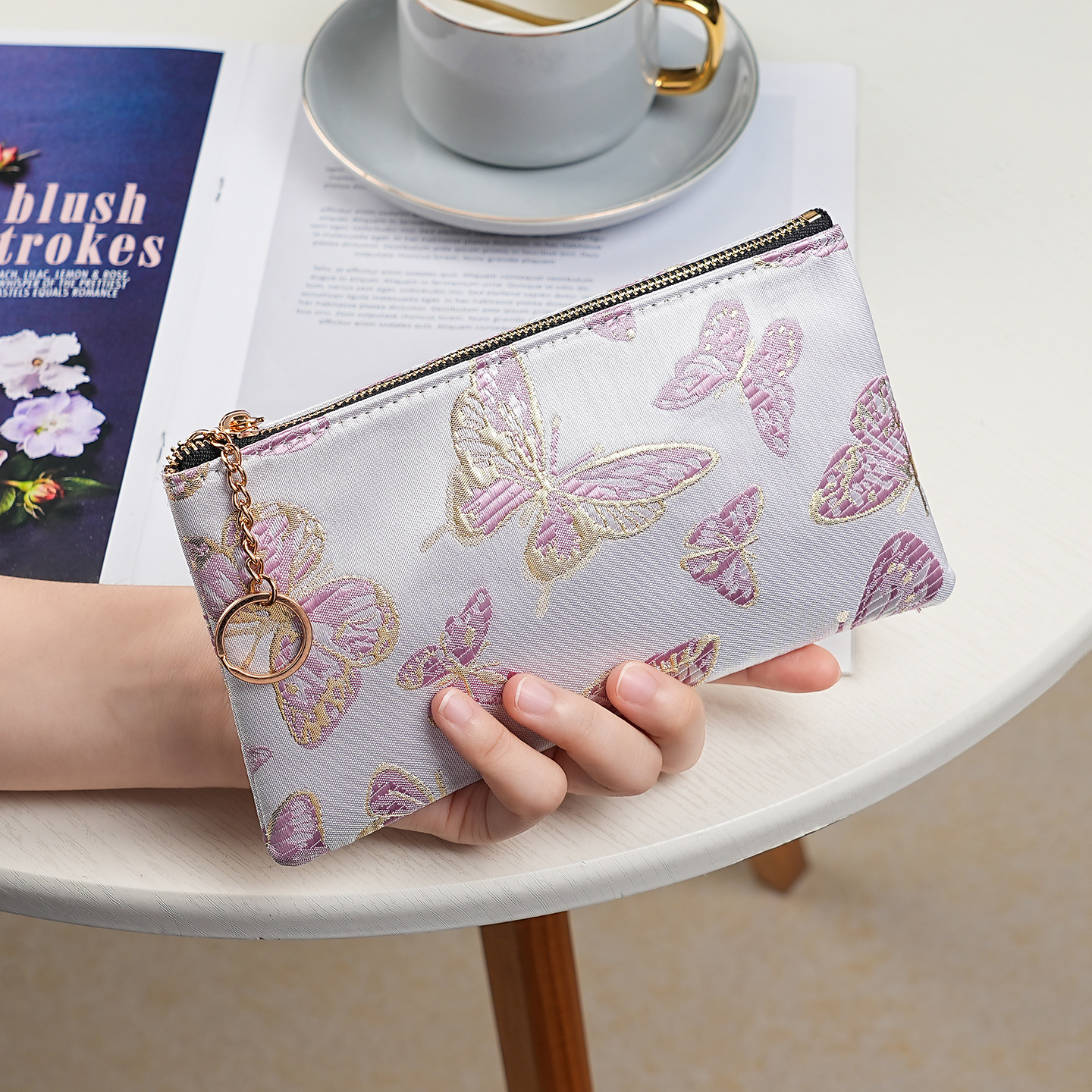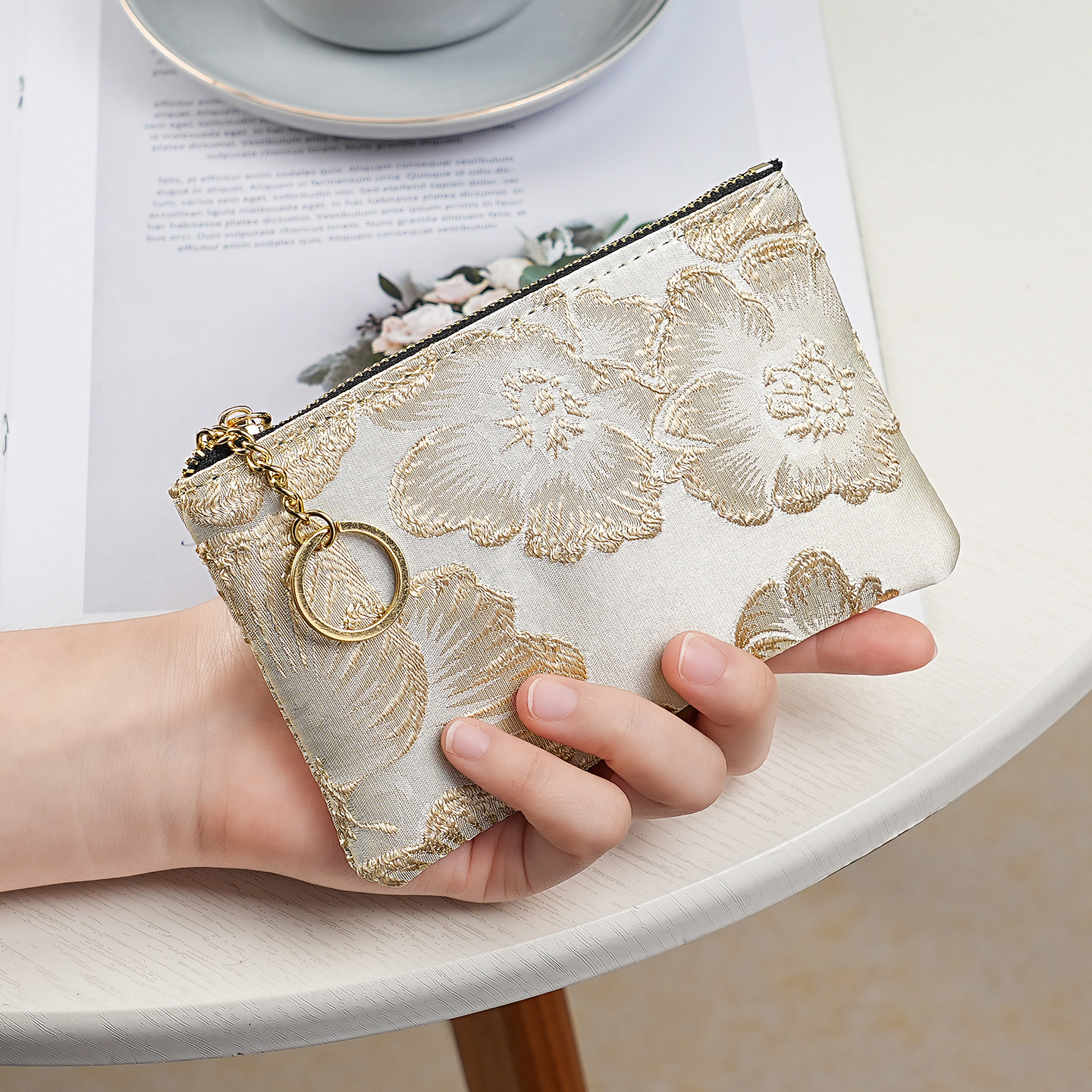 지갑 여성 롱 스타일 2025 새로운 중국 스타일 수 놓은 진주 휴대용 지퍼 카드 홀더 동전 지갑 휴대 전화 보관 가방스토어 가기