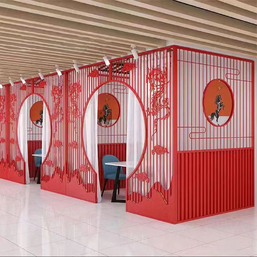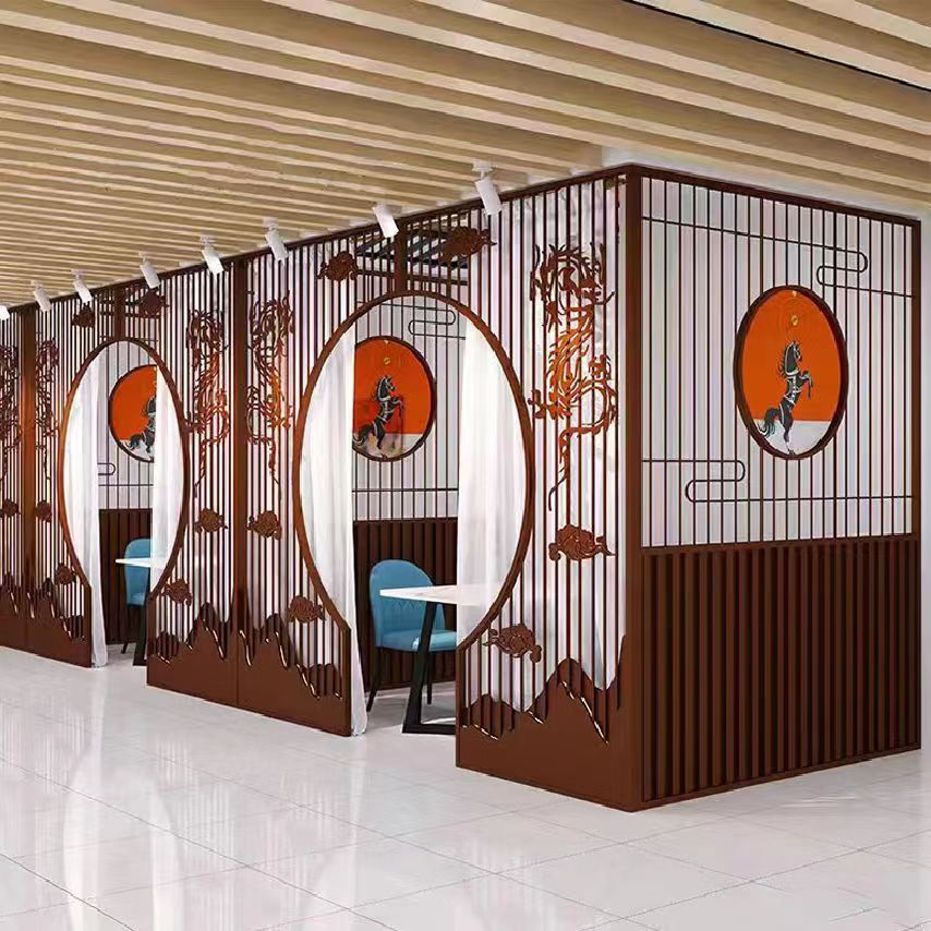 현대 중국 스타일 카운터 레스토랑 냄비 레스토랑 문 파티션 아치 스크린 개인 공간 철 호텔 슬라이딩 도어 스크린 파티션스토어 가기