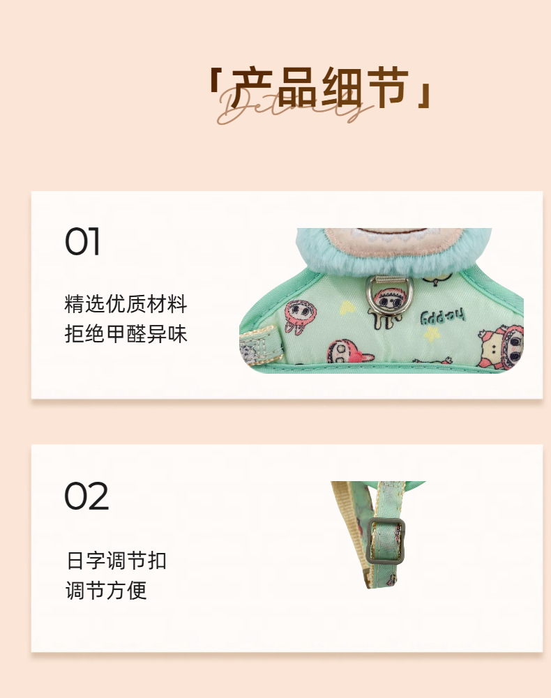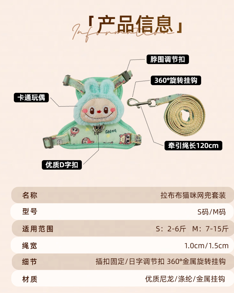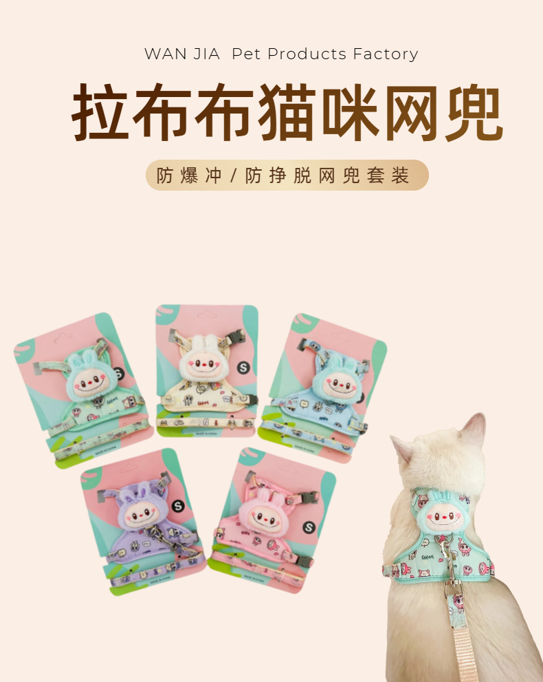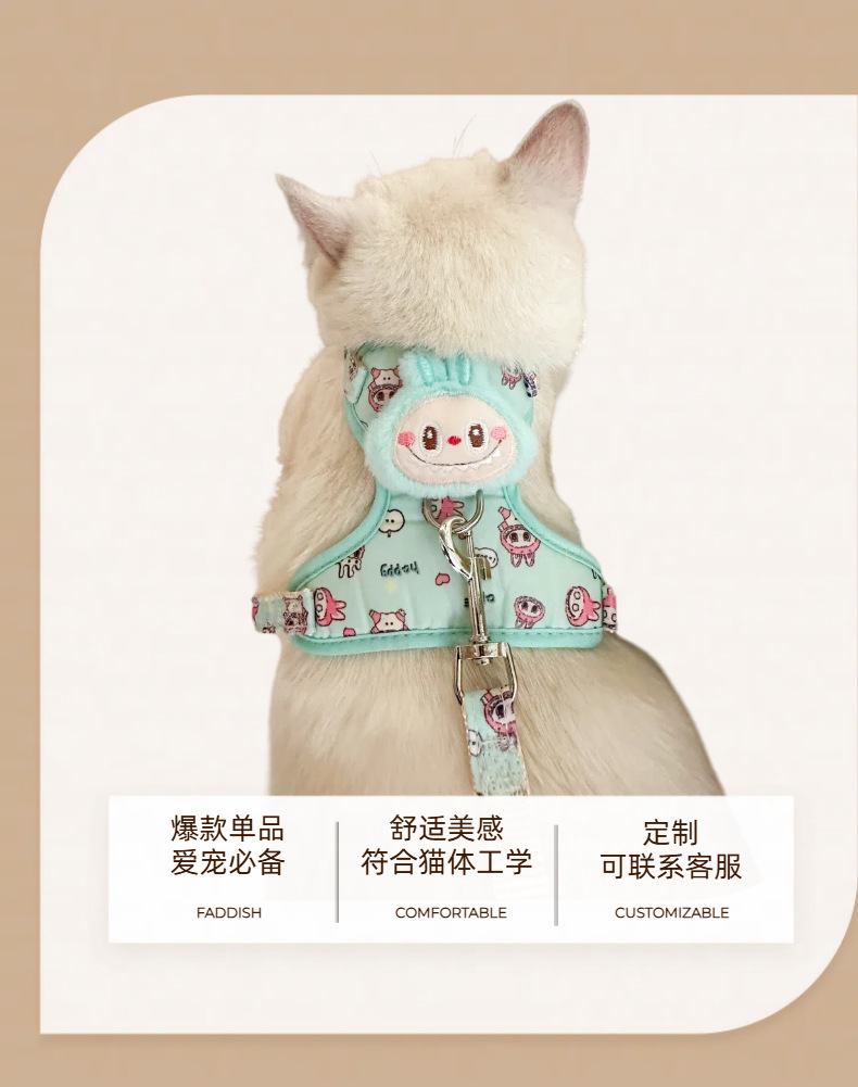 인기 고양이 목줄, 이탈 방지용 특수 고양이 목줄, 작은 새끼 고양이 산책용 고양이 목줄, 라부부 패턴