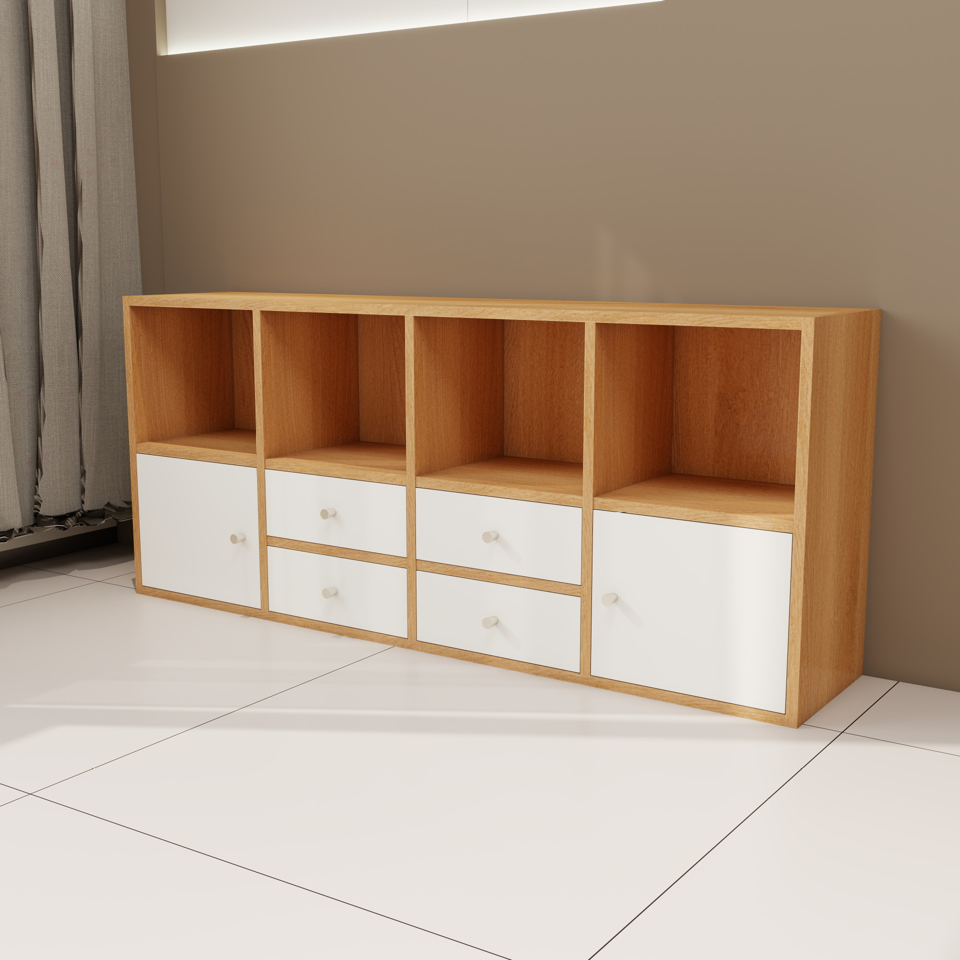 • 통나무 + 흰색 (문 2개, 서랍 4개 - 길이 140*가로 27*높이 75)
