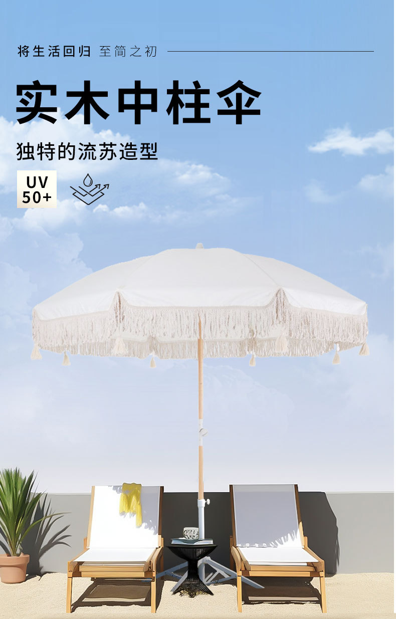 새로운 스타일의 정원용 레트로 태슬 우산, 인터넷 유명 명소에서 사용 가능한 회전식 해변용 차양 야외 태슬 우산