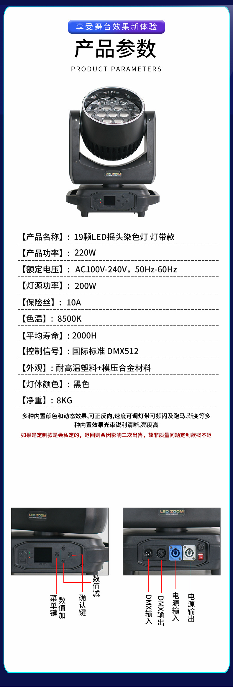 • 19 LED 무빙 헤드 염색 조명 스트립