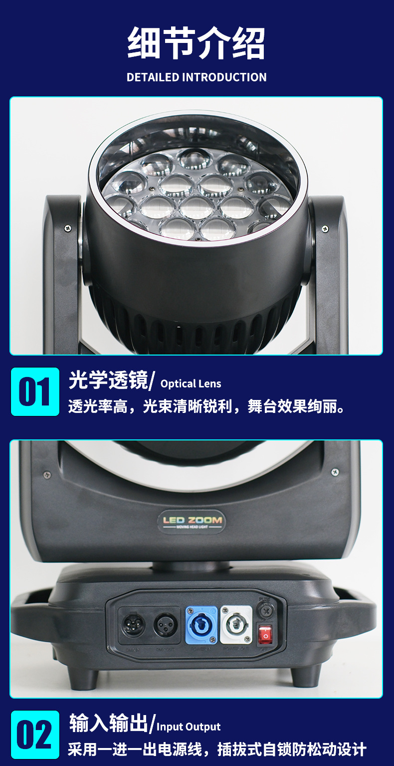 결혼식 바 공연 무대 조명 LED 4-in-1 빔 분위기 조명을 위한 19개의 초점 이동 헤드 라이트 재고 있음