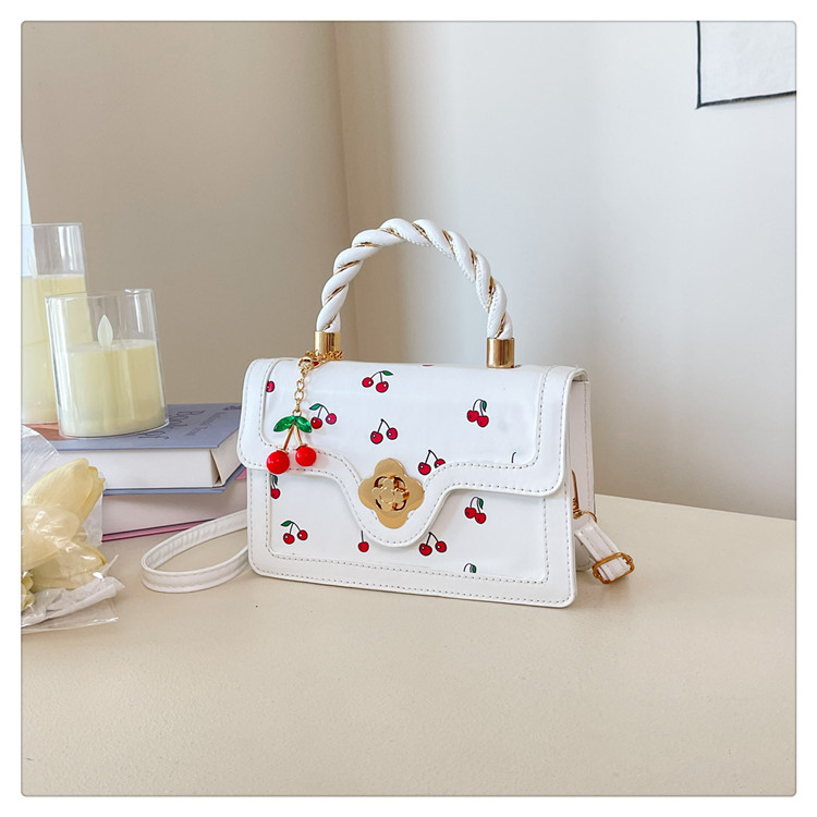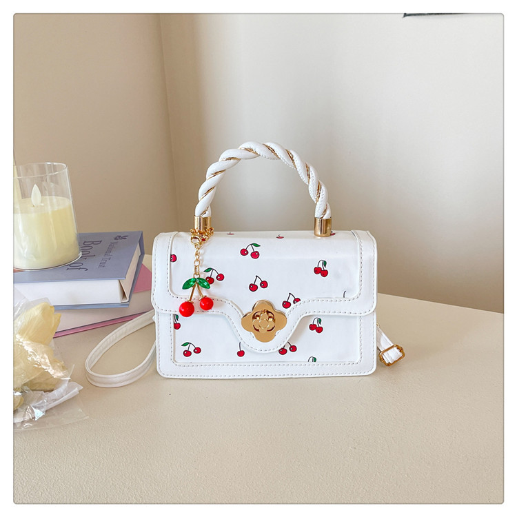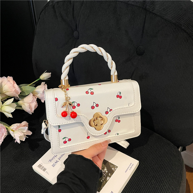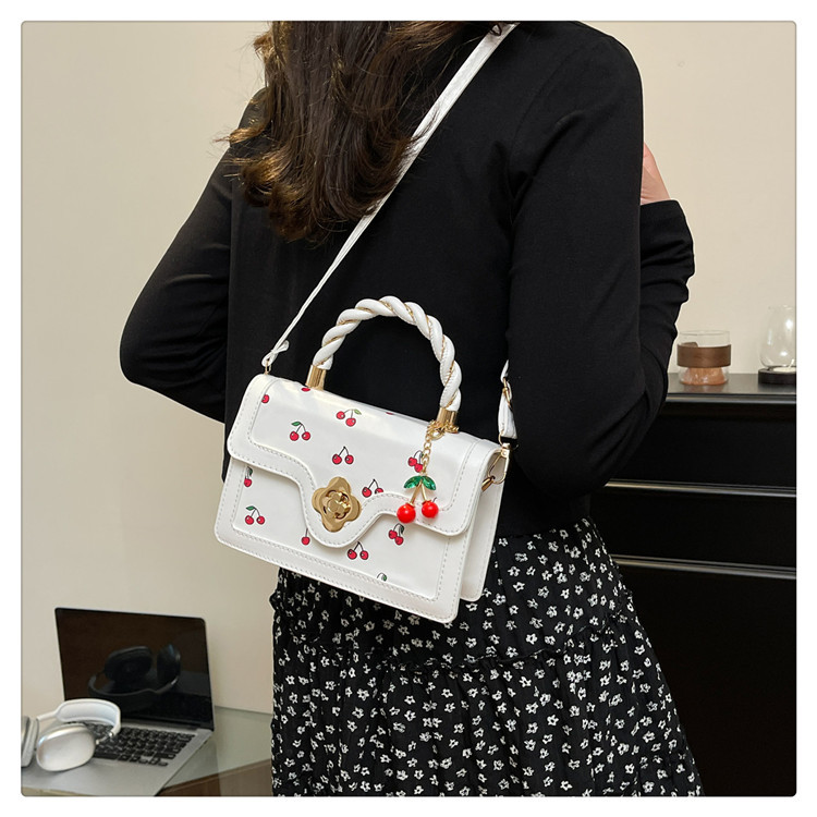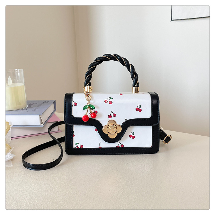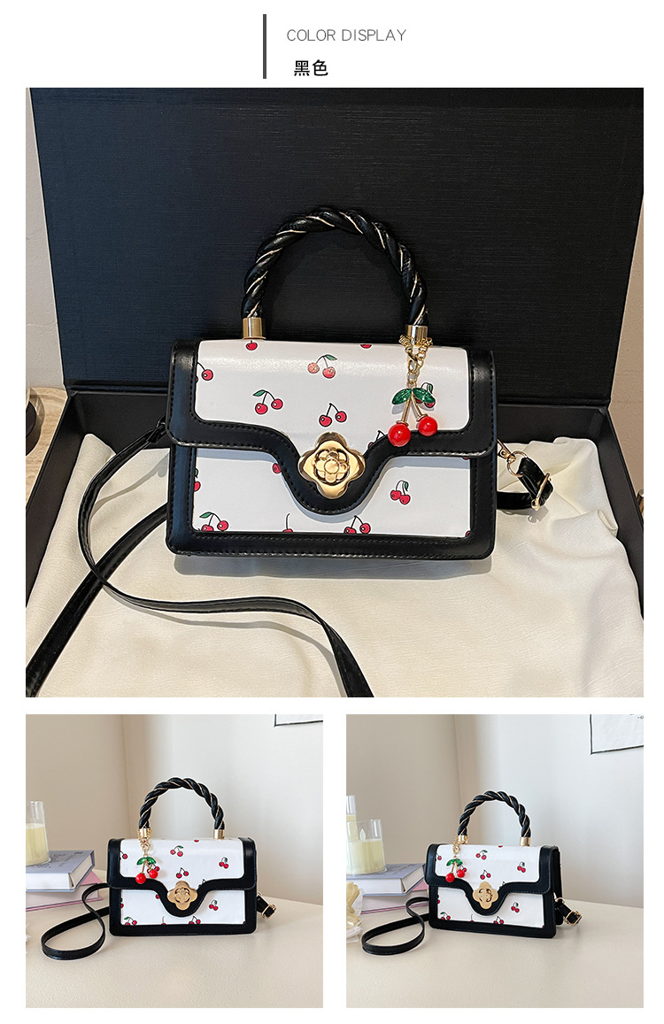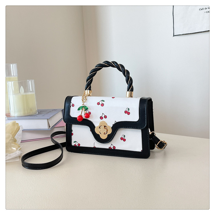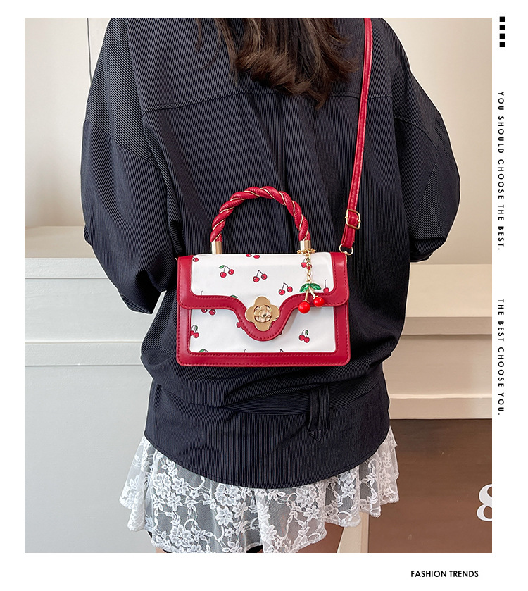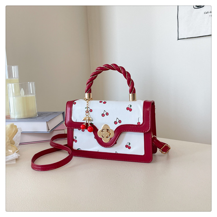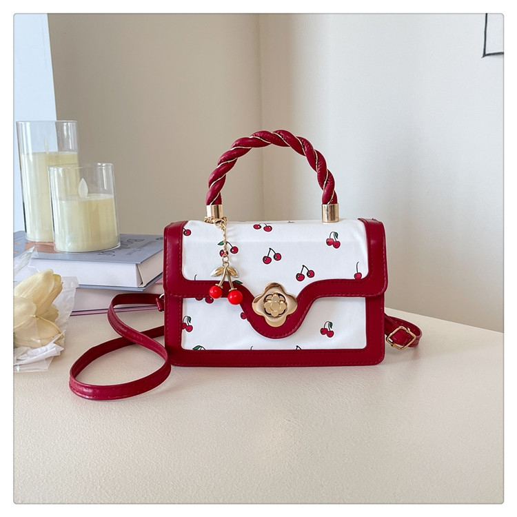 트렌디하고 신선하며 대비되는 색상, 귀여운 체리 가을 프린트 2025 스위트 트위스트 원 숄더 크로스 바디 휴대용 소형 사각형 가방
