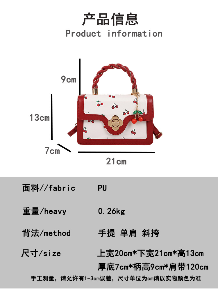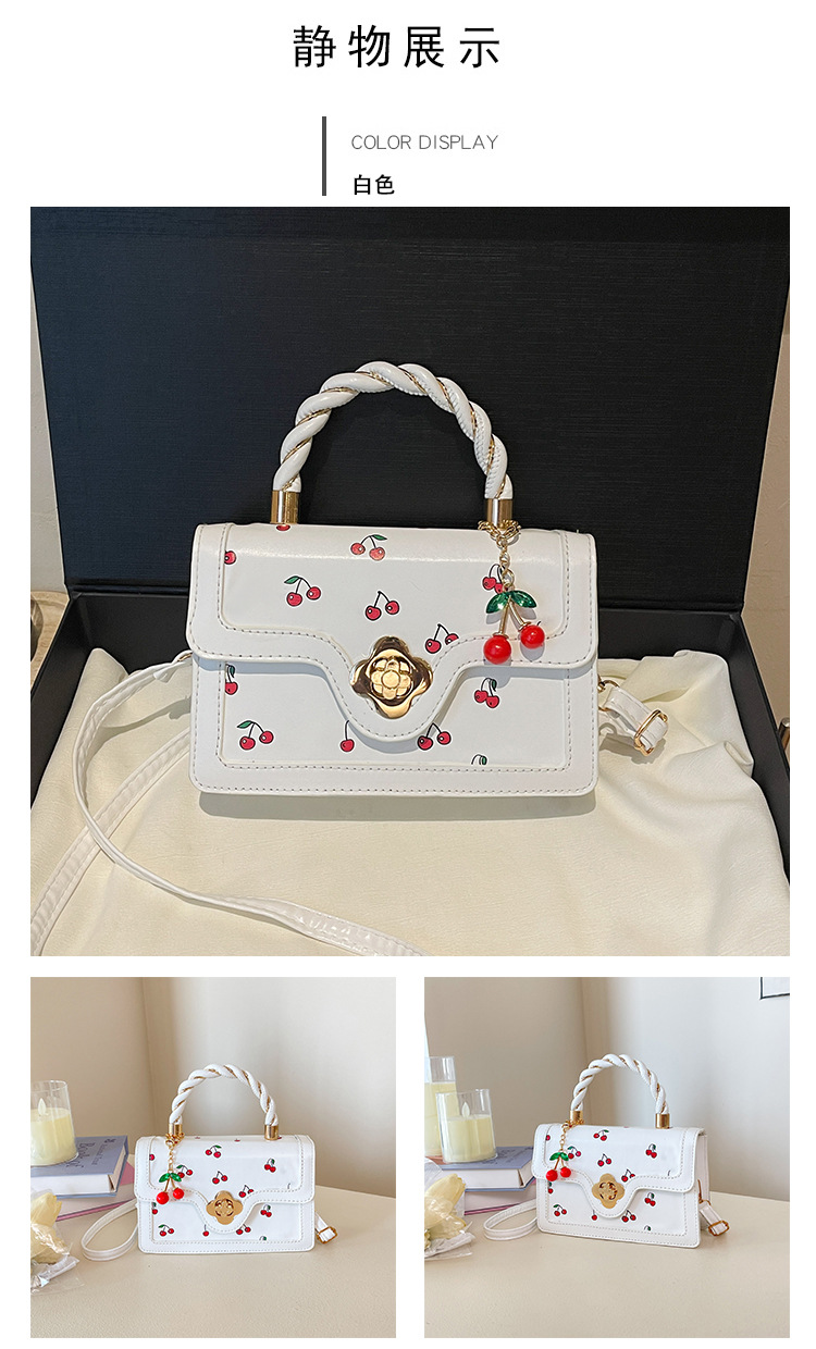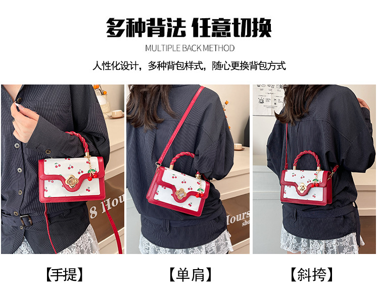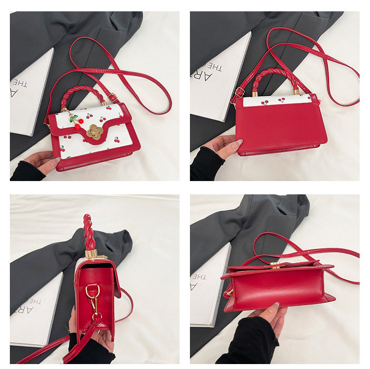트렌디하고 신선하며 대비되는 색상, 귀여운 체리 가을 프린트 2025 스위트 트위스트 원 숄더 크로스 바디 휴대용 소형 사각형 가방스토어 가기