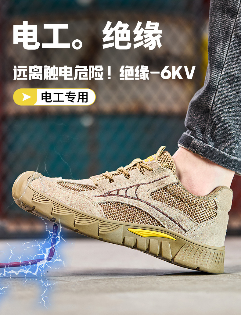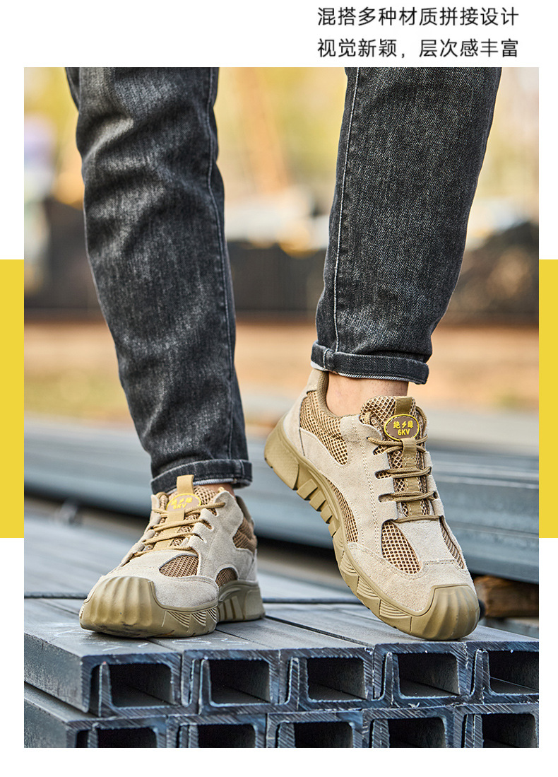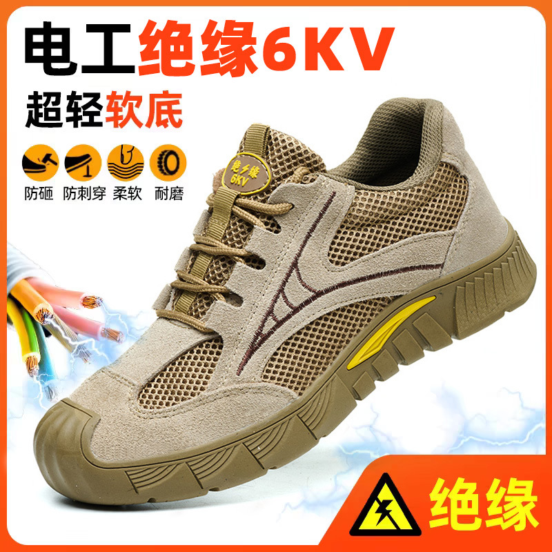 노동 보호 신발, 충격 방지 및 찌르기 방지, 절연 전기 기사, 여름 통기성, 탈취제, 소가죽 메쉬, 부드러운 밑창, 내마모성 안전 보호 신발