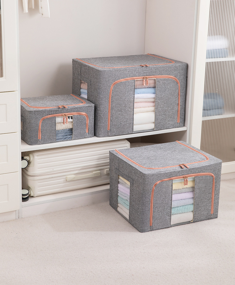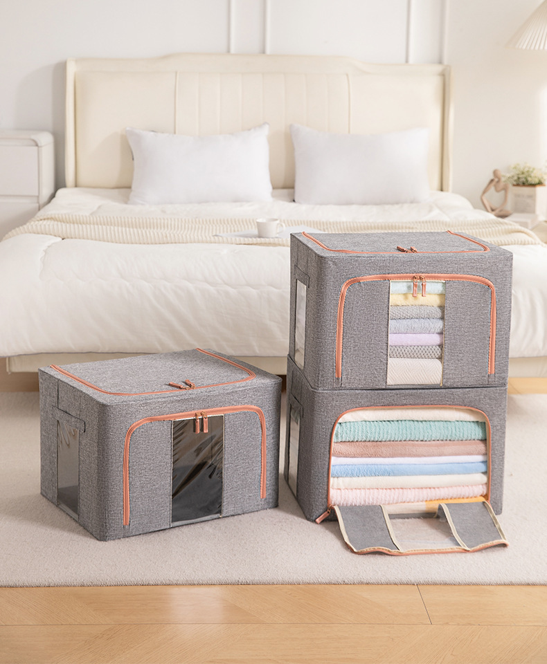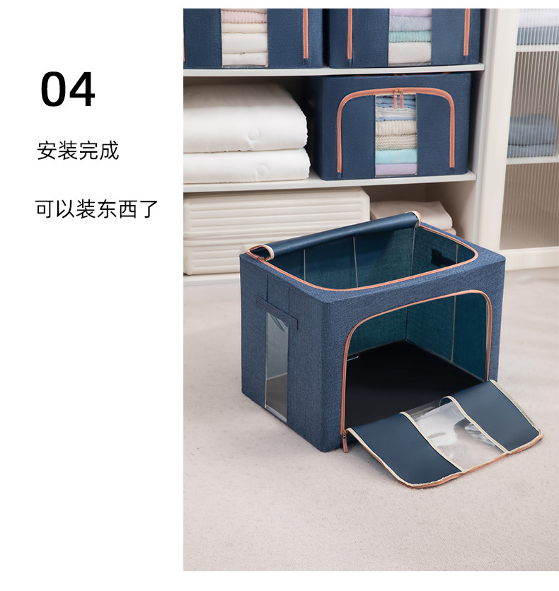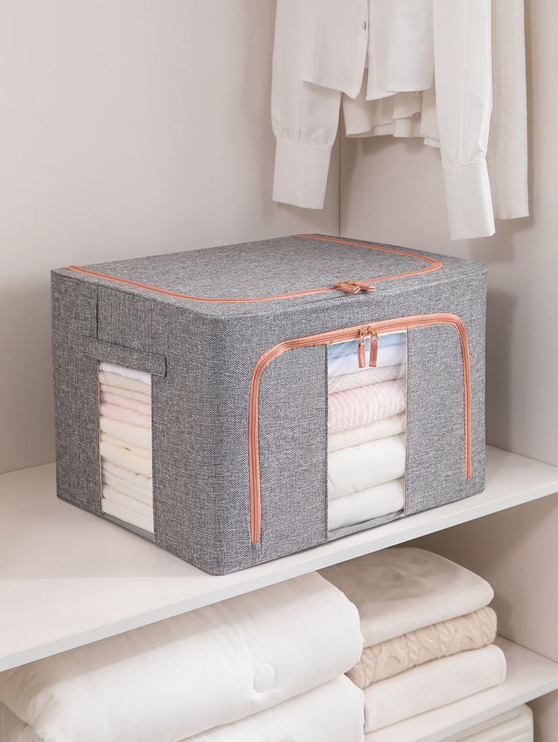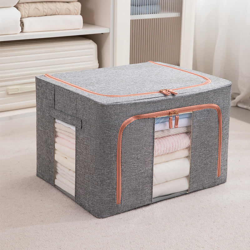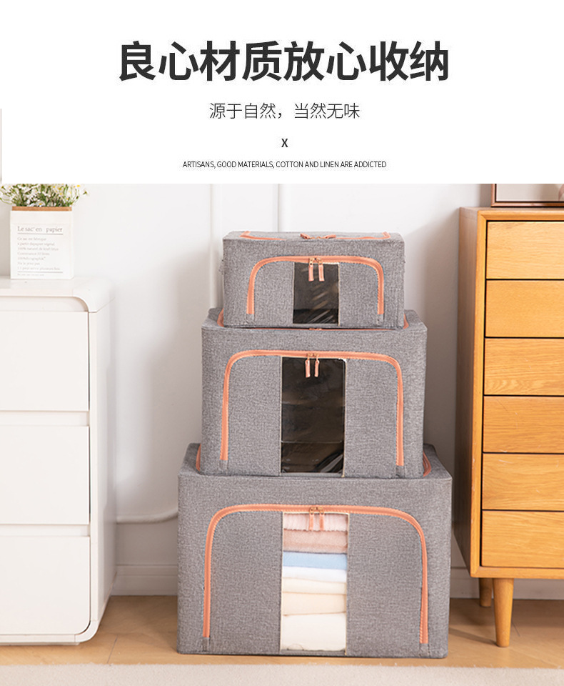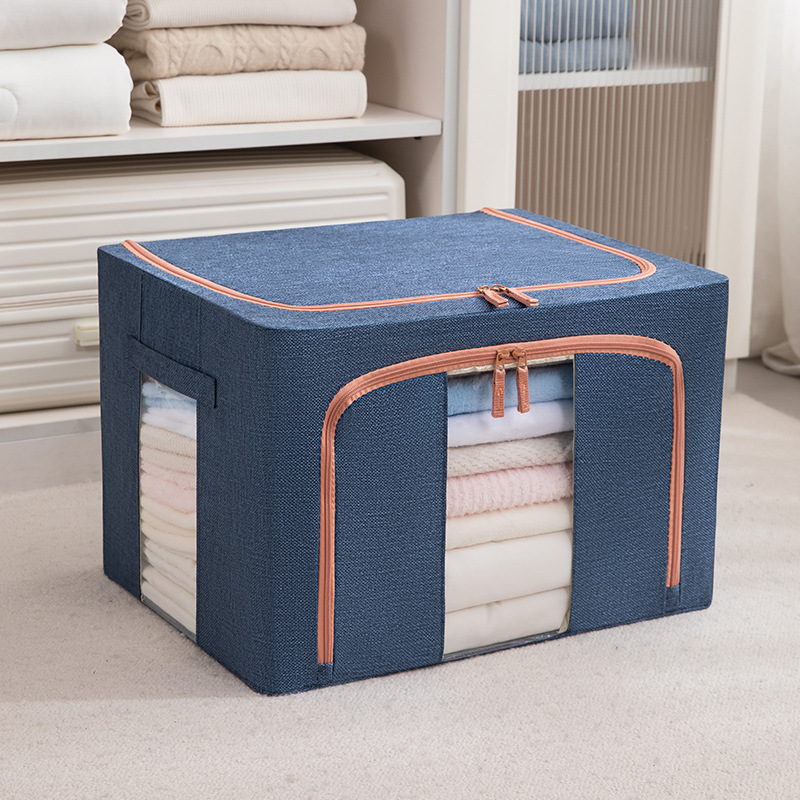 두꺼운 린넨 강철 프레임 박스 패브릭 보관 상자 두꺼운 접이식 시각적 이불 보관 상자 옷장 보관