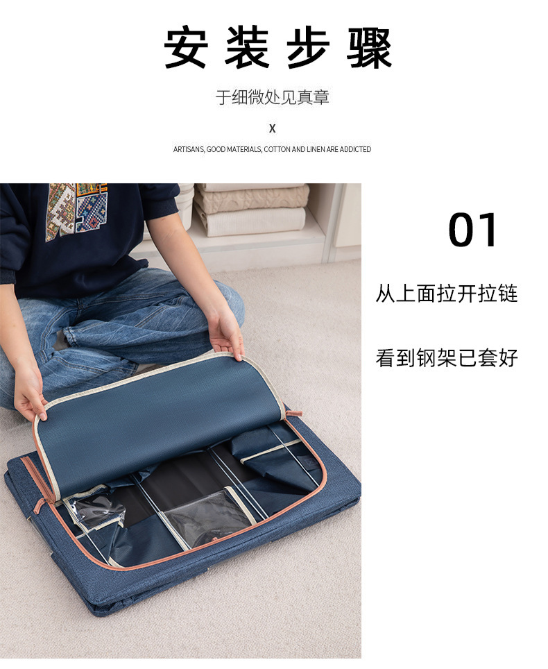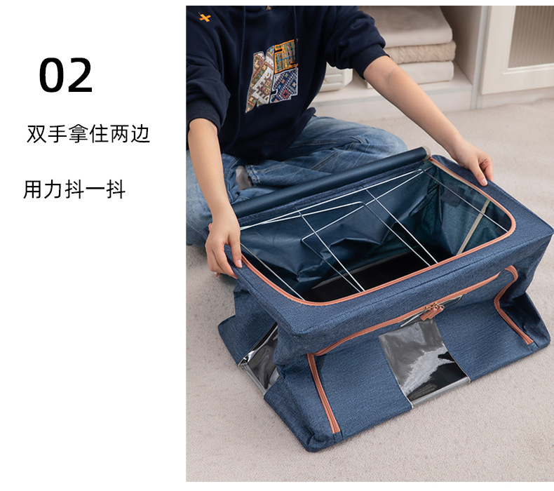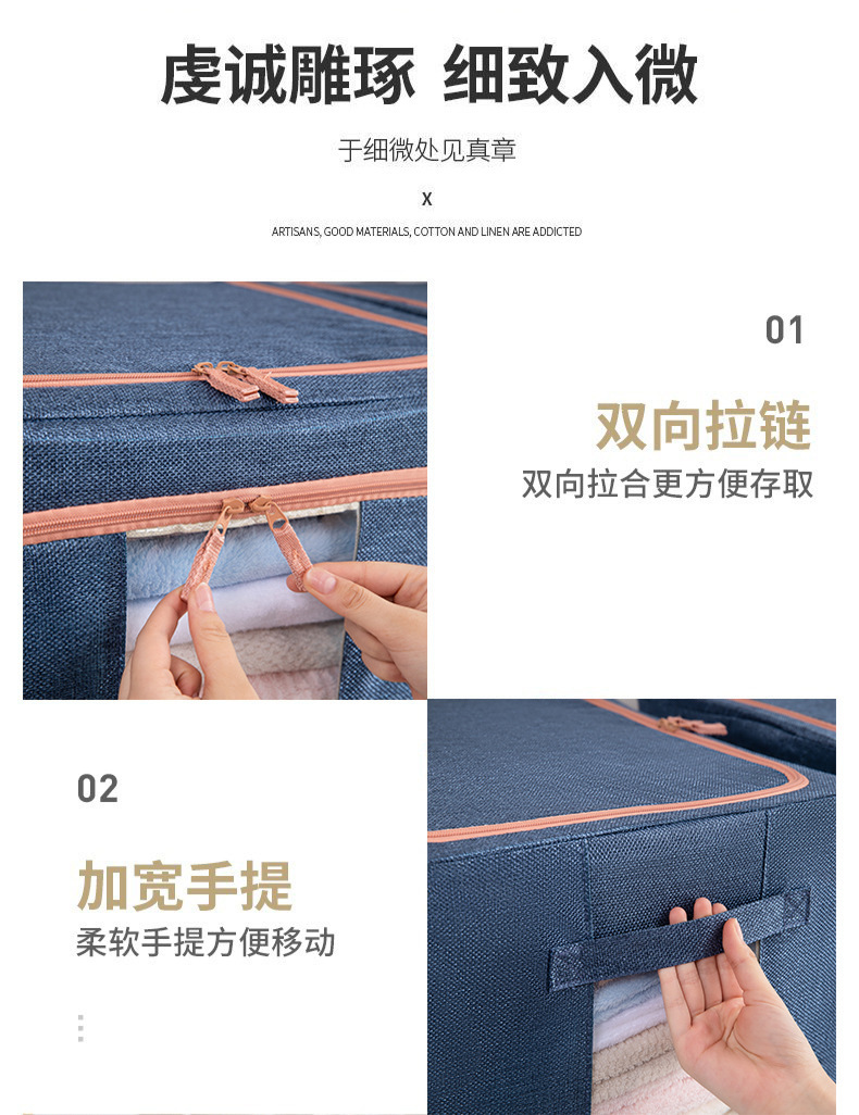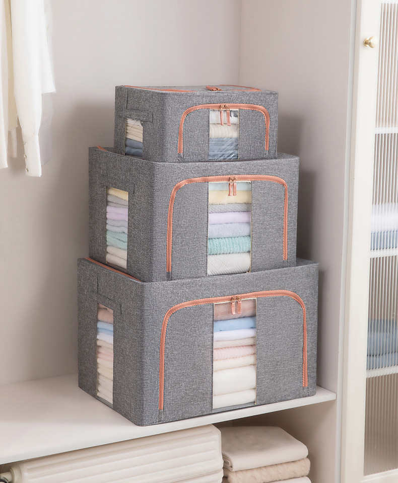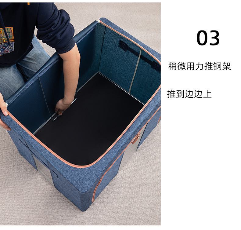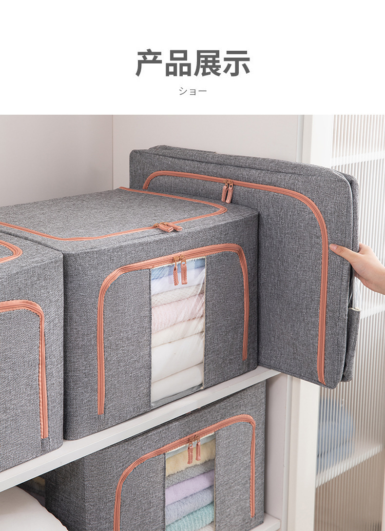 두꺼운 린넨 강철 프레임 박스 패브릭 보관 상자 두꺼운 접이식 시각적 이불 보관 상자 옷장 보관