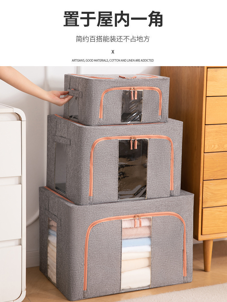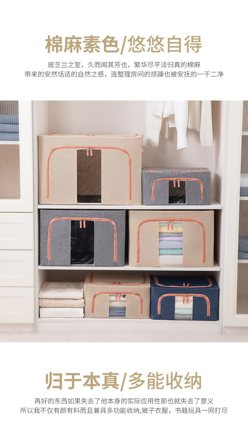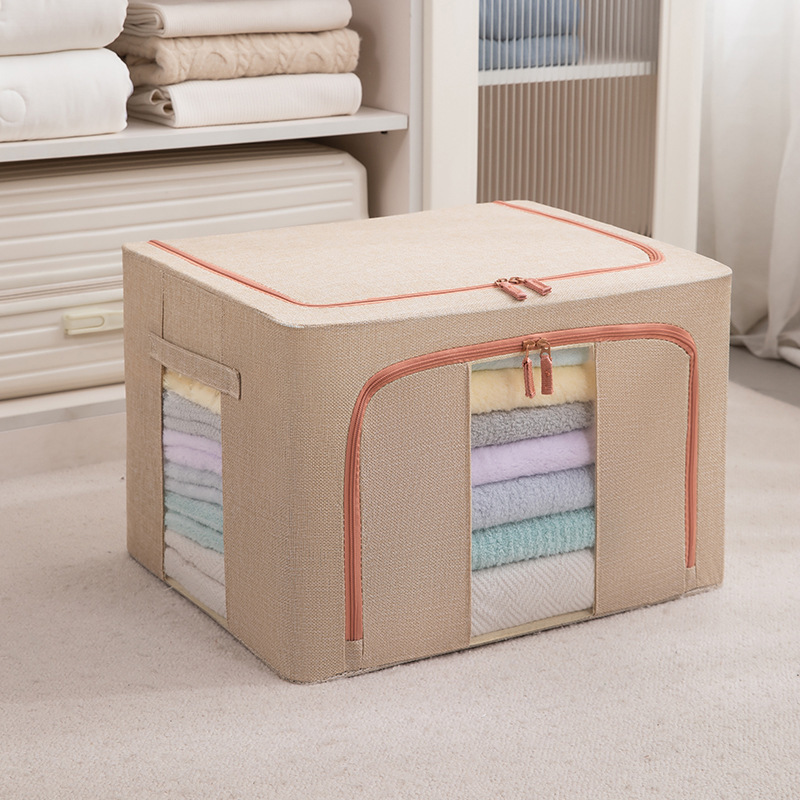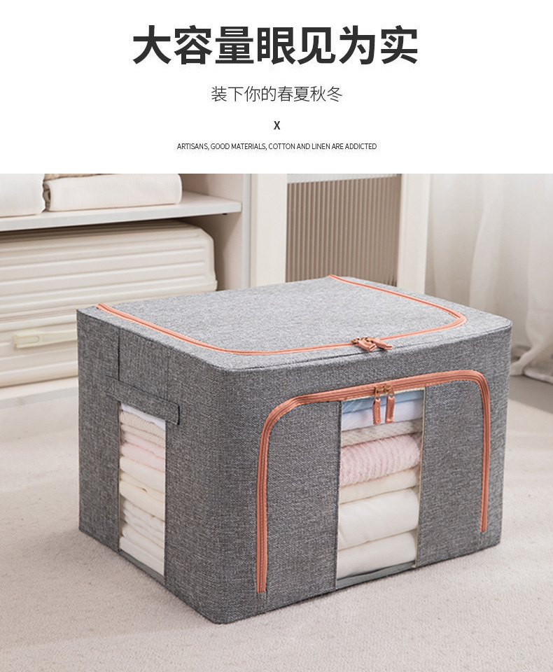 두꺼운 린넨 강철 프레임 박스 패브릭 보관 상자 두꺼운 접이식 시각적 이불 보관 상자 옷장 보관스토어 가기