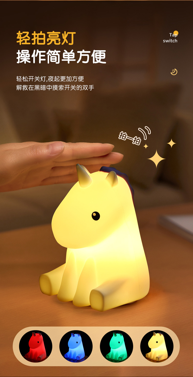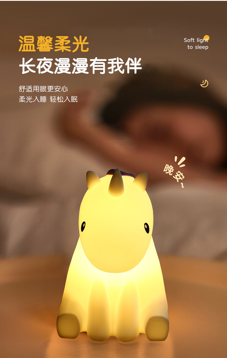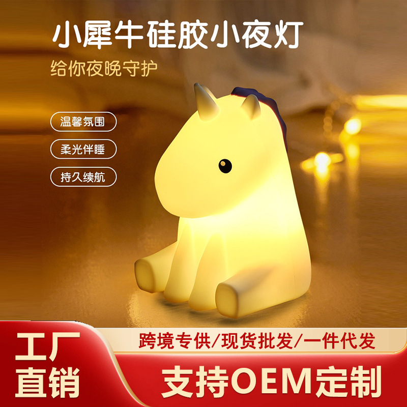 맞춤형 작은 코뿔소 터치 센서 야간등 침실 수면 눈 보호등 여행 캠핑 터치식 소형 LED등스토어 가기