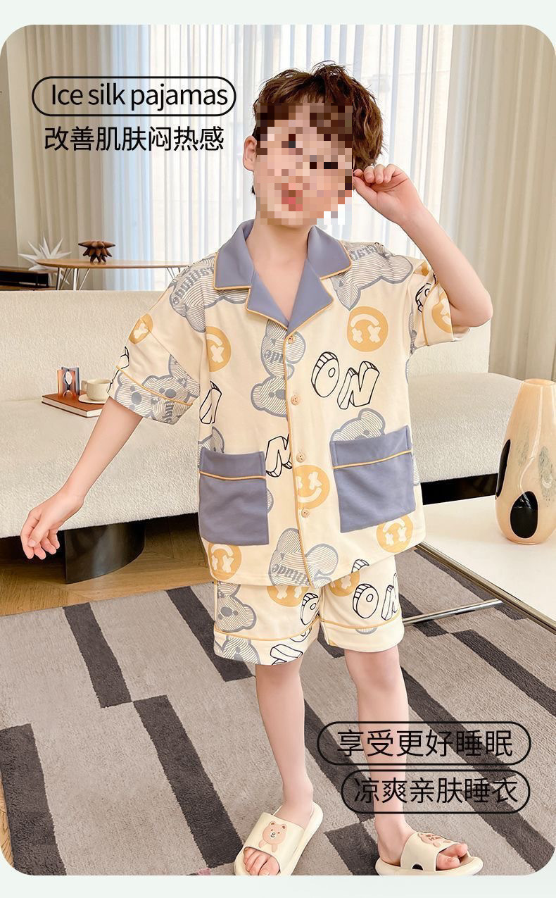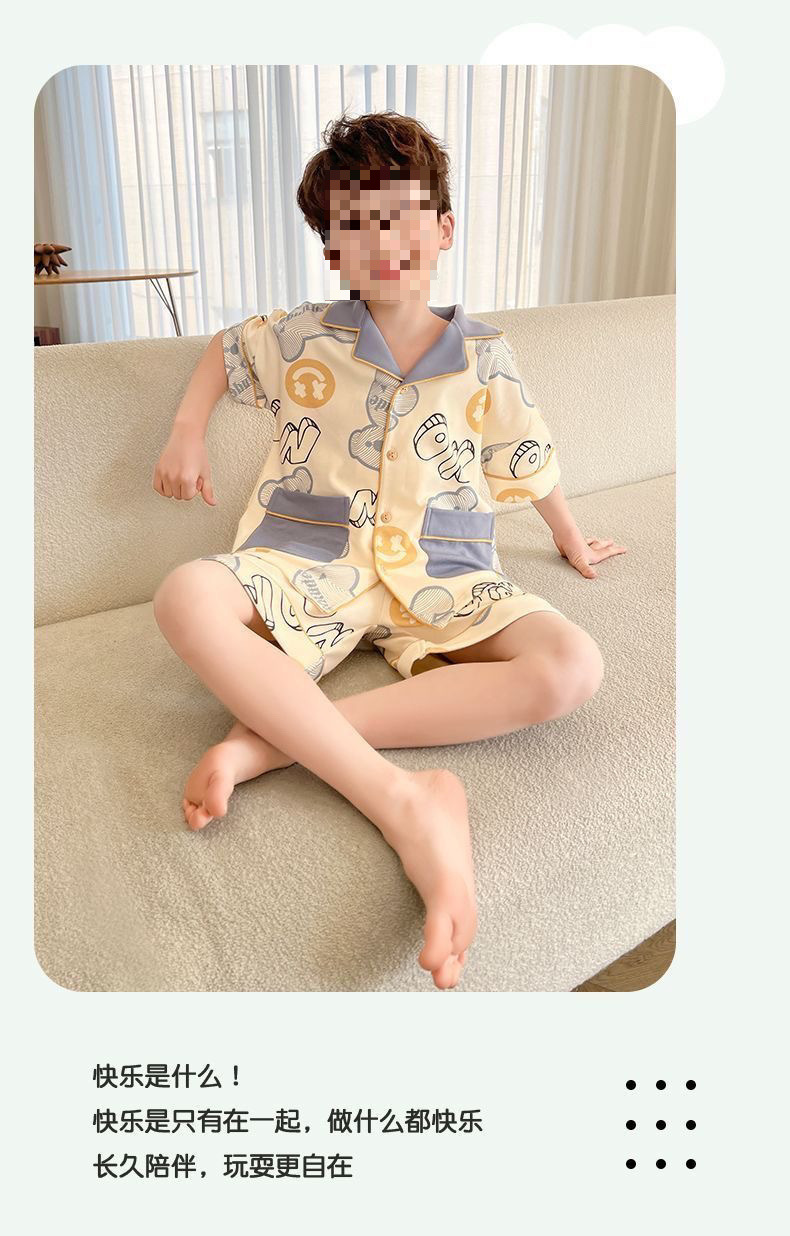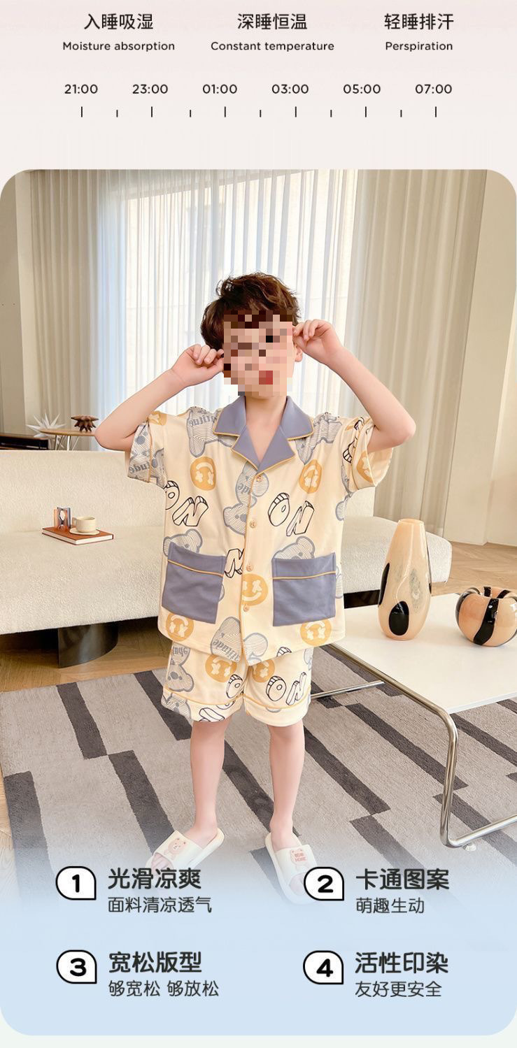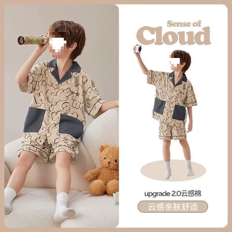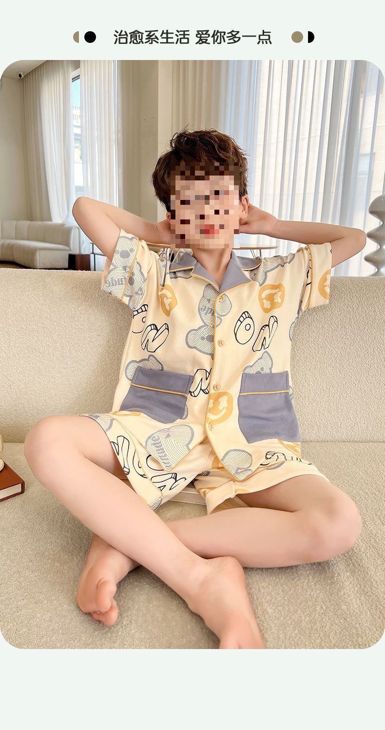 어린이 잠옷 반팔 얇은 여름 중대형 어린이 소년 카디건 새로운 소년 가정 의류 만화 여름 정장스토어 가기
